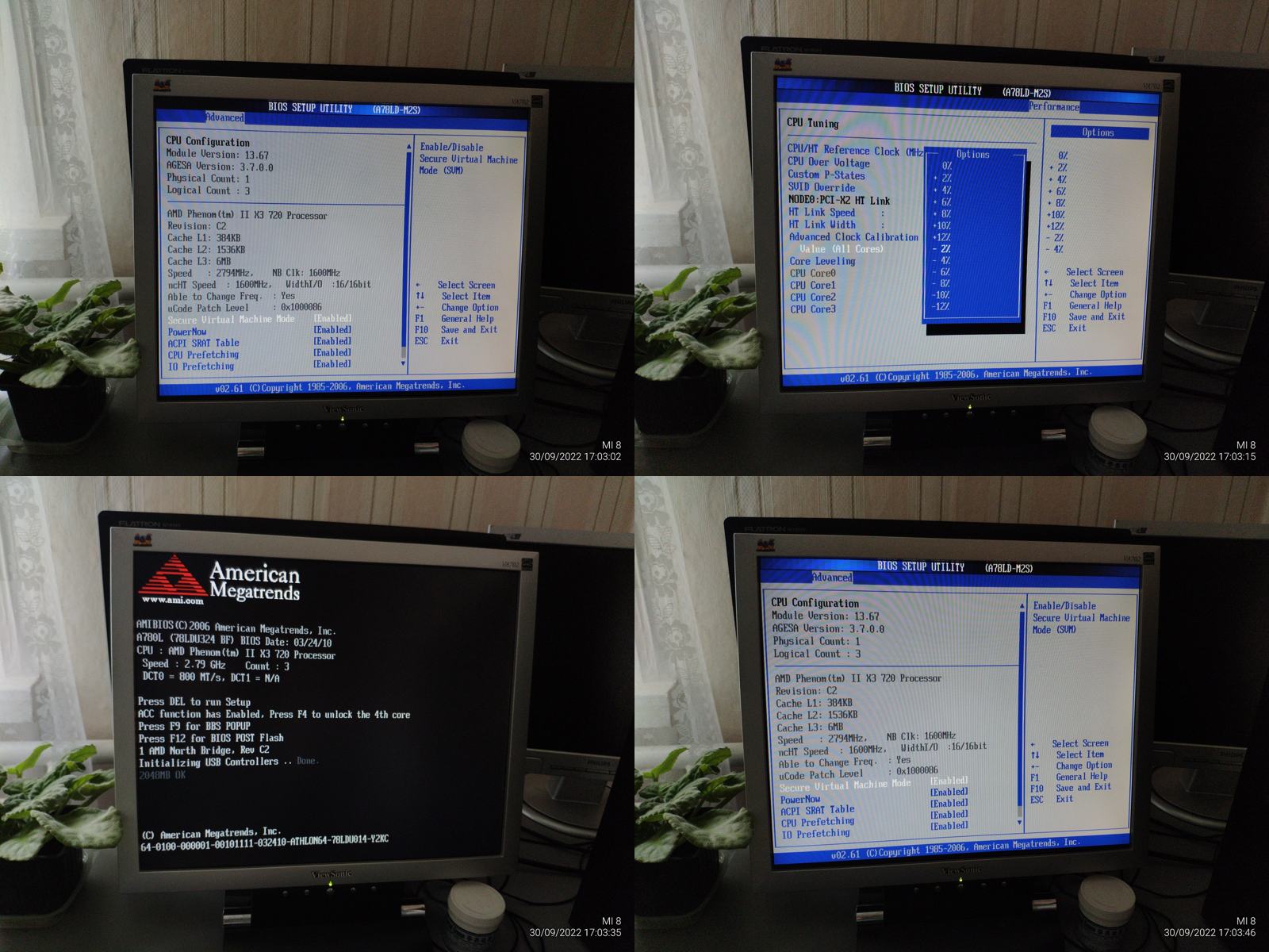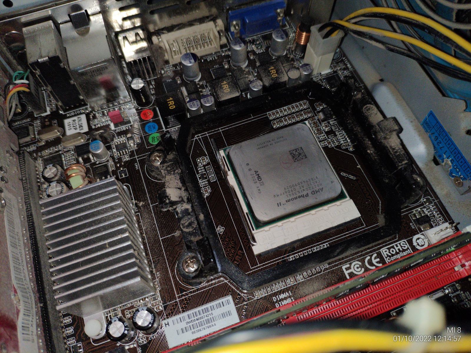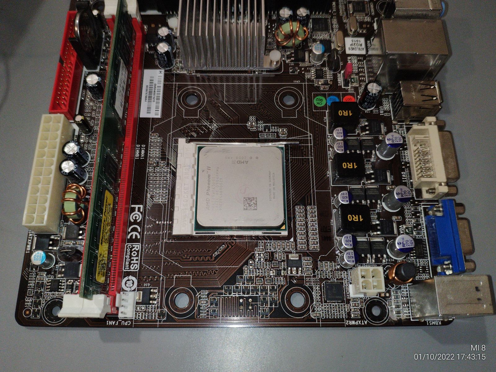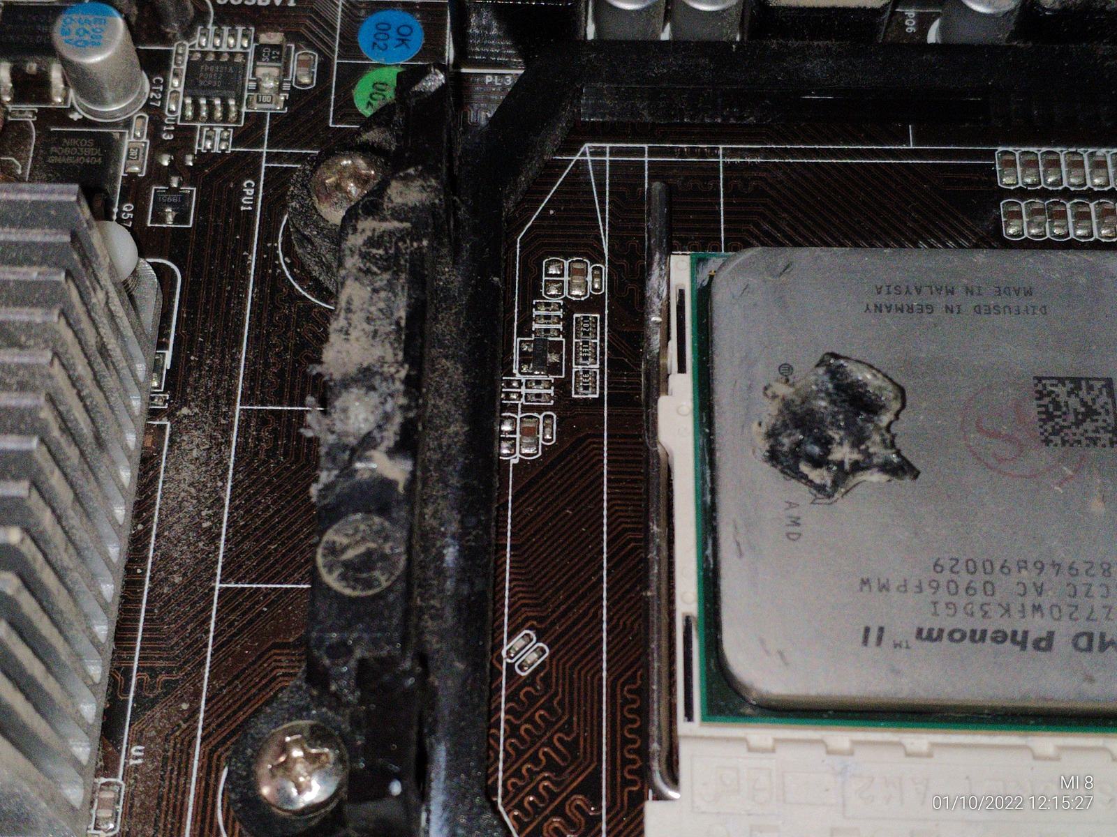 Наконец я добрался до процессора, заменил Athlon64 x2 5000+ на Phenom II x3 720 Black Edition, повесил радиатор без пасты, учитывая отсутствующий прижим я не уверен что охлаждение будет нормально работать, но почему бы не проверить.