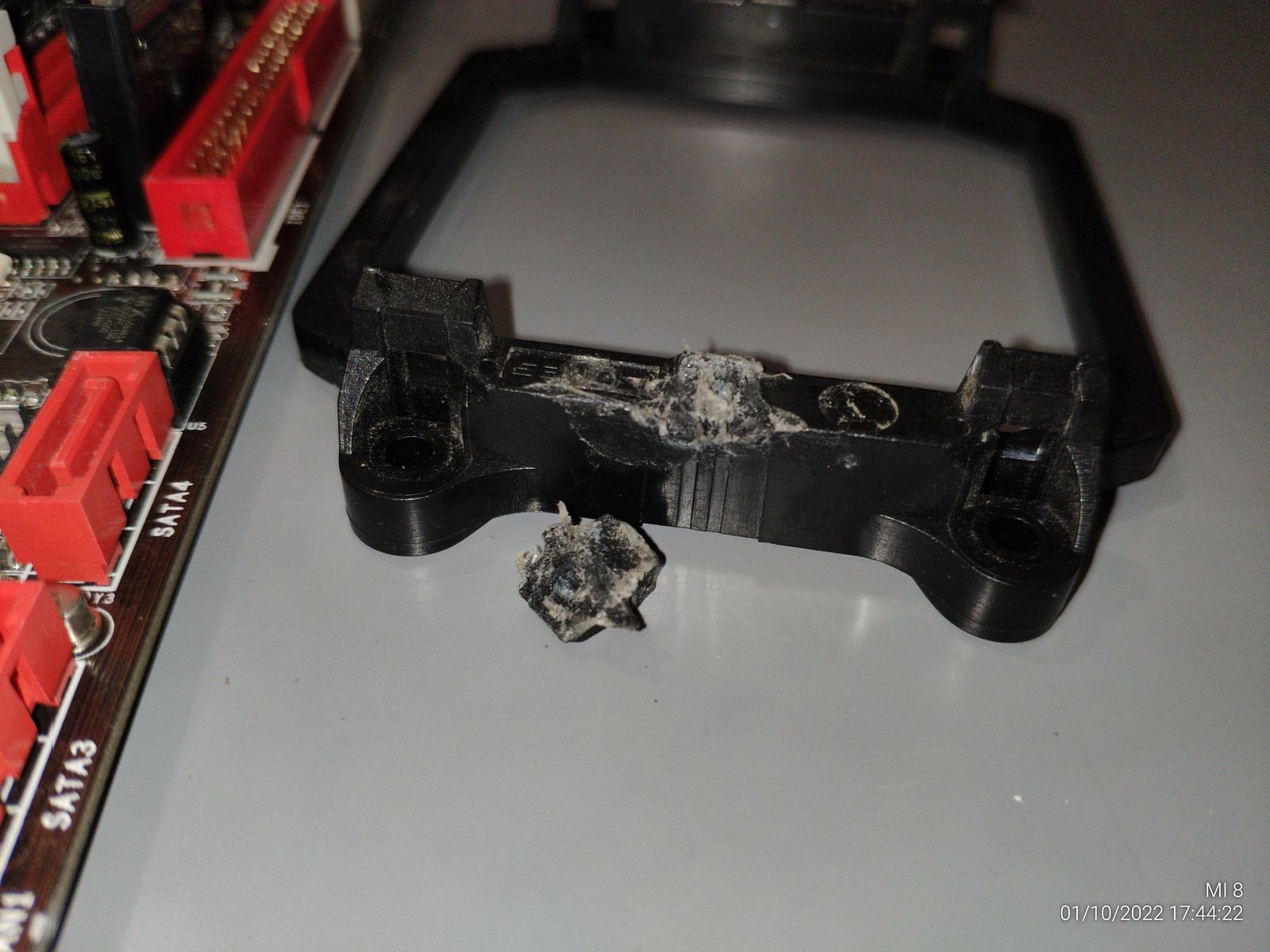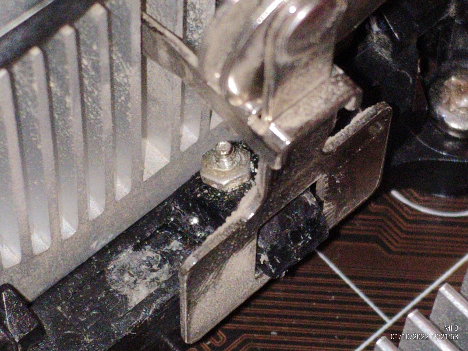Крепление системы охлаждения процессора оказалось послабленным, радиатор никак не прижимался к процессору и легко болтался как на соплях, впрочем, так даже проще снимать радиатор, хотя я не понял причину слабого крепления.
