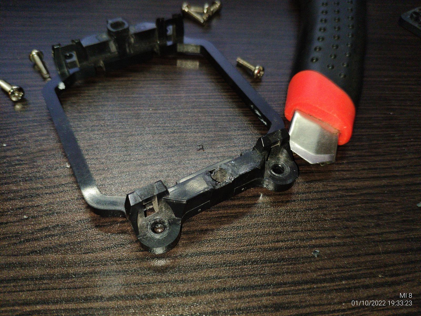 Эту рамку было решено не клеить, все лишнее срезал канцелярским ножом и начал думать над новым язычком, надоели уже эти пластиковые ломкие выступы заводские, надеюсь я не создал новую фобию ломких пластиковых язычков крепления...
