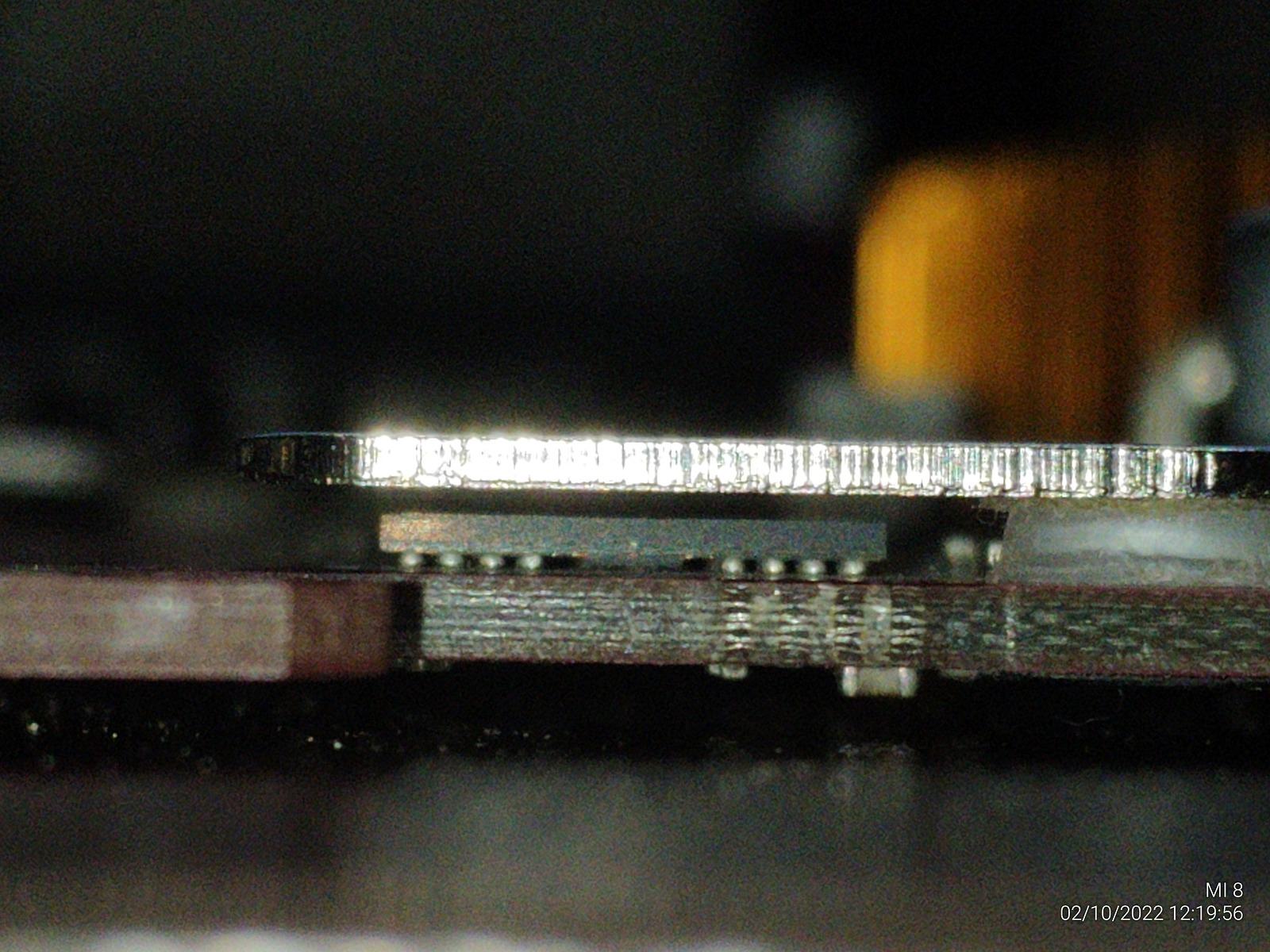 Чип пришлось чистить пластиковым шпателем, настолько окаменела заводская паста, есть защитная рамка, и она в уровень чипа выходит, что очень хорошо.