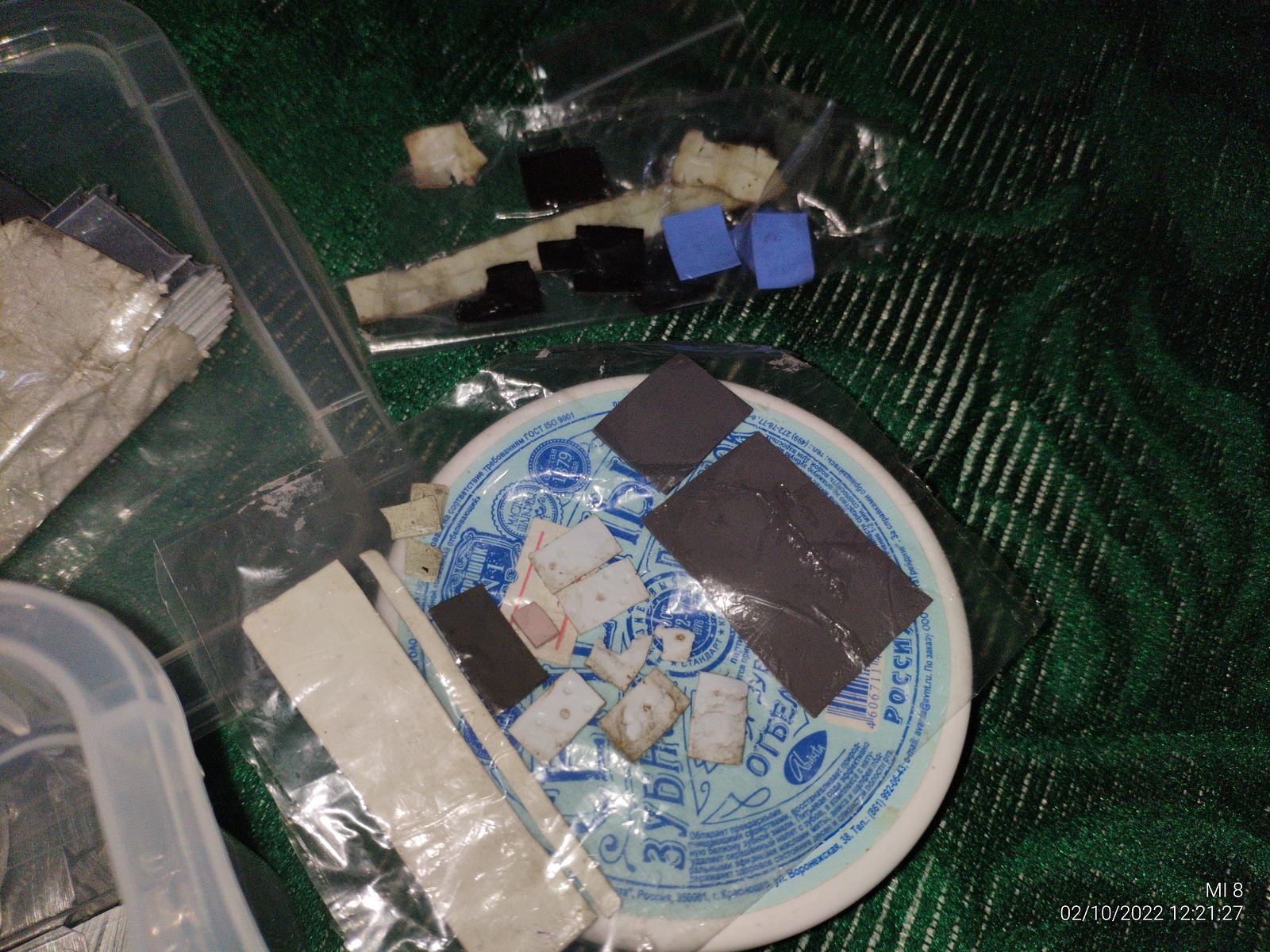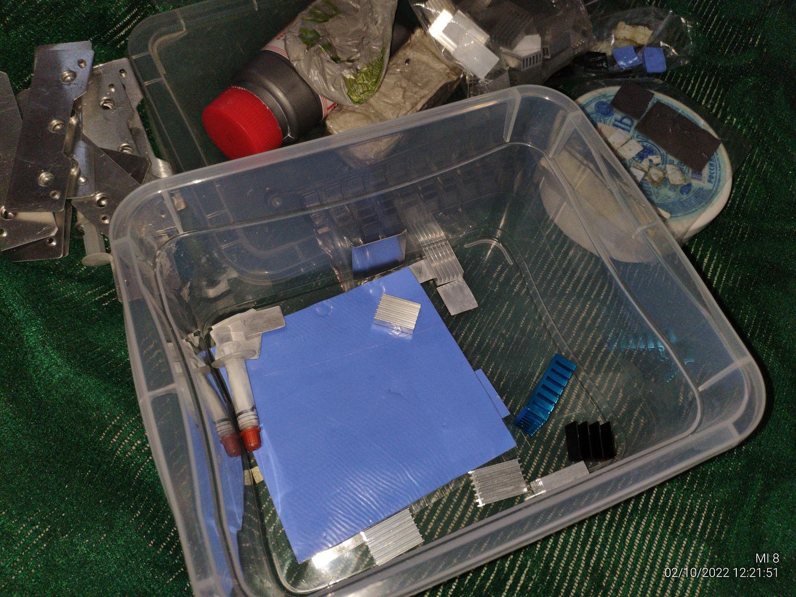 Далее сборка, не оставлять же кусок железа без контакта с чипами памяти, потому я достал старую коробочку и нашел там прокладки проводящие тепло.