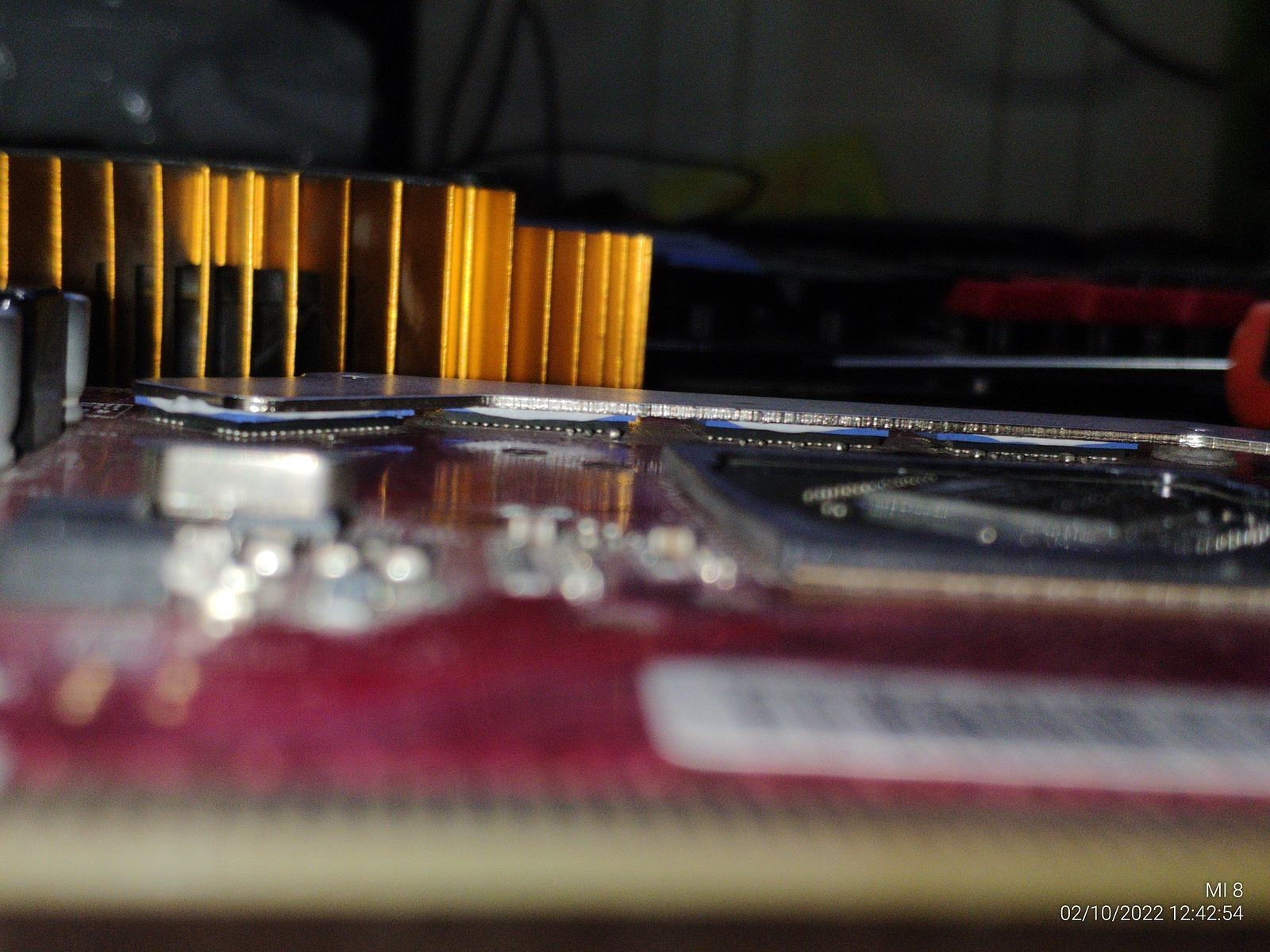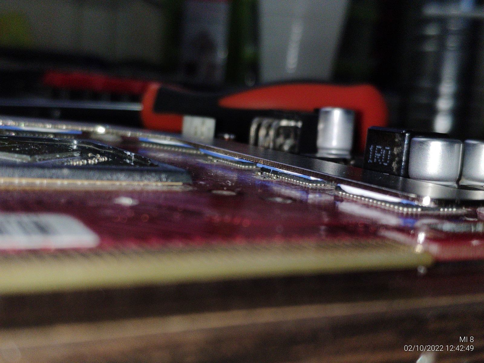 Видеокарта оказалась в заводском виде, винты без особых следов, паста дубовая и с трудом сорвалась.