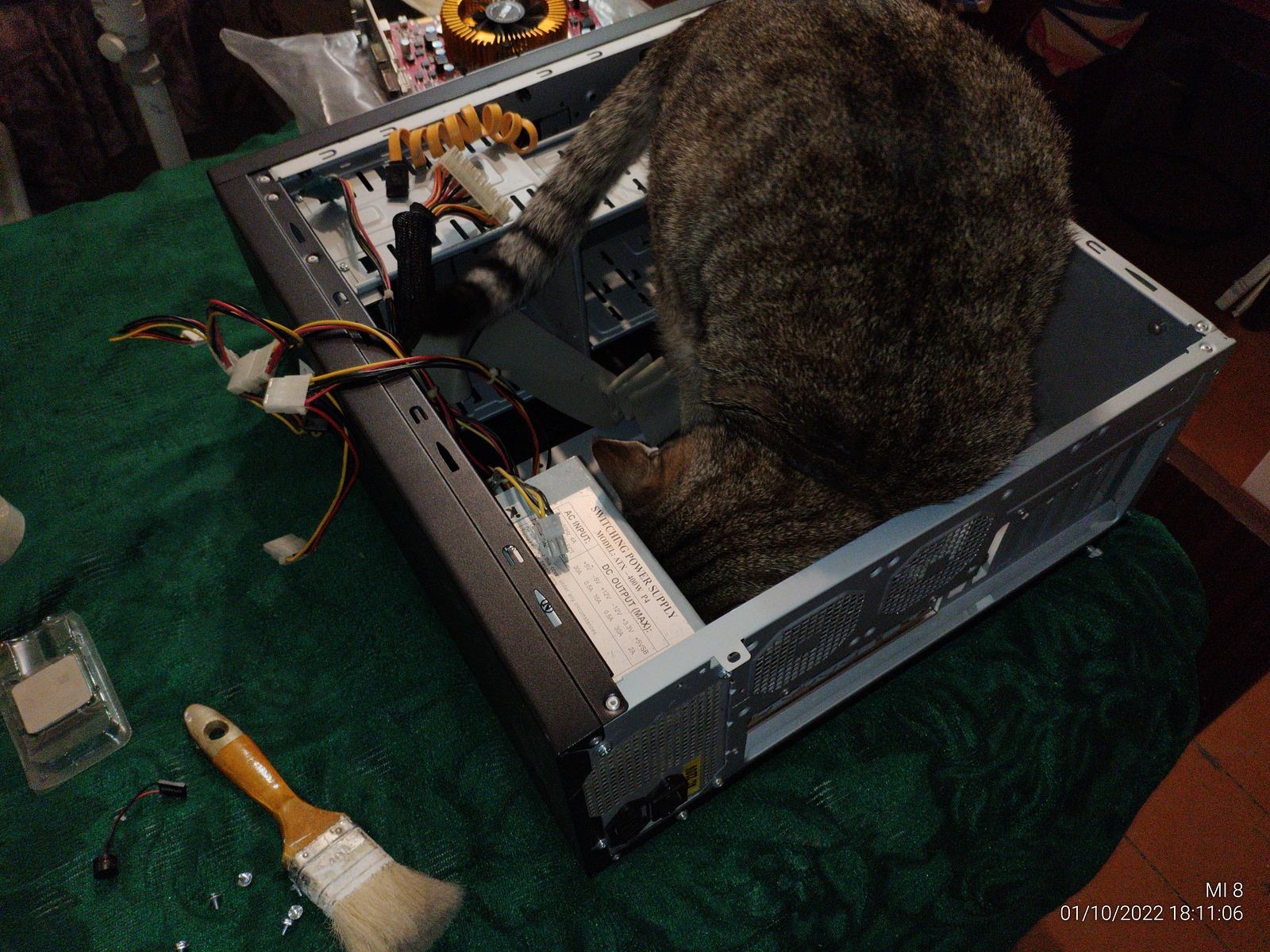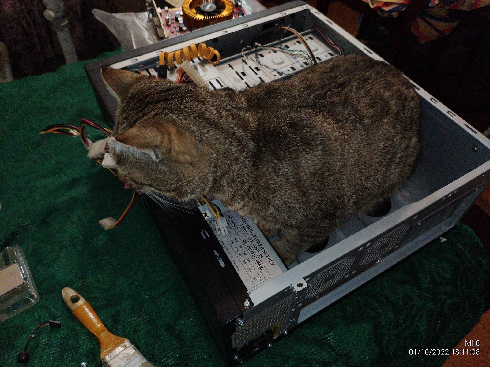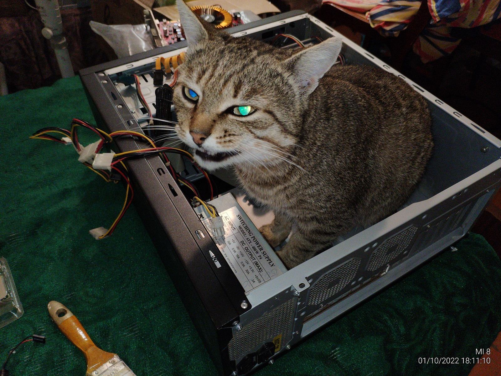 Тем временем пушистому другу не очень понравилось в корпусе, он словно предупреждал про вредоносную закладку в драйвере от NVIDIA, которая не позволяет нормально поиграть в игры...