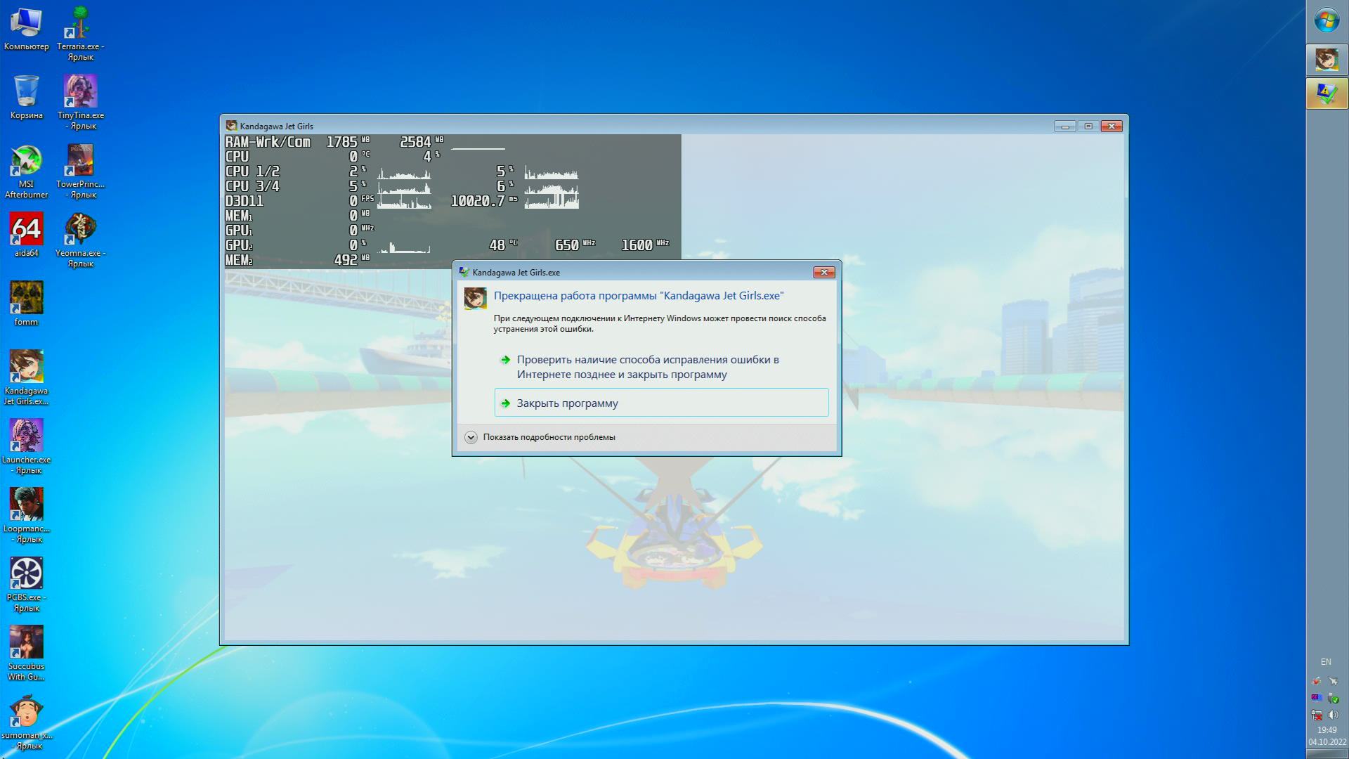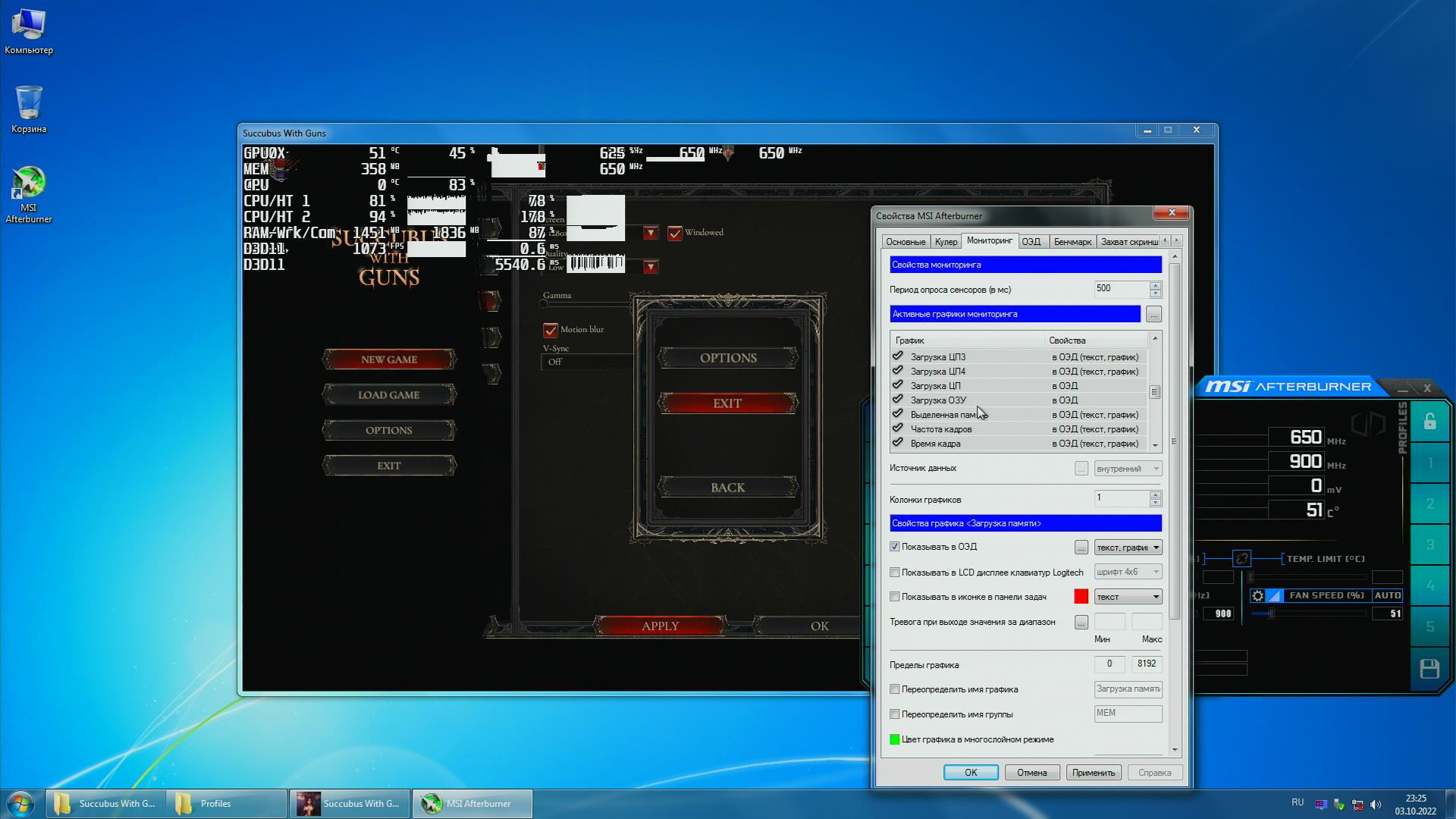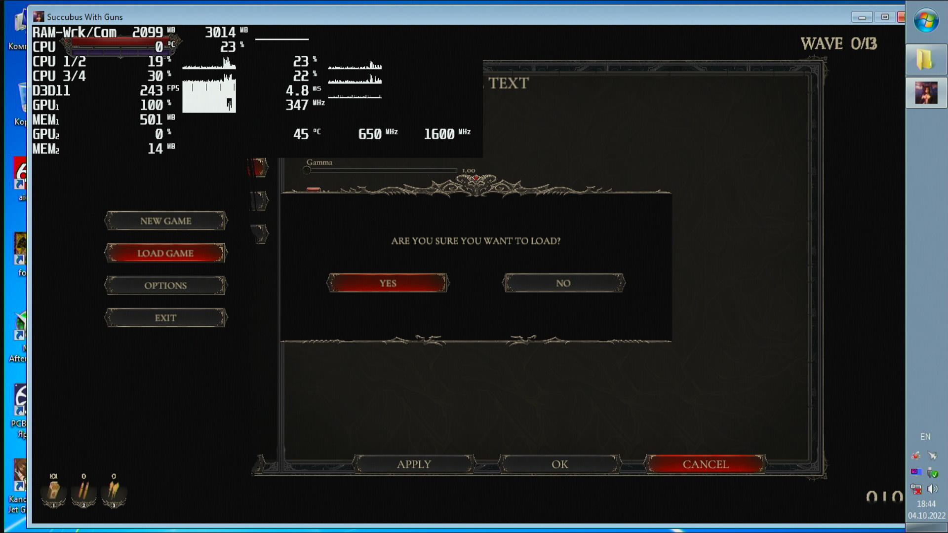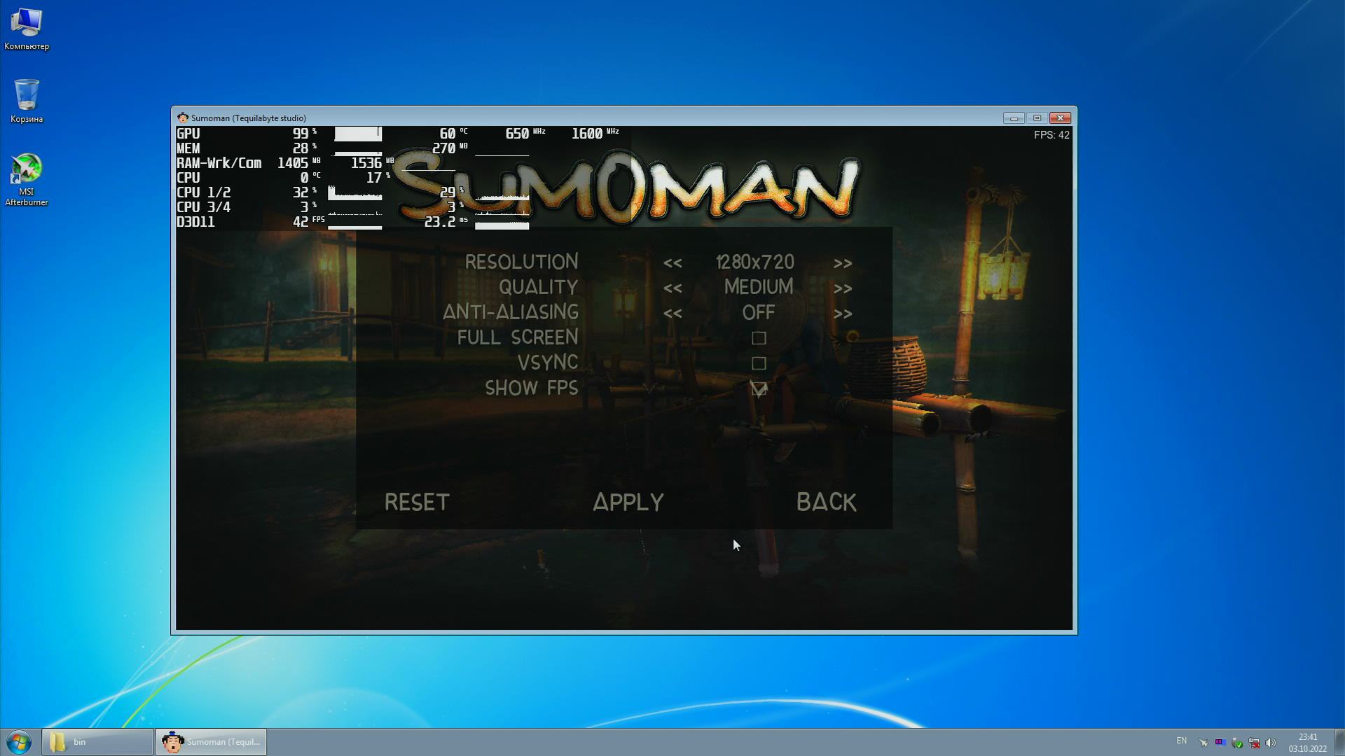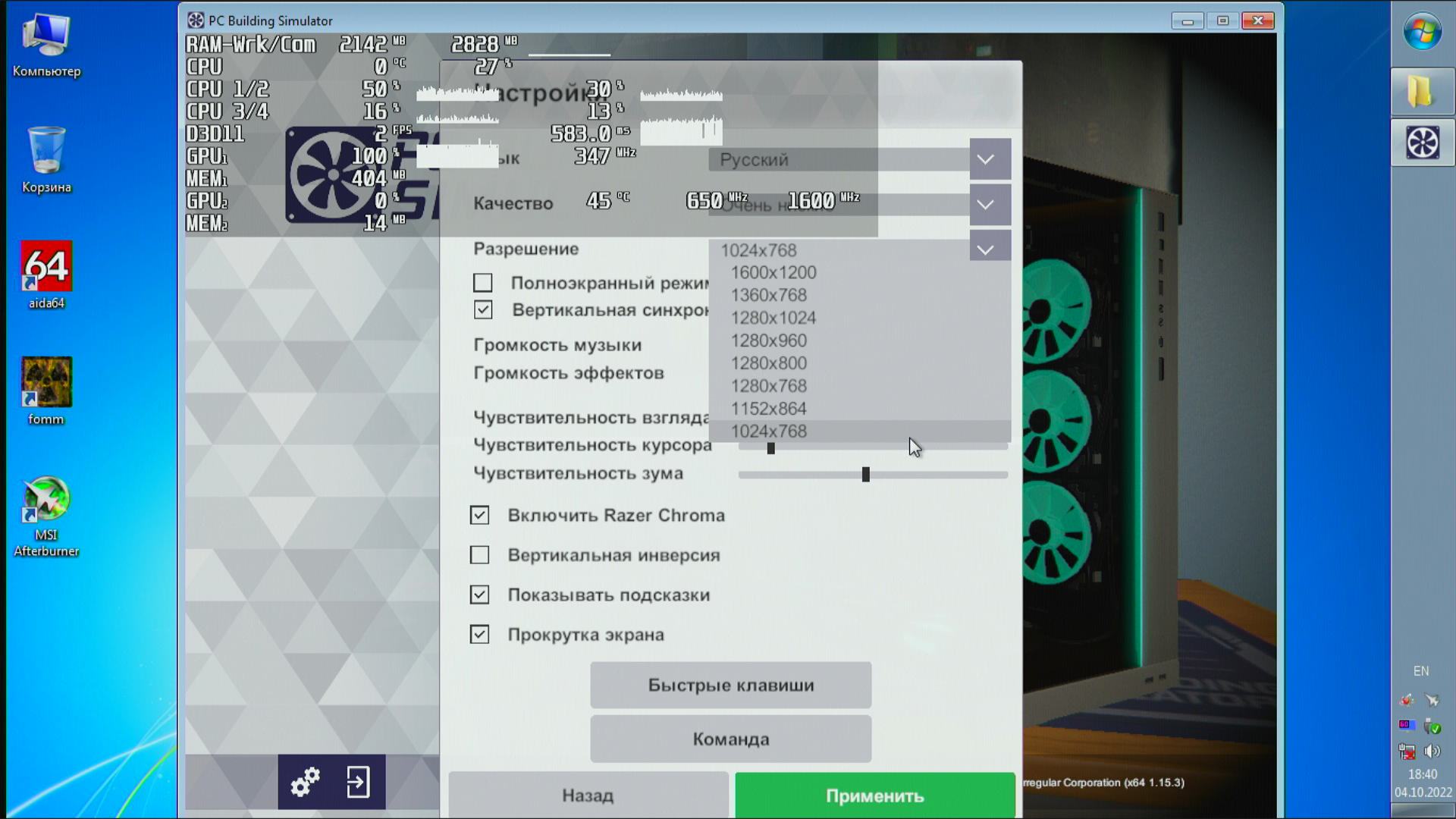 Далее я попытался запустить одну из игр, но видеокарта 9600 GT не умеет в DirectX 11, а потому игра лишь частично заработала, да, DX11 API, но изображения нет, только элементы меню видны, потому я решил немного настроить MSI Afterburner и Windows 7, отключить композитор рабочего стола чтобы не занимал лишнюю память видеокарты и не добавлял задержки ввода.