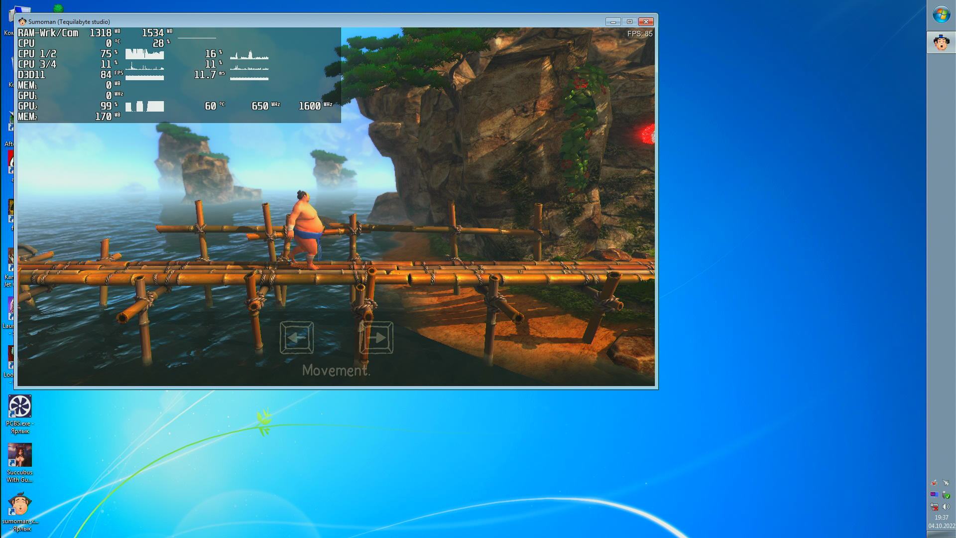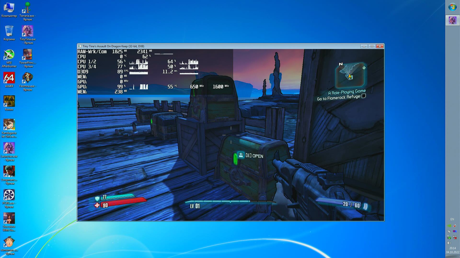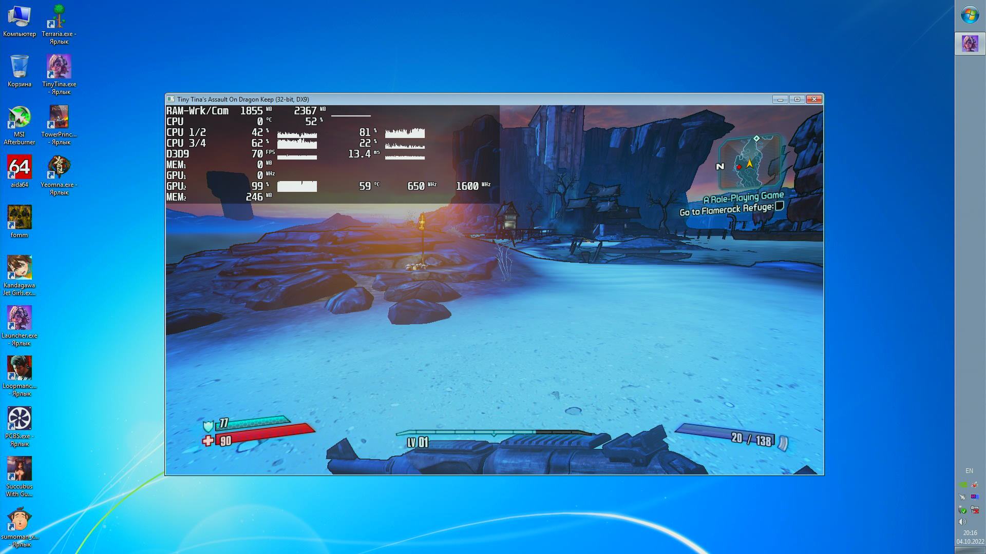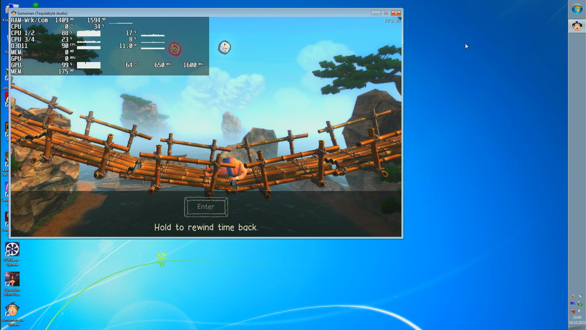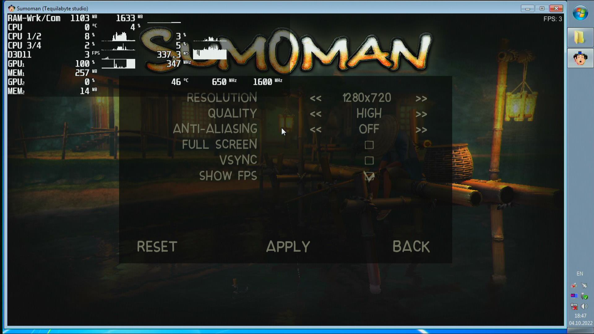Далее я попытался запустить одну из игр, но видеокарта 9600 GT не умеет в DirectX 11, а потому игра лишь частично заработала, да, DX11 API, но изображения нет, только элементы меню видны, потому я решил немного настроить MSI Afterburner и Windows 7, отключить композитор рабочего стола чтобы не занимал лишнюю память видеокарты и не добавлял задержки ввода.
