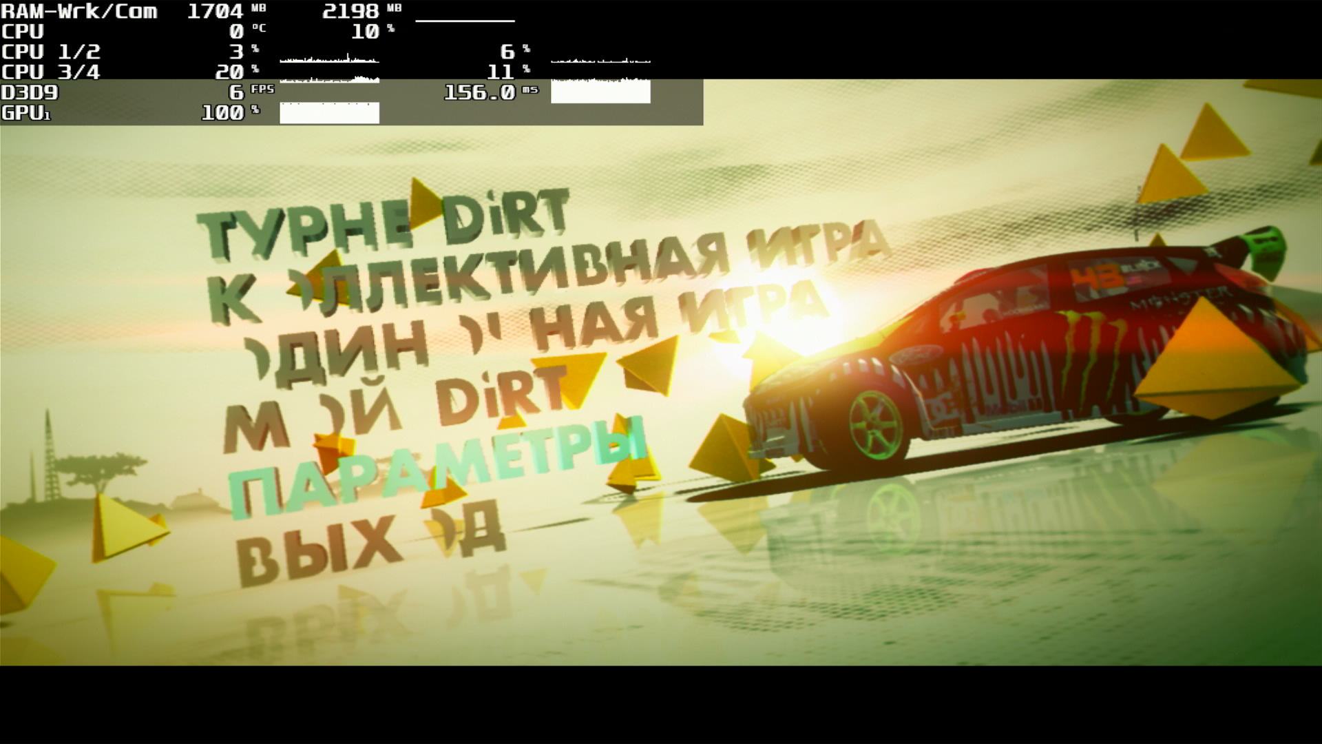 Запустив Dirt 3 на встроенной HD 3100 я обнаружил проблемы со шрифтами главного меню игры, и конечно же низкий FPS.