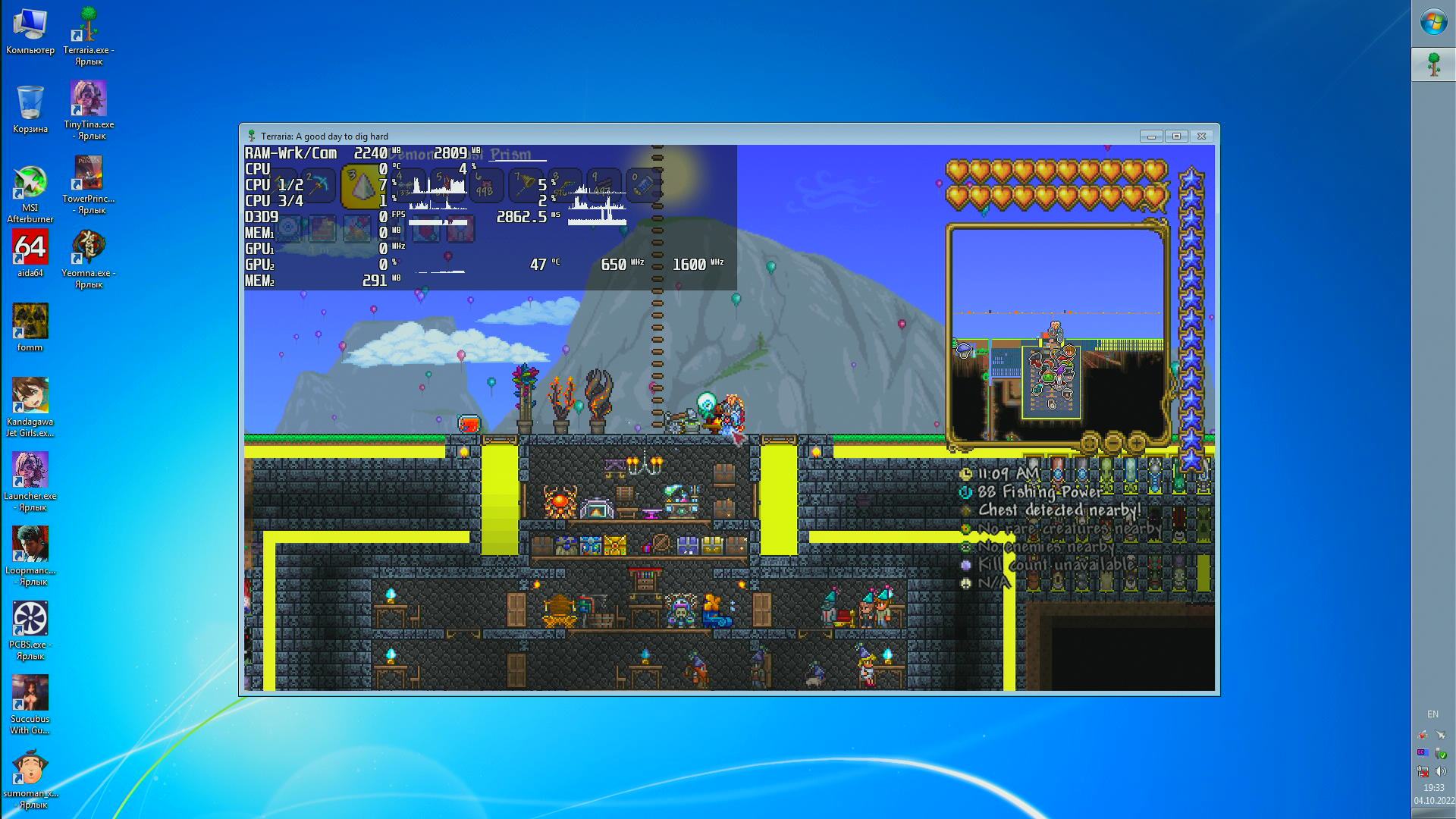 GeForce 9600 GT справилась с Terraria на высоких настройках в разрешении 1280x720, с боссами возможно нужно будет снижать качество графики, но играть можно без особых проблем, если бы не типичные фризы с видеокартой NVIDIA...