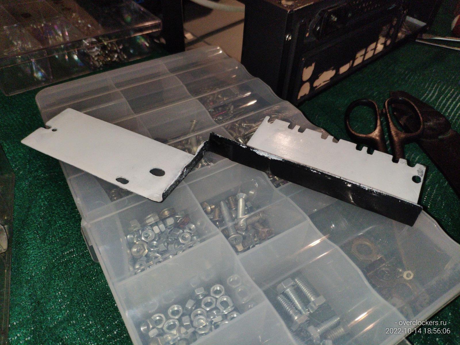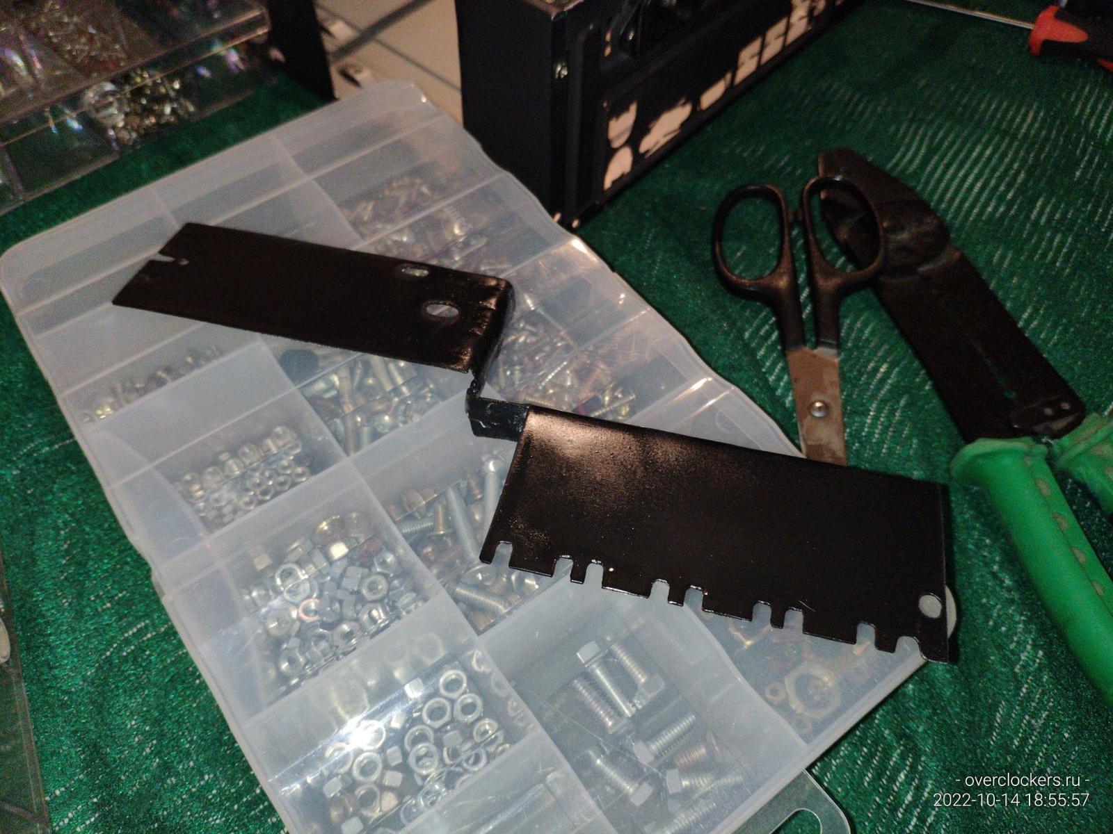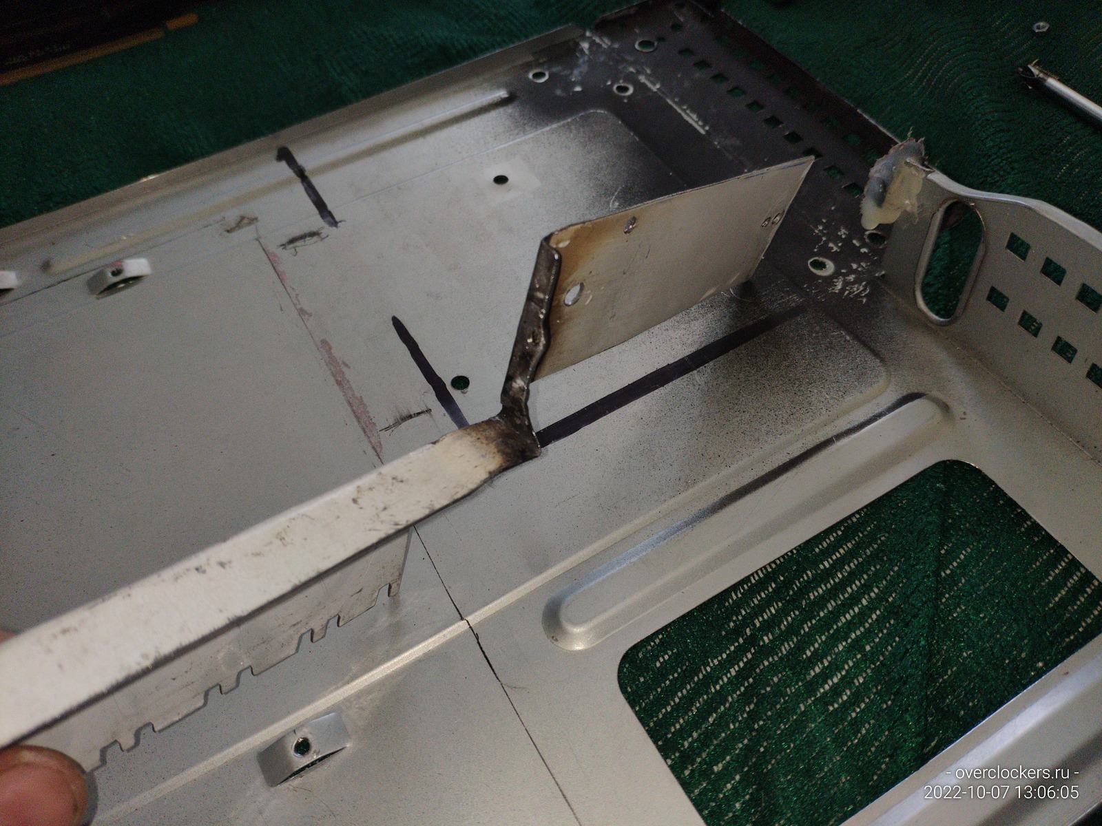 Железяку пришлось немного переварить, просто нужно было сместить на несколько миллиметров верхнюю пластину чтобы появилась возможность закрепить видеокарту классическим методом, заодно немного обточил лишние выступы.