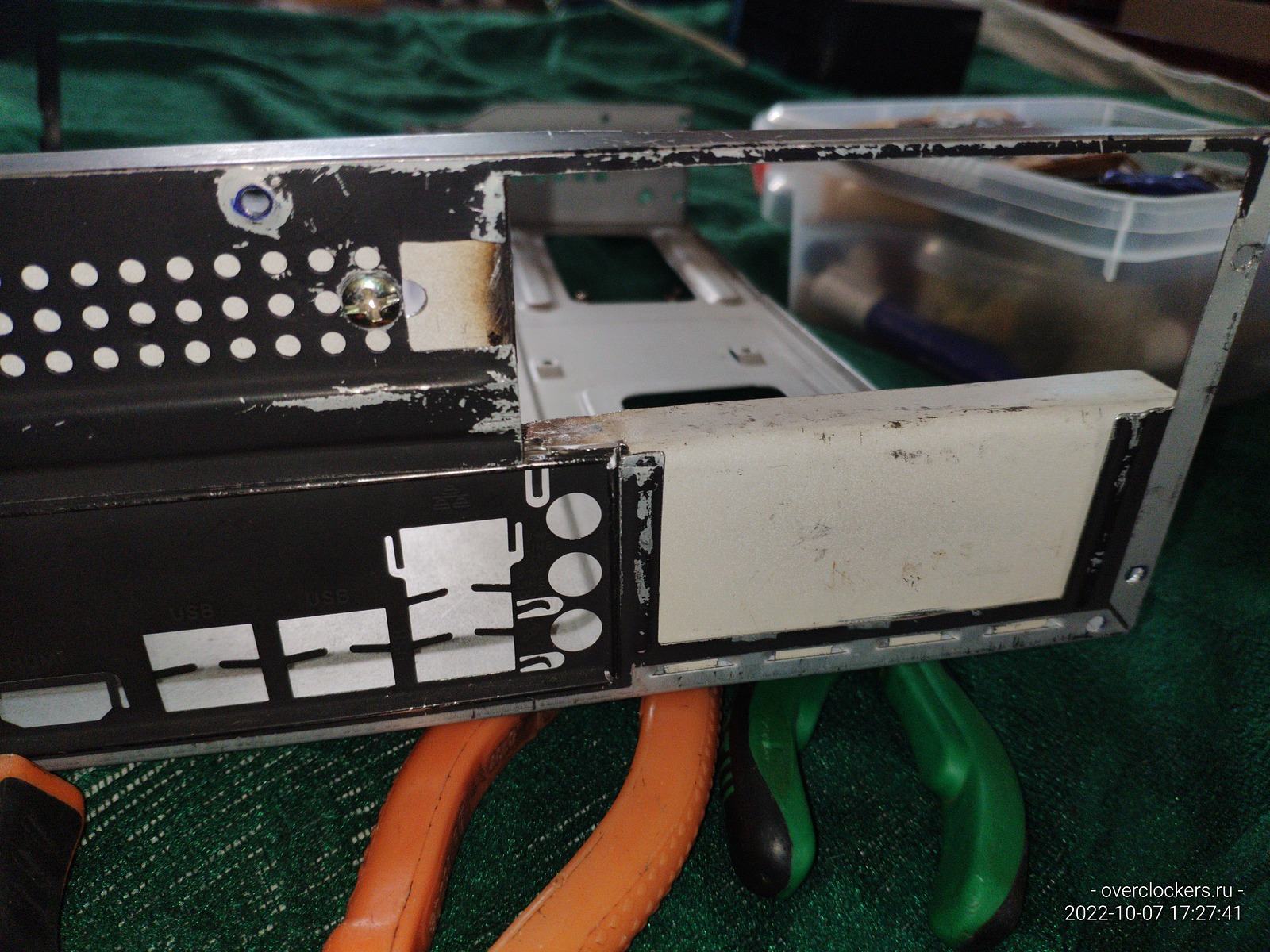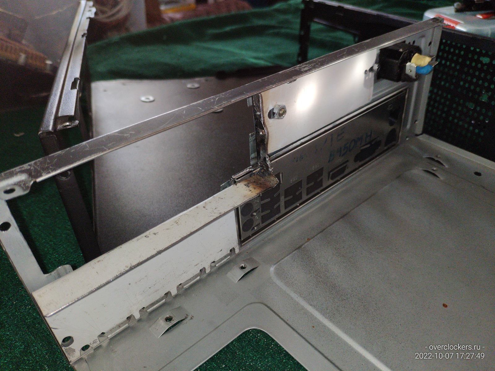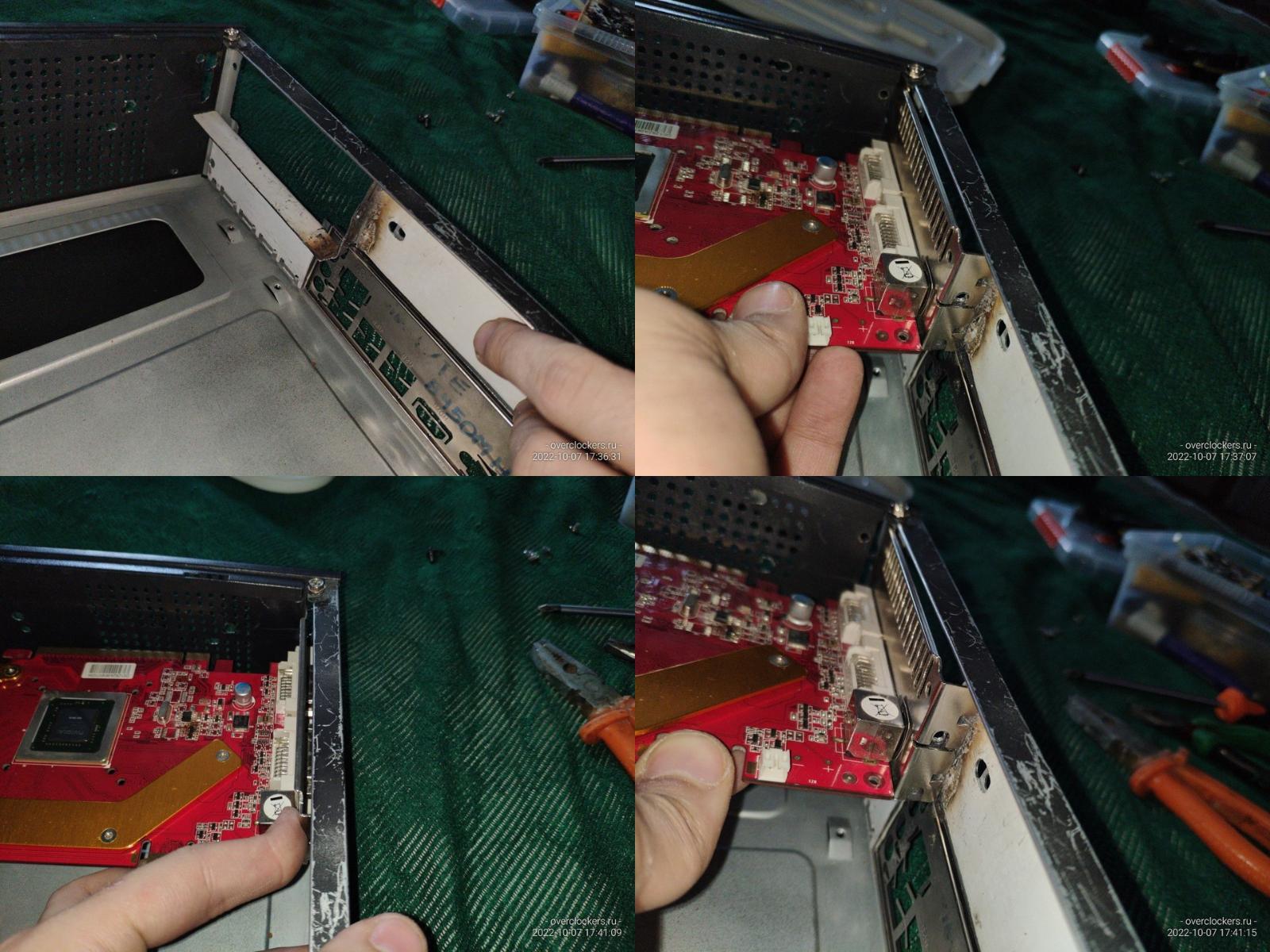 Железяку пришлось немного переварить, просто нужно было сместить на несколько миллиметров верхнюю пластину чтобы появилась возможность закрепить видеокарту классическим методом, заодно немного обточил лишние выступы.