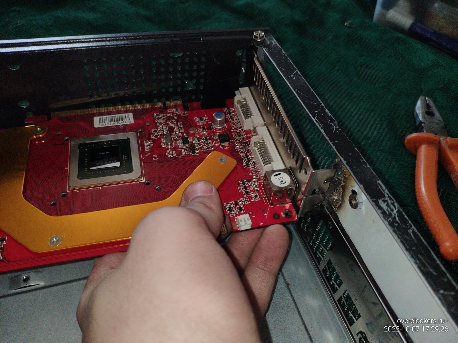 Теперь то видеокарта точно встанет как надо, надеюсь... Заодно проверил качество сварки, вроде вполне неплохо сварились пластины.