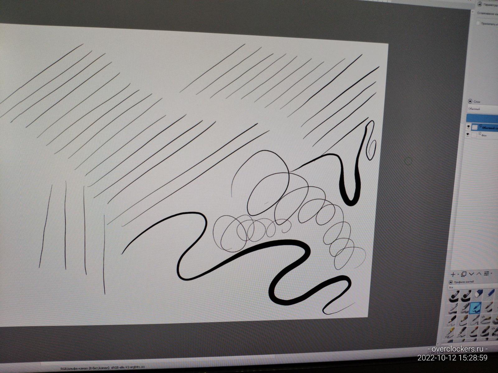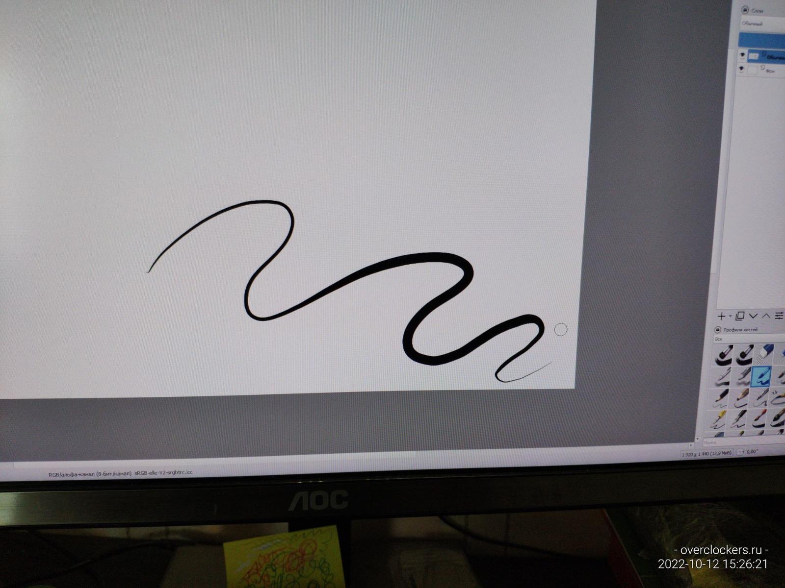 Уже на этом этапе я вижу что планшет не ходит волнами при диагональных линиях, даже если относительно медленно вести перо, именно при медленном ведении пера волнистость сильнее всего проявляет себя если у планшета низкая точность.