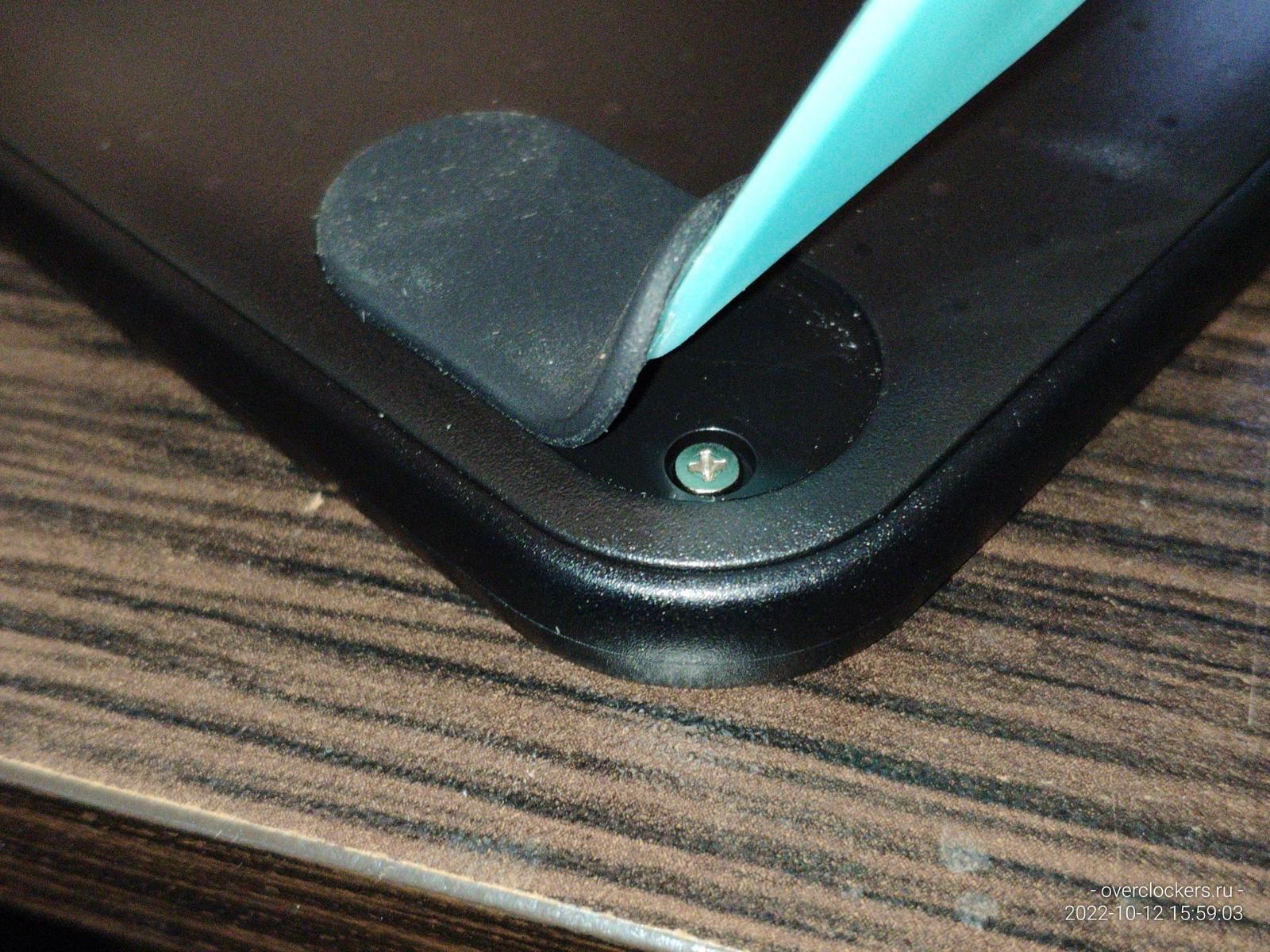 Винтики спрятались под ножками, обычное явление, снимаем все ножки на специальную бумагу к которой невозможно приклеить клейкие ленты.
