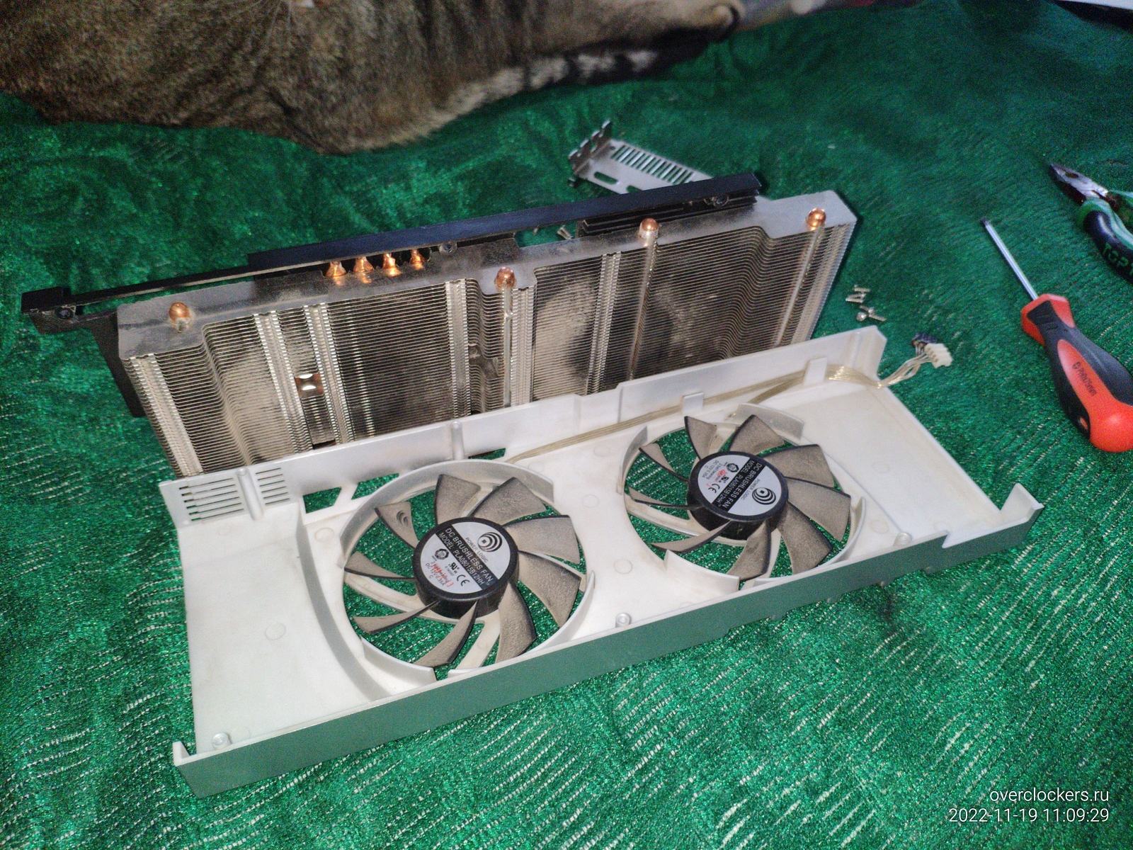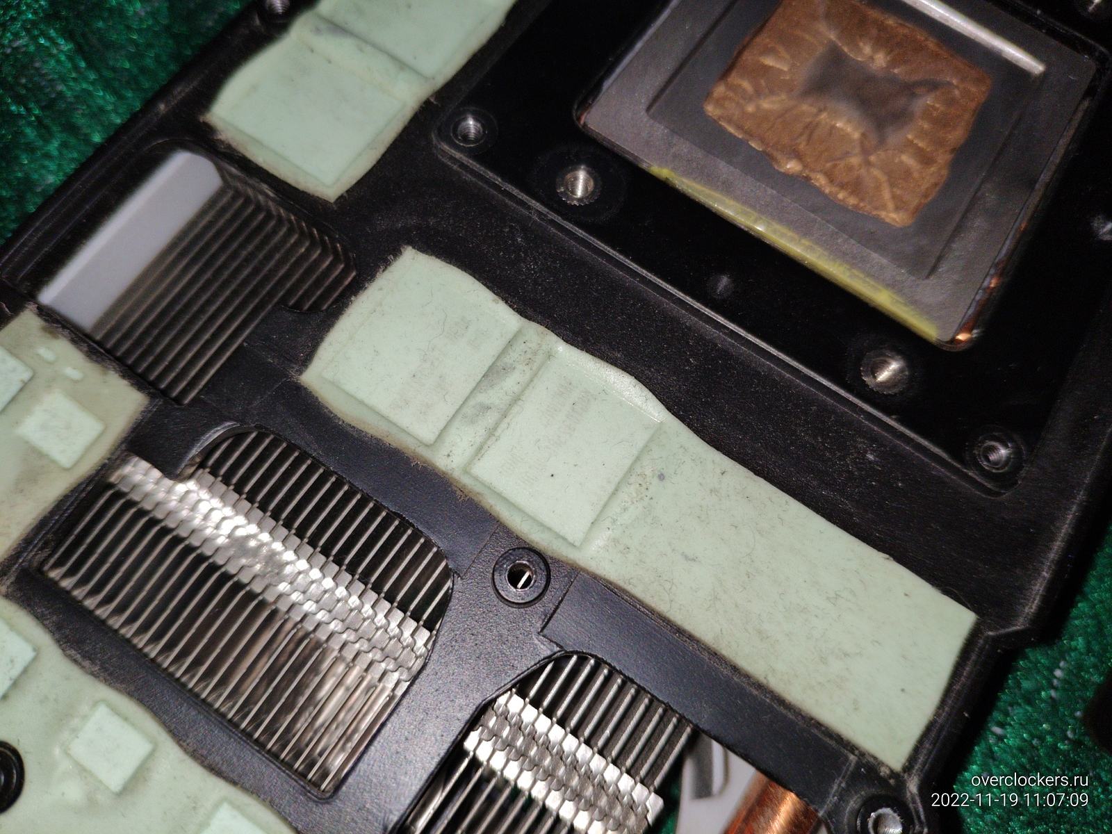 Palit GTX 570 Sonic Platinum просто ужасна в обслуживании, разобрать систему охлаждения то еще приключение, а еще можно заметить качественные податливые прокладки, если такие будут испорчены при разборке, то не будет никаких проблем их превратить в "жидкий" вариант и применить снова без особых потерь теплопроводящих свойств.