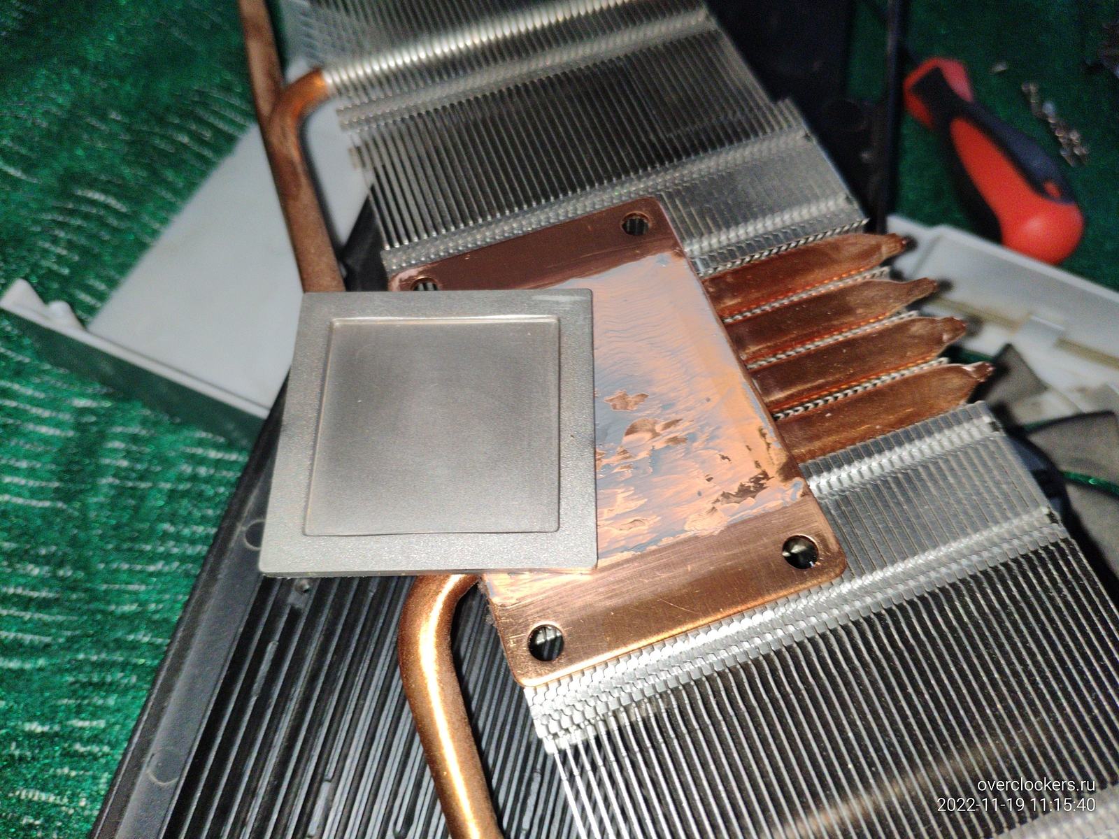 И в целом у меня получилось задуманное, конечно, крышка все еще лежит на компаунде от NVIDIA, но зазор явно сократился между кристаллом и крышкой, это уже гораздо лучше, чем было.