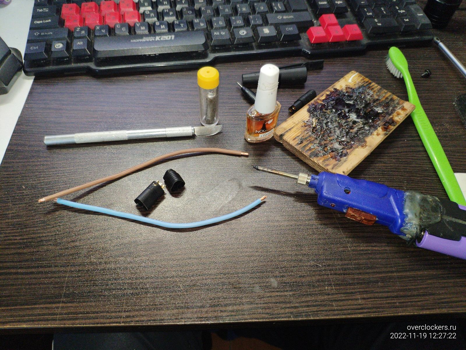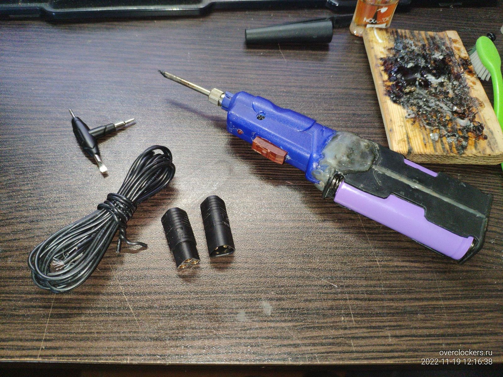 Провода нужно подготовить, этим и занимаюсь сейчас, самодельный аккумуляторный паяльник пока выдерживает нагрузку...