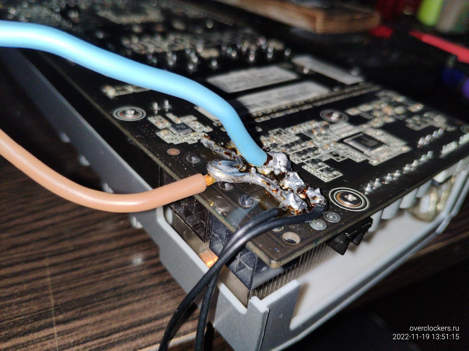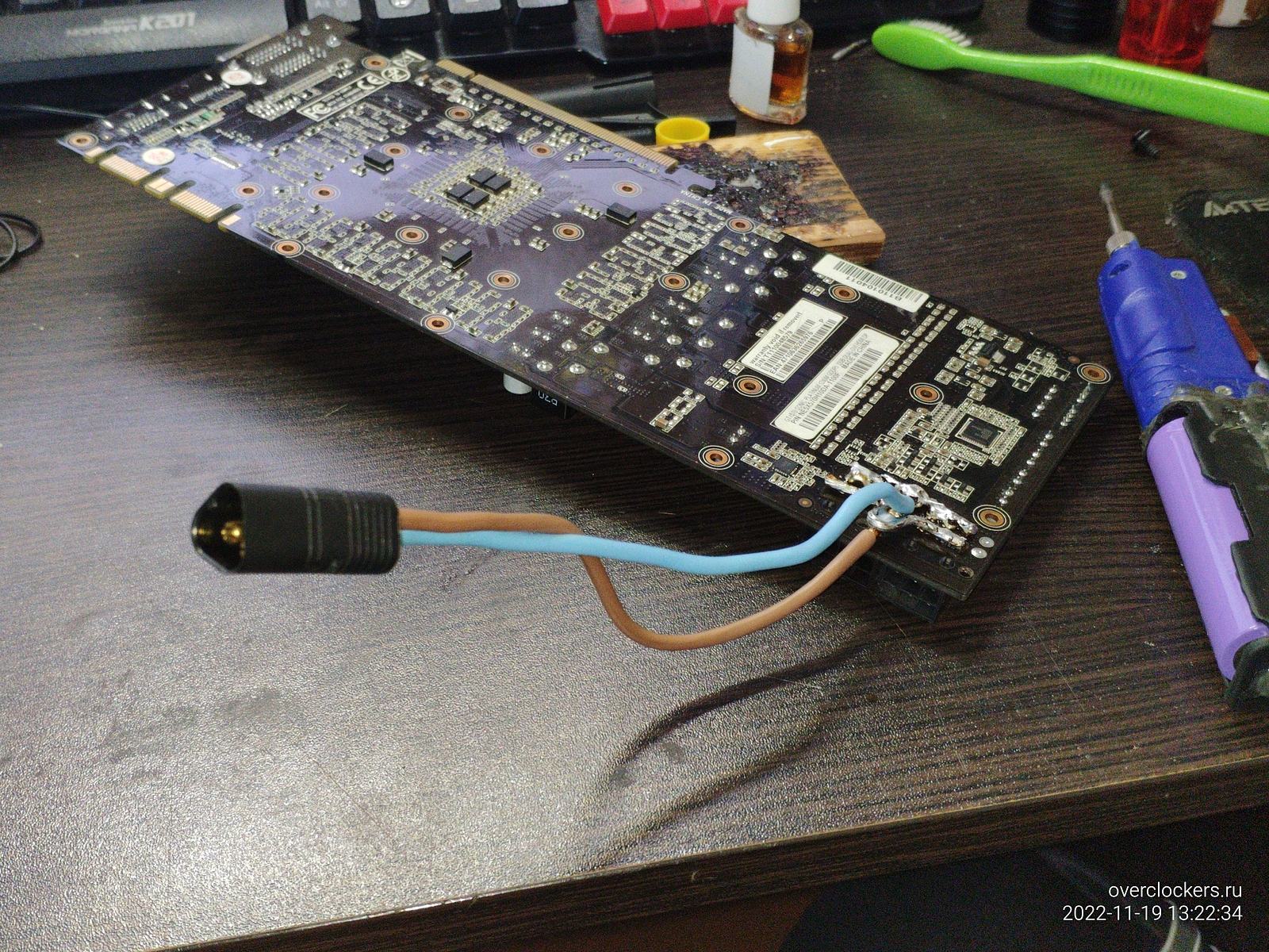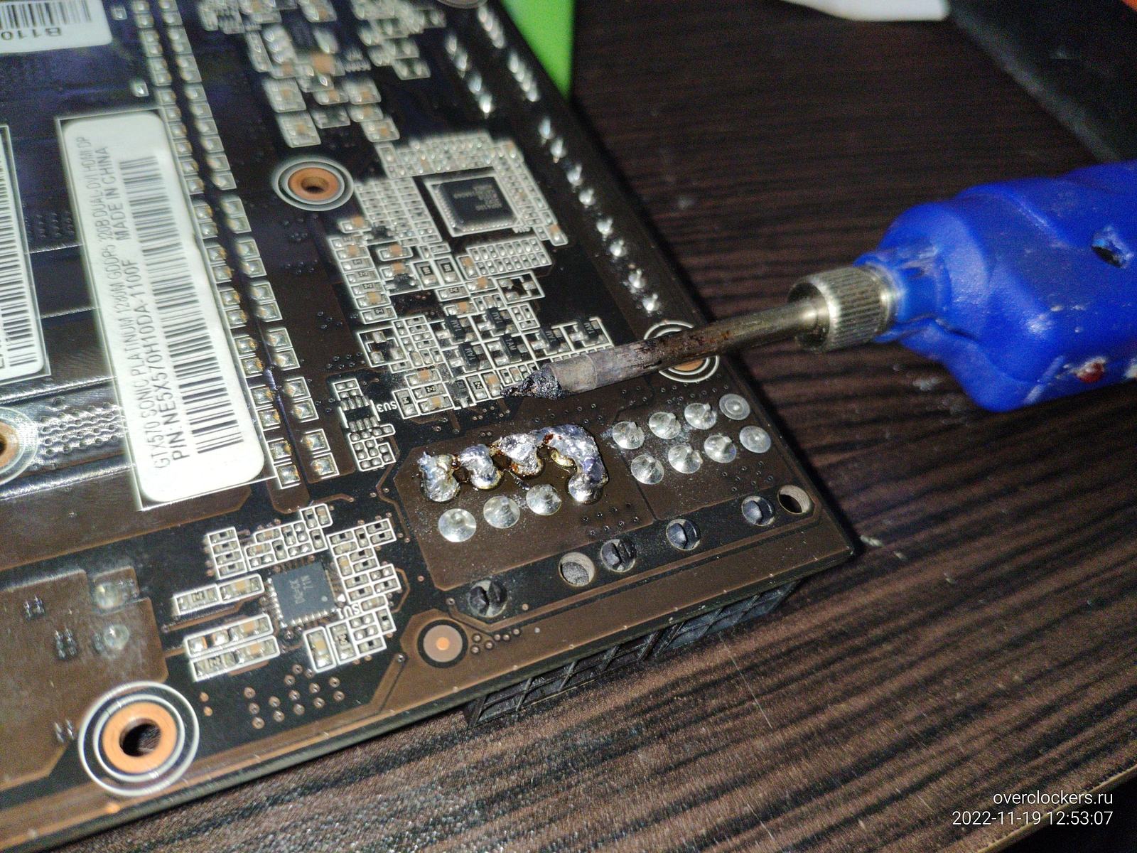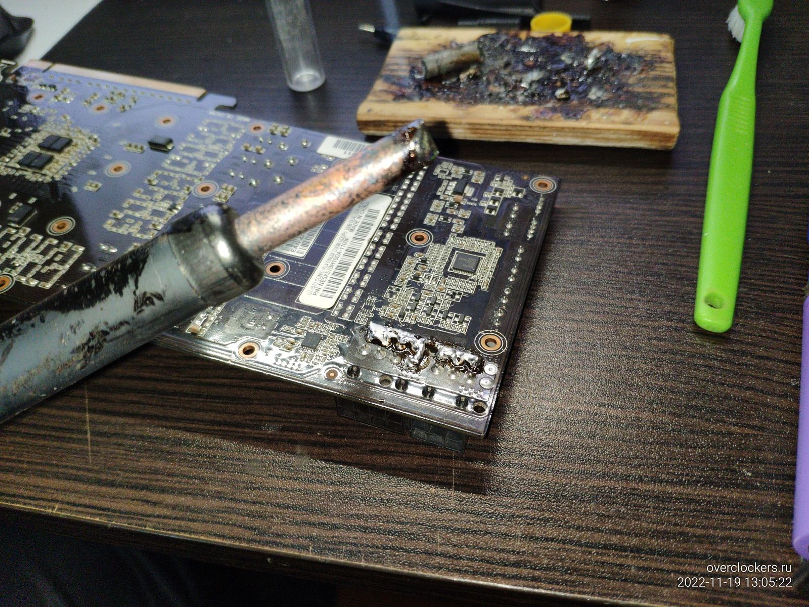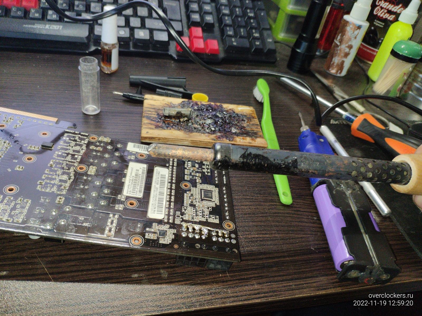 С видеокартой самодельный аккумуляторный паяльник уже не справился, можно конечно высаживая аккумуляторы кое-как прихватить, но сейчас лучше взять более подходящее паяло...