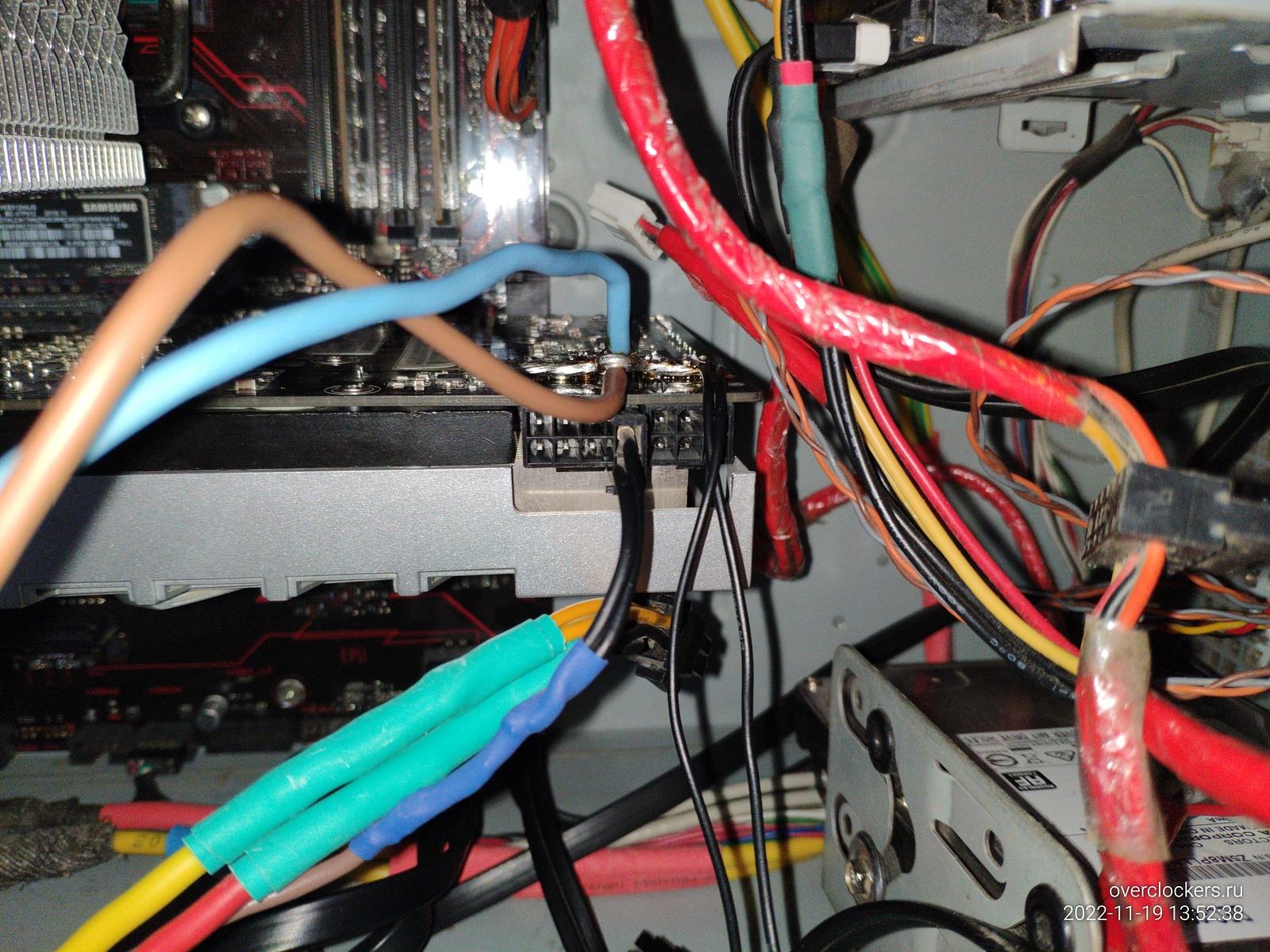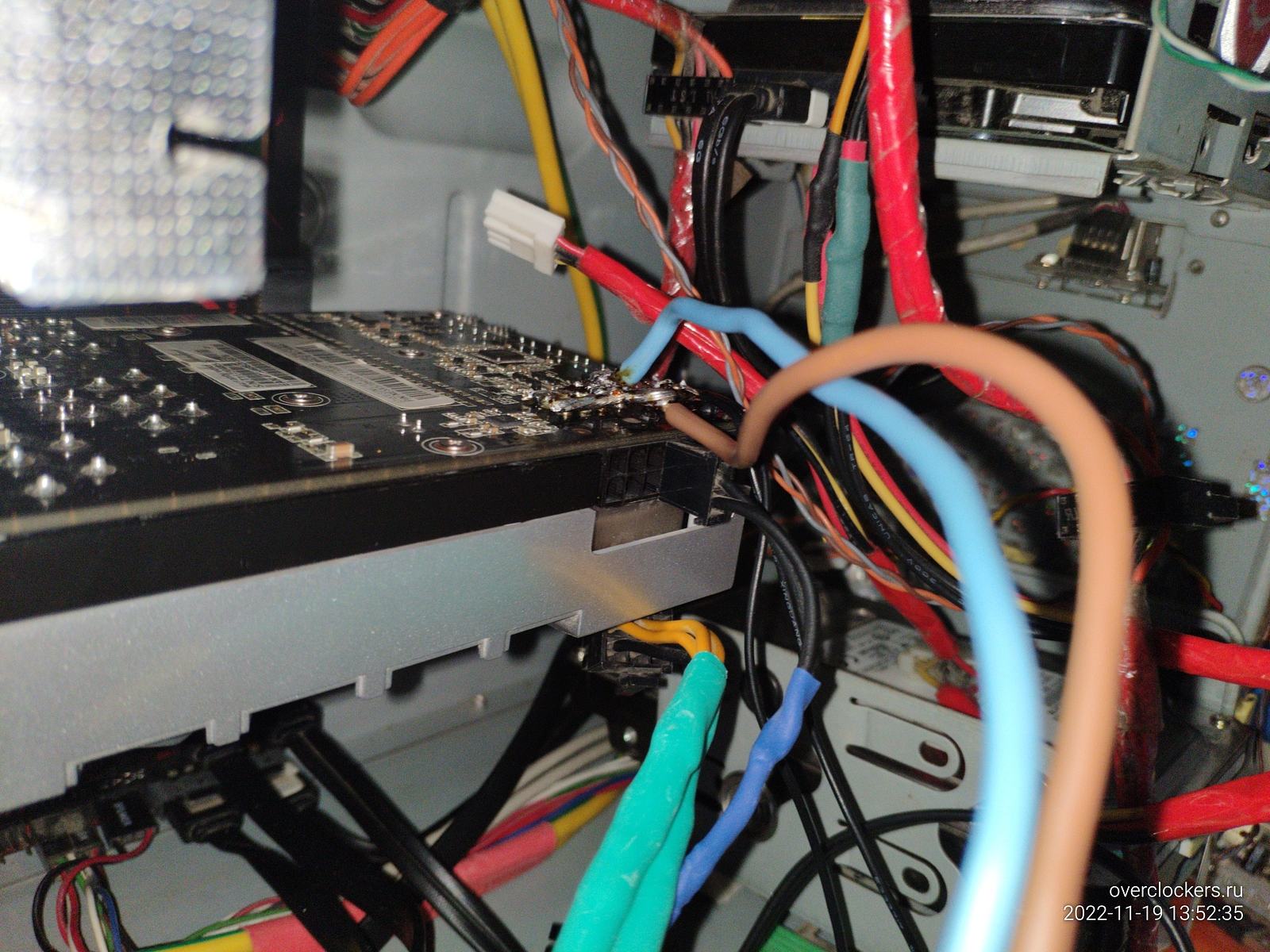 Причем особо важно отметить, заводские "2 Pin" что подключены чисто для датчика видеокарты сидят в гнезде как "сопля", чуть дернуть и этот отросток вылетает из гнезда, заводской контакт в штекере явно износился и угрожает "полыхнуть", если бы на него приходила нагрузка...