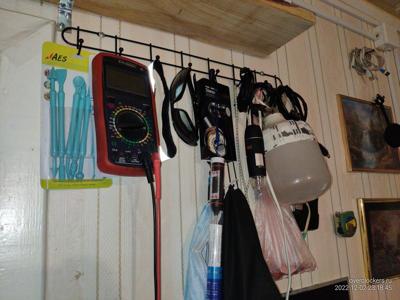 Некоторые вещи можно повесить на вешалки, это следует делать только если к вещам нужен постоянный быстрый доступ, например мультиметр, лампа переносная, термометр, маска чтобы во время уборки в запыленных помещениях меньше пыли вдыхать, и прочие вещи к которым необходим быстрый доступ.