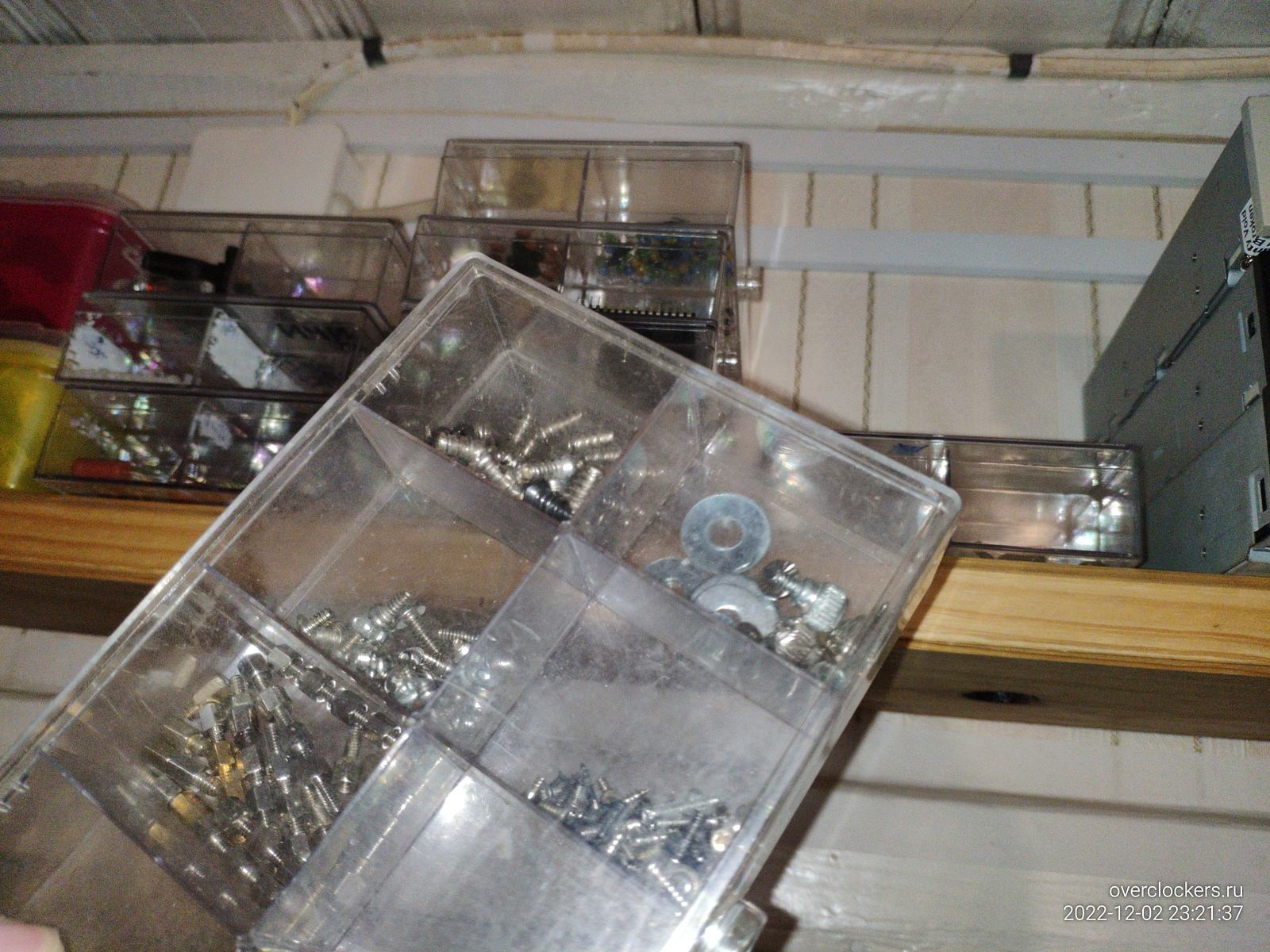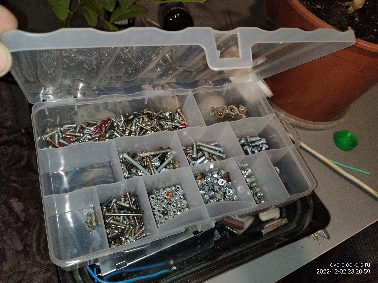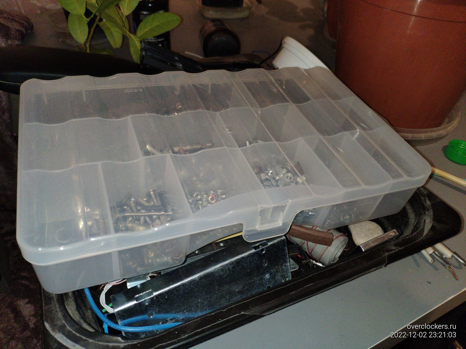 Начну с больших боксов, можно хранить и мелочи вроде винтиков, главное не ронять боксы, иначе все полетит через щели между каретками.