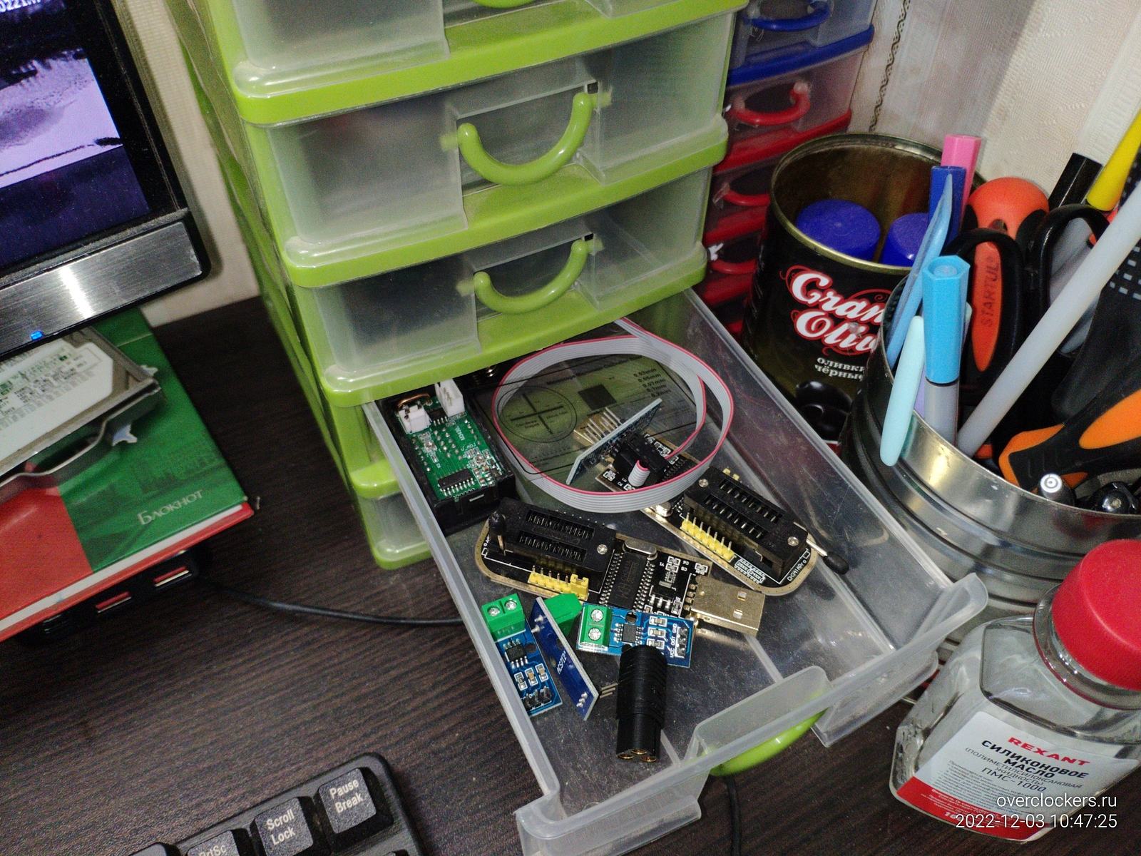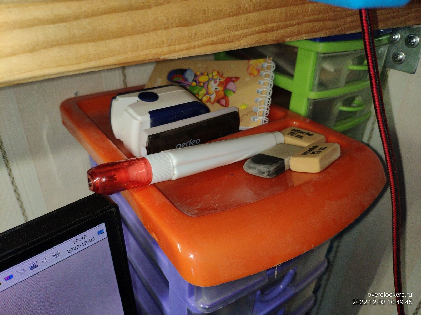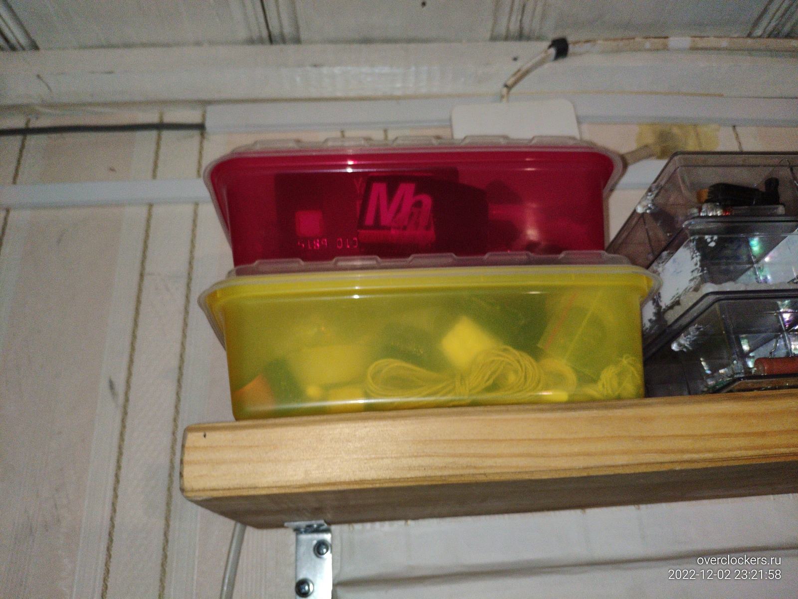 А еще у меня была лишняя крышка от больших боксов, её приклеил к средним боксам и использую для быстрого доступа к разной мелочи.