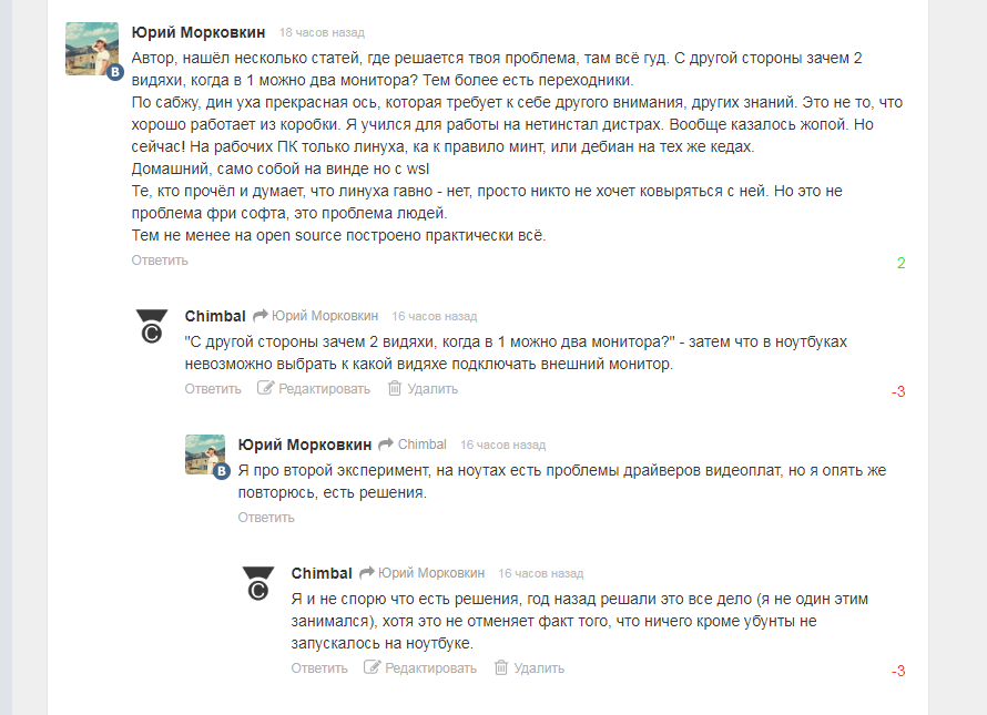 Особенно если учесть как неадекватные хейтеры (или боты) вполне нормальные ответы в минус загоняют, абсолютно без причин на это, ну или это так сильно припекло неадекватную часть фанатов Linux, после того как я наглядно показал некоторые реальные проблемы Linux систем... И теперь они специально минусуют лично меня (пытаются бедолаги в кибербуллинг) есть в этом смысл или нет, забавно это все.