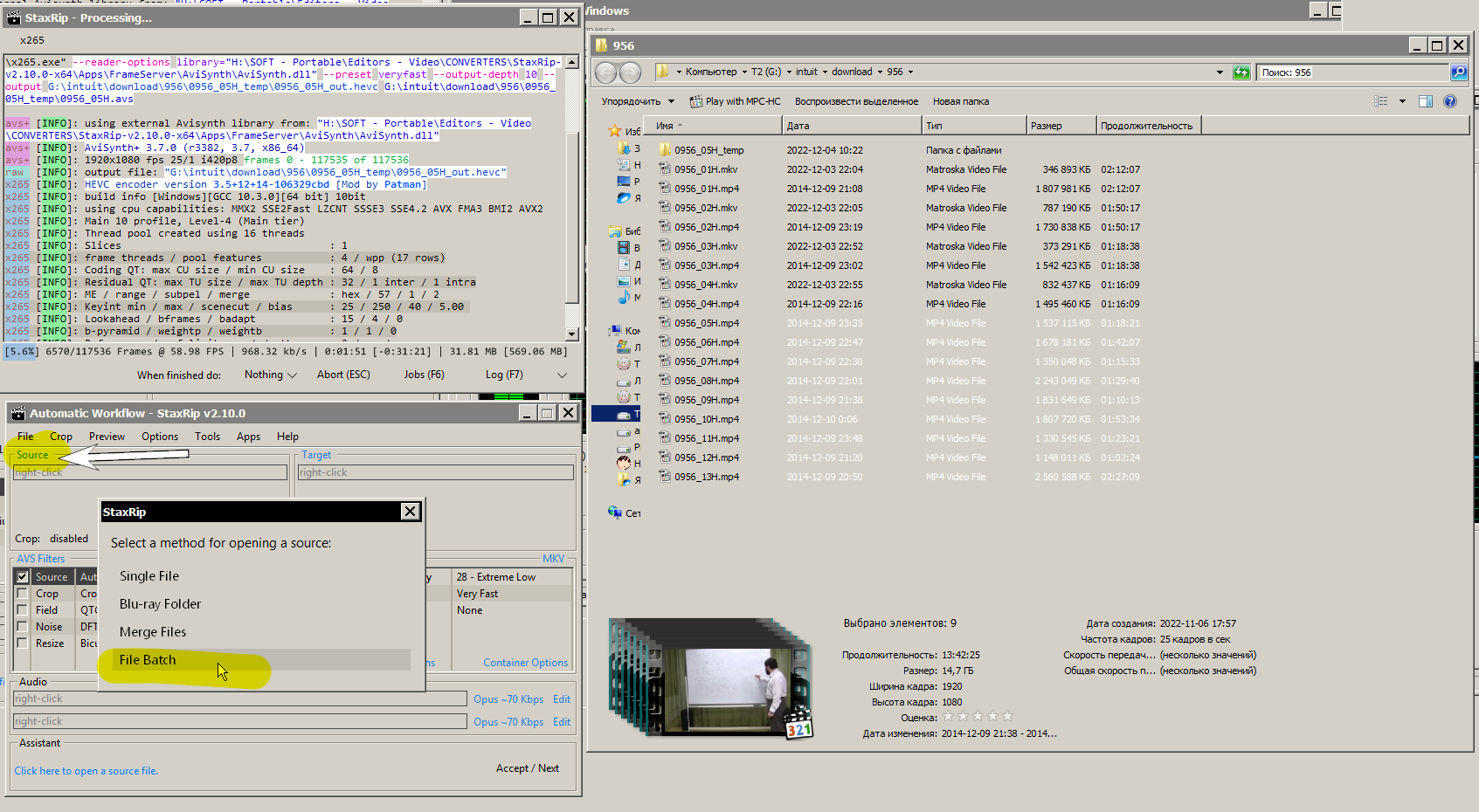 Как я освободил более 400 ГБ места на диске обработав видео используя StaxRip