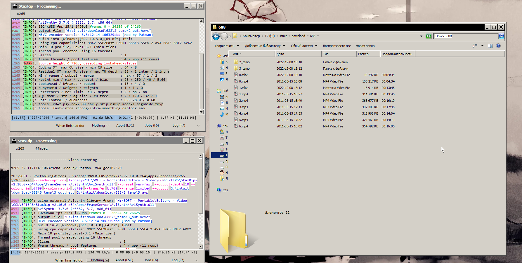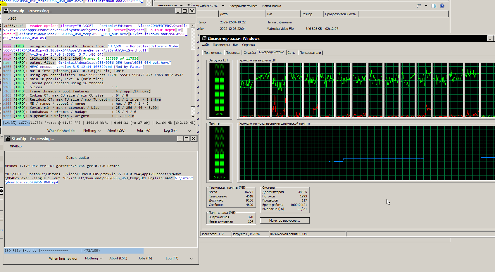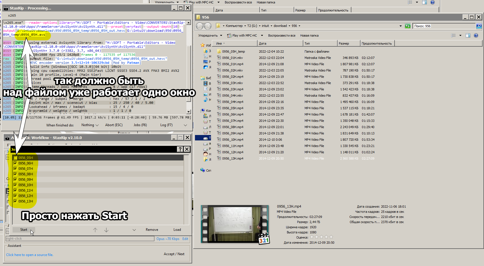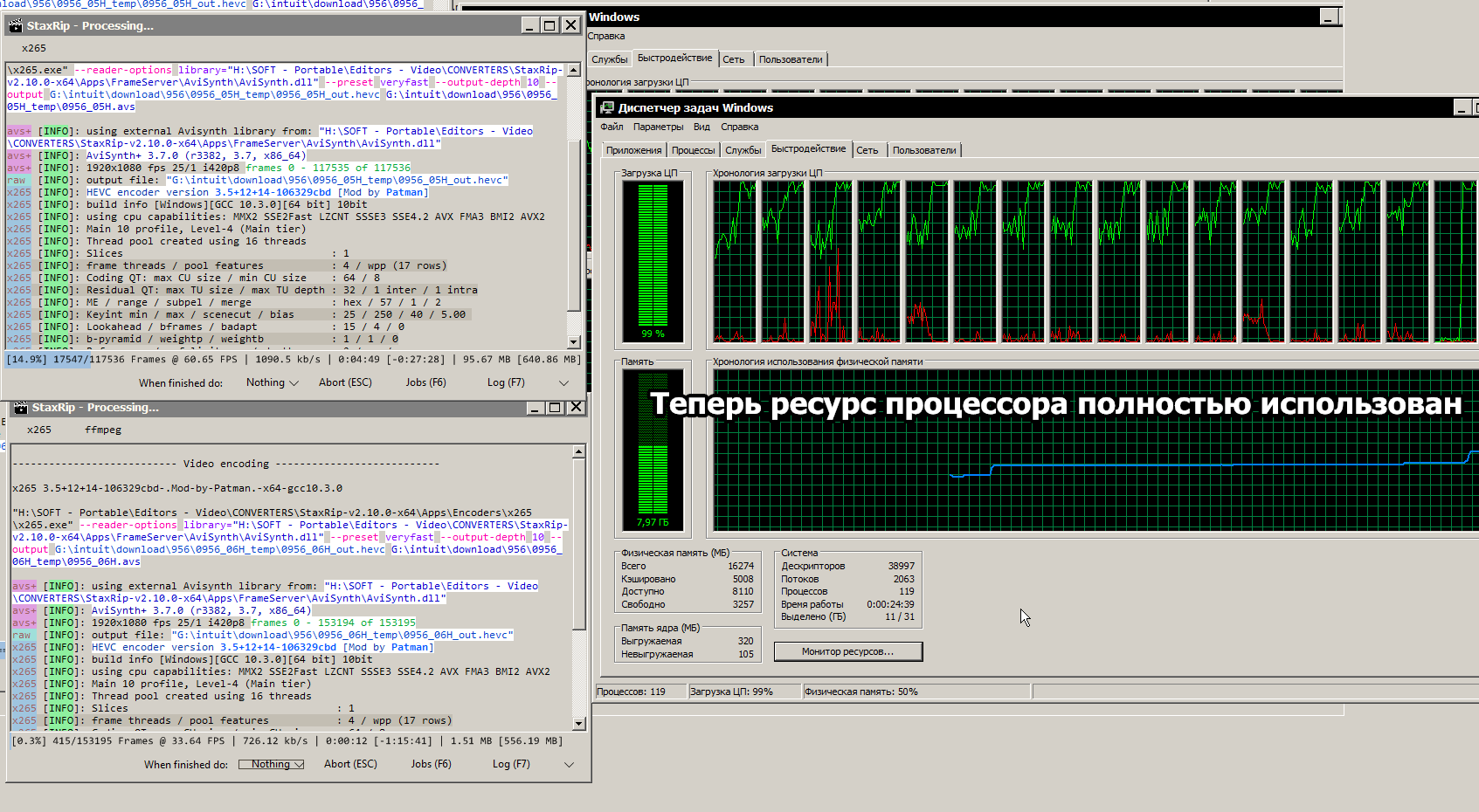 И так как у процессора остался незадействованный конвертером ресурс, я просто запущу вторую конвертацию в отдельном окне StaxRip.
