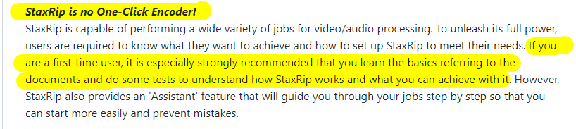 Чтобы вдруг никто не подумал что я выставляю конвертер как идеальный вариант для любого человека... Сами разработчики StaxRip говорят что это не типичный конвертер, для его использования следует почитать хотя бы документацию и начать экспериментировать, чтобы освоить конвертер.