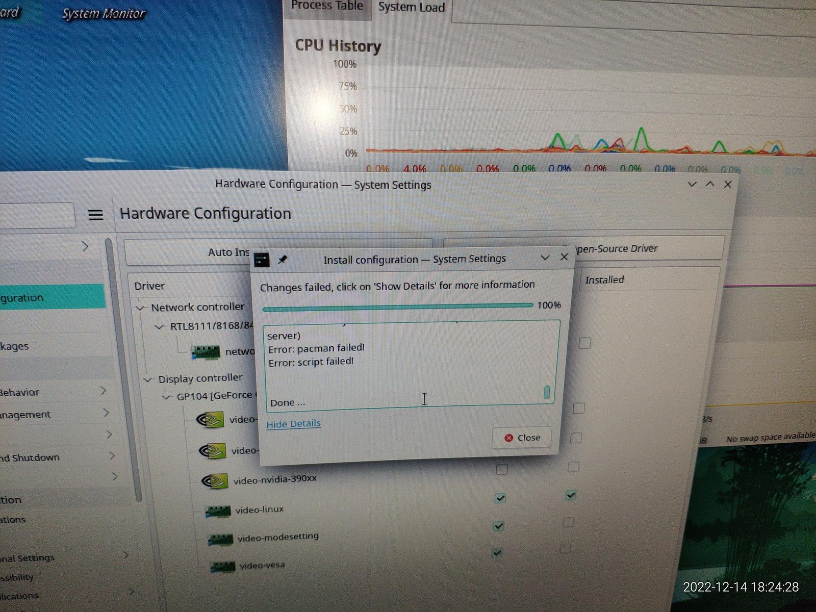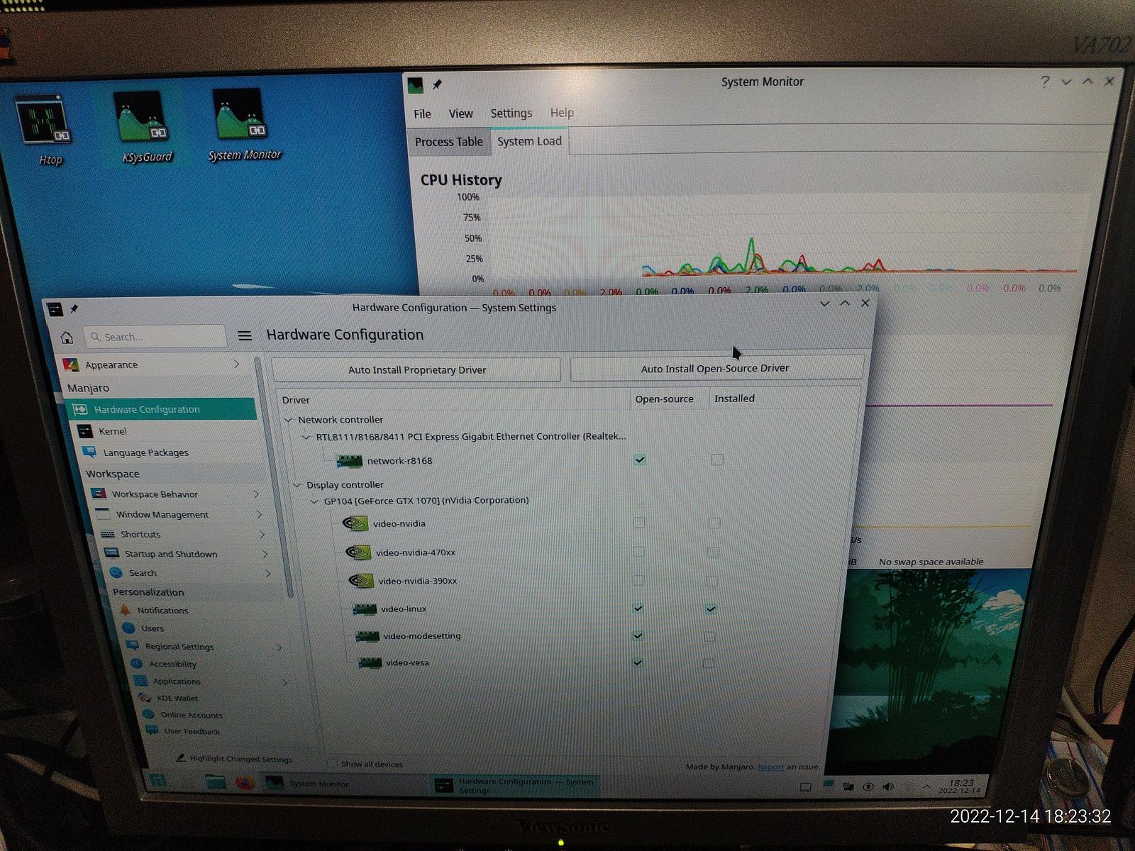 Чистая Manjaro 21: OpenSource драйвер на видеокарту ~99 Вт, с адекватным драйвером от NVIDIA "FAILED".