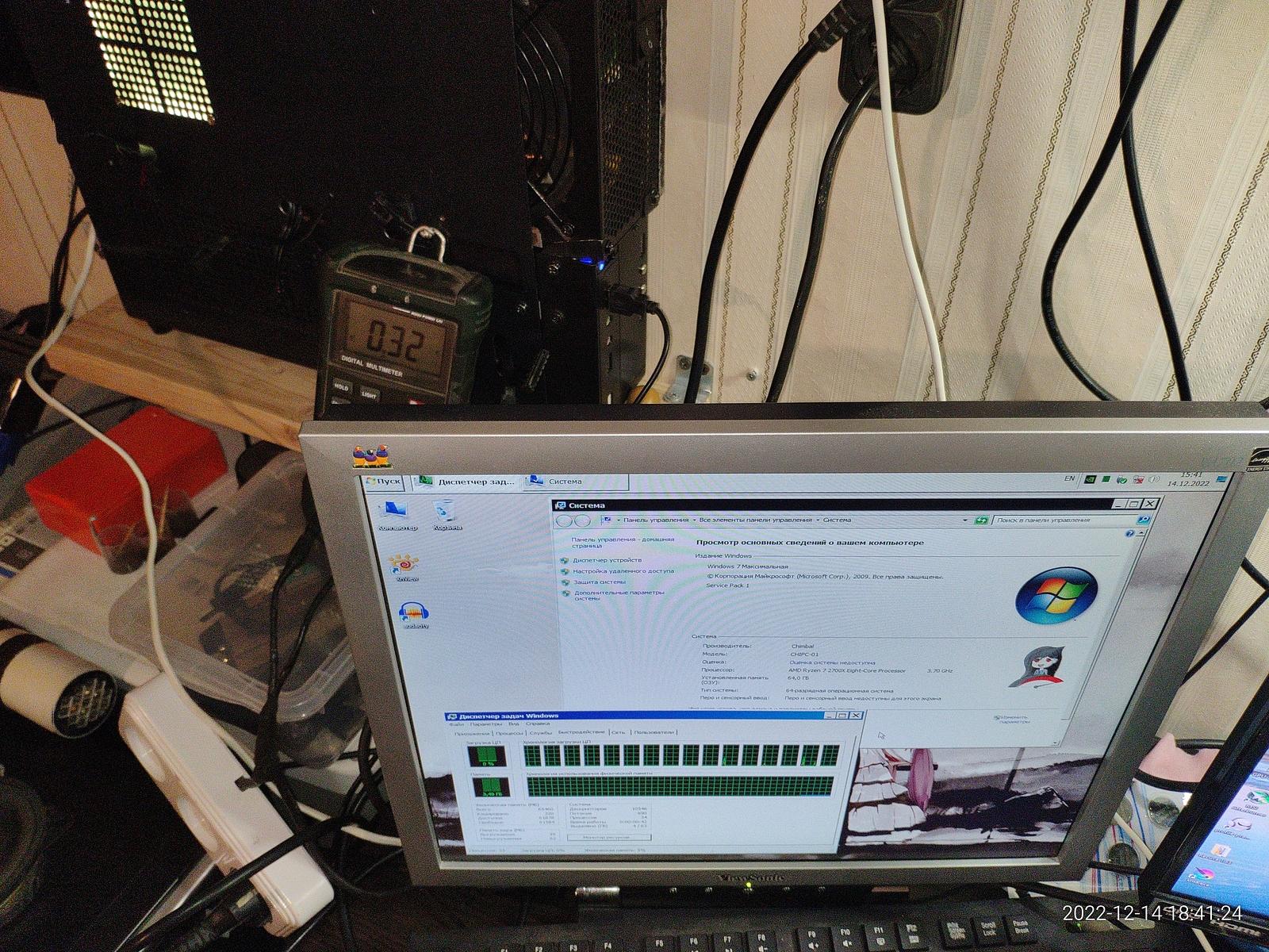 Далее загружаю Windows 7, ток потребления примерно 420мА (~92Вт), и это лучший результат среди систем без драйверов на видеокарту.