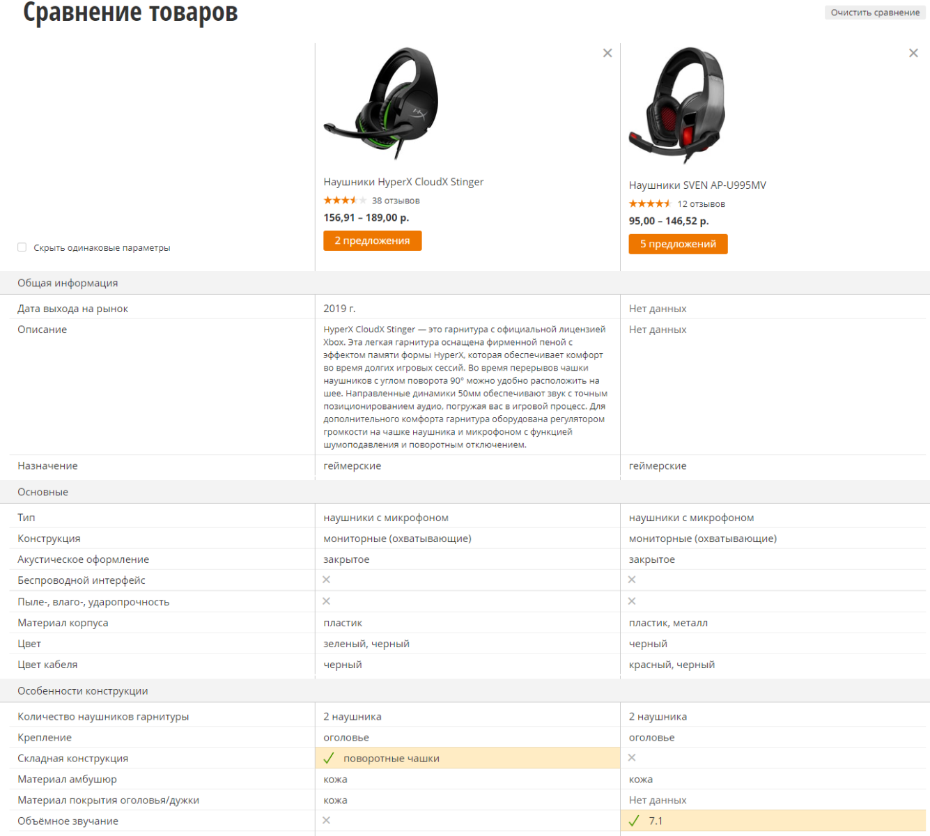 А еще меня очень смущает заявленный вес в характеристиках, для наушников HyperX заявлено 275г, для наушников SVEN заявлено 520г, но реальный вес HyperX CloudX Stinger вышел 269г, реальный вес SVEN AP-U995MV вышел 307г, не нужно быть математиком, чтобы увидеть разницу в заявленном и фактическом весе наушников...