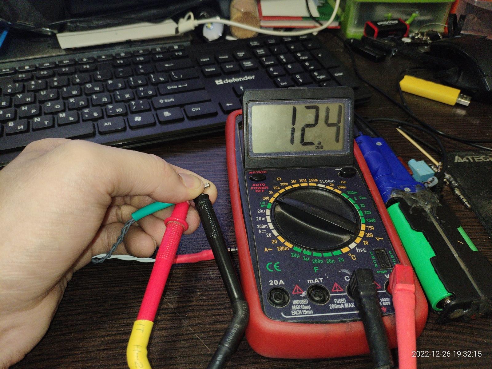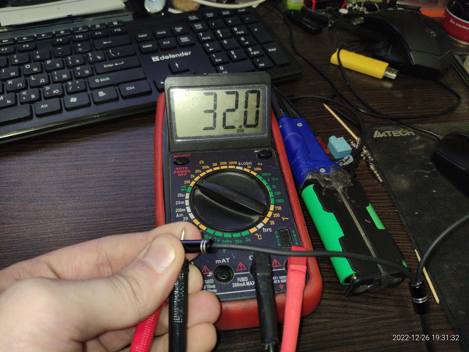 Сопротивление динамиков HyperX вполне совпадает с заявленными 30 Ом, тут претензий никаких, а вот сопротивление динамиков в наушниках SVEN AP-U995MV вышло около 11 Ом когда заявлено в характеристиках 32 Ом.