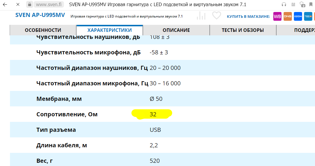 Ошибка в каталоге Onliner? Нет, на официальном сайте производителя тоже указано сопротивление 32 Ом, хотя фактически у меня там ~11 Ом и просто неадекватная громкость на высоких уровнях громкости...