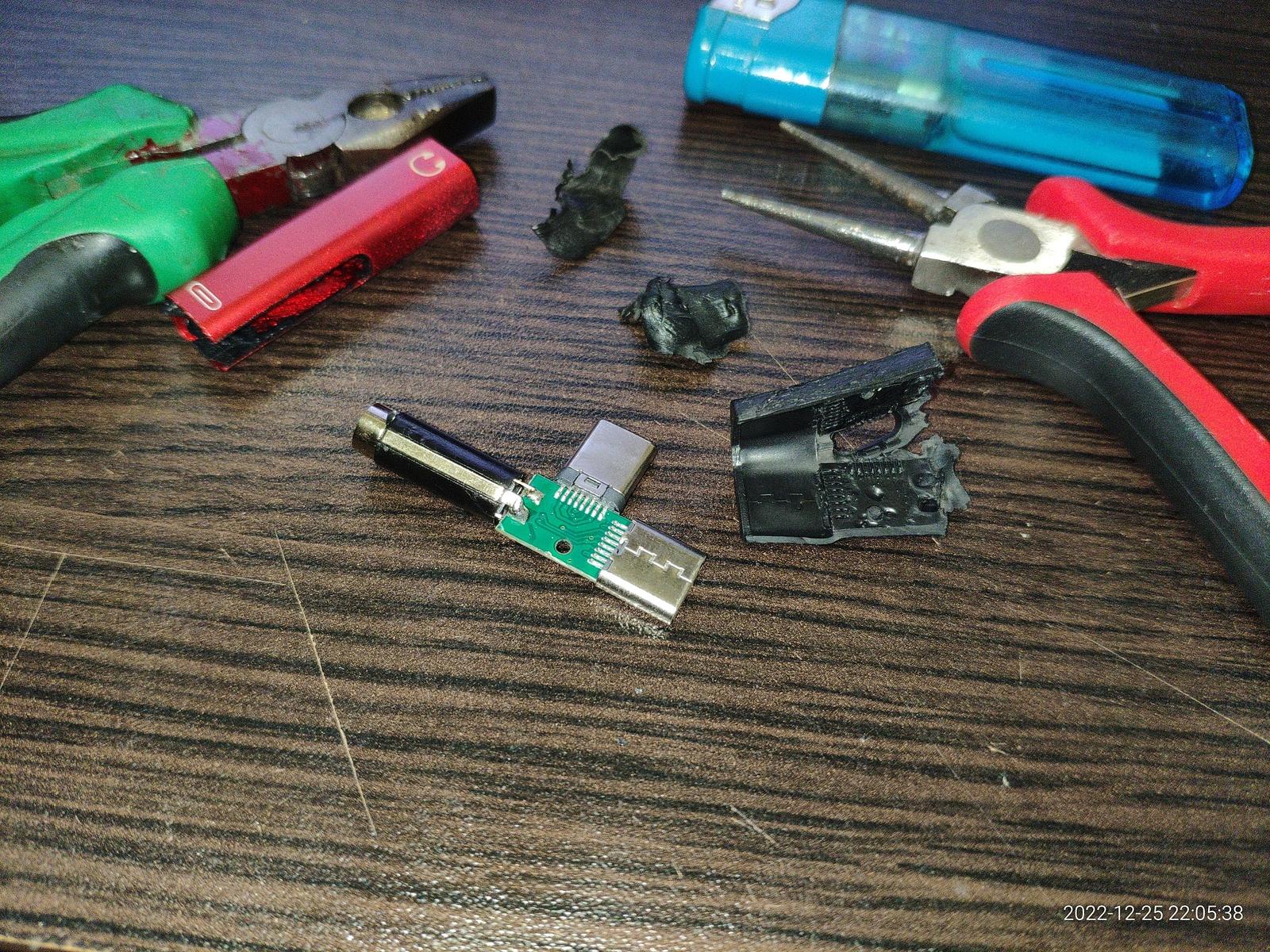 Далее я буду создавать мутантов, но прежде чем начинать мне нужны материалы, адекватное 4 Pin аудио гнездо мне не помешает, разбираю китайский переходник USB Type-C ради аудио гнезда качественного.