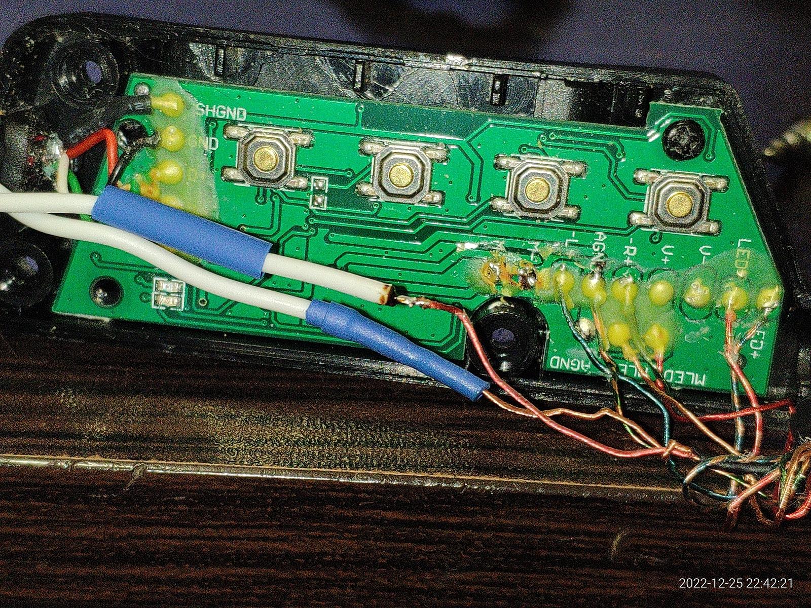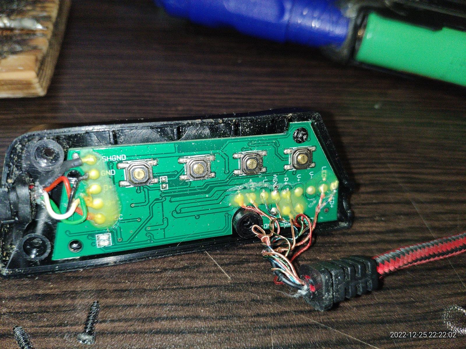Так вот, есть контакты микрофона M- (GND) и M+, тут все просто, GND она и в африке GND, есть несколько площадок для подключения светодиодной подсветки в наушниках, тоже элементарно все.