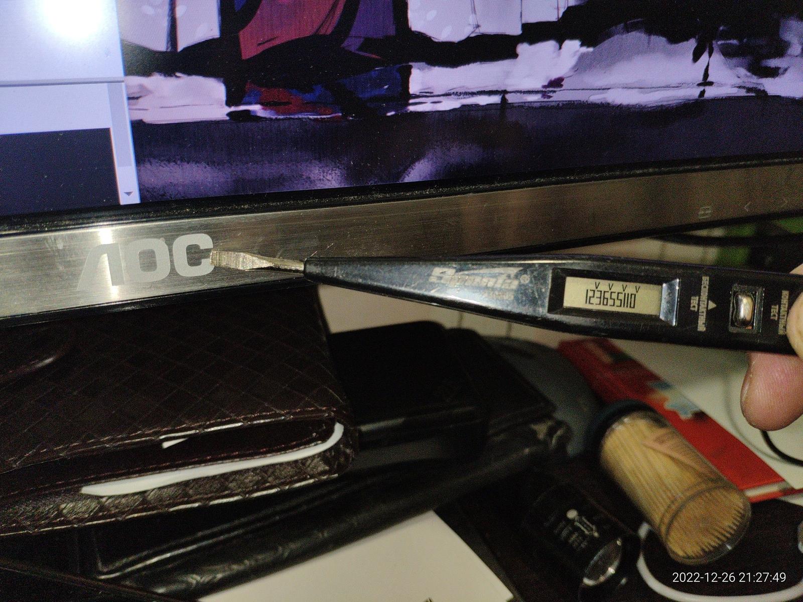 У меня деревянный пол, диэлектрические шлепанцы на ногах, и касаясь металлической панели монитора тестер насчитал примерно 35 вольт разности потенциалов, а если я достану ногу из шлепанца и встану прямо на пол ногой то и все 110 вольт.
