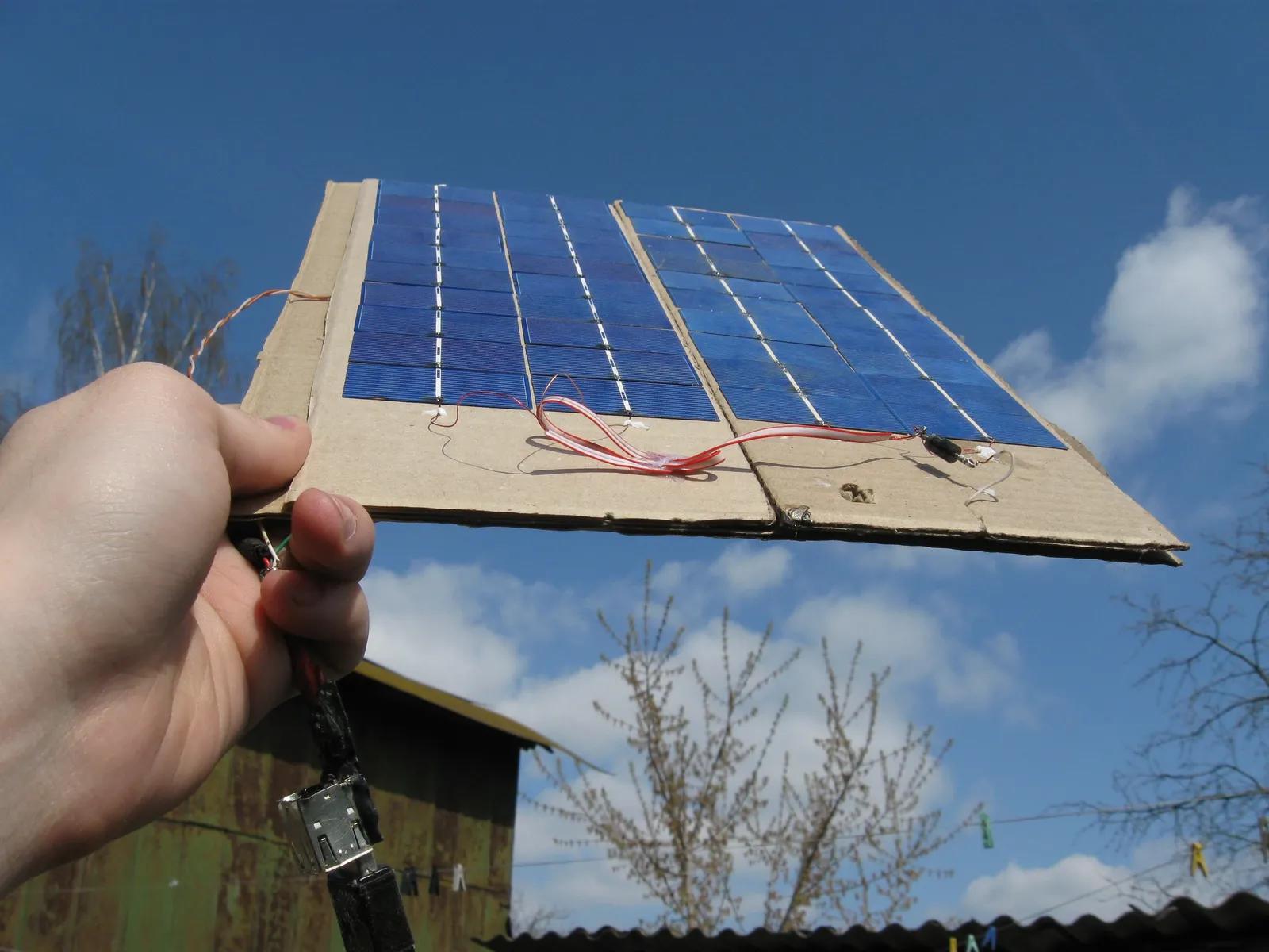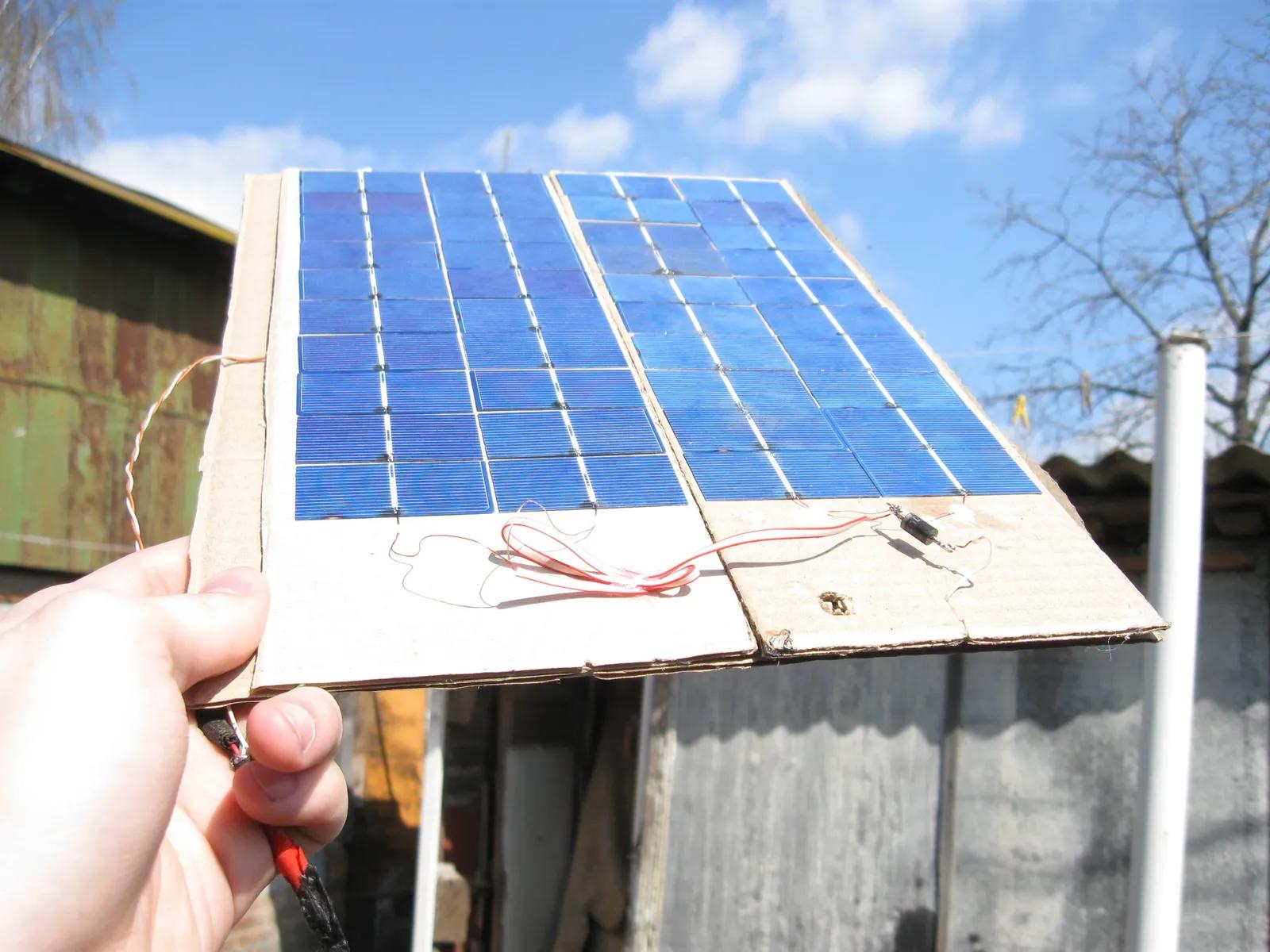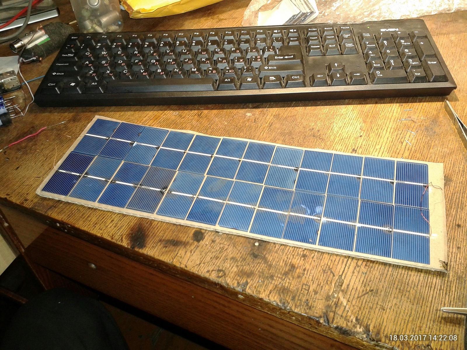 Далее перейду к солнечной панели, эту панель собирал из дешевых китайских пластин, в качестве основы выбрал картон, и в целом у меня получилось нечто, оно даже работало.