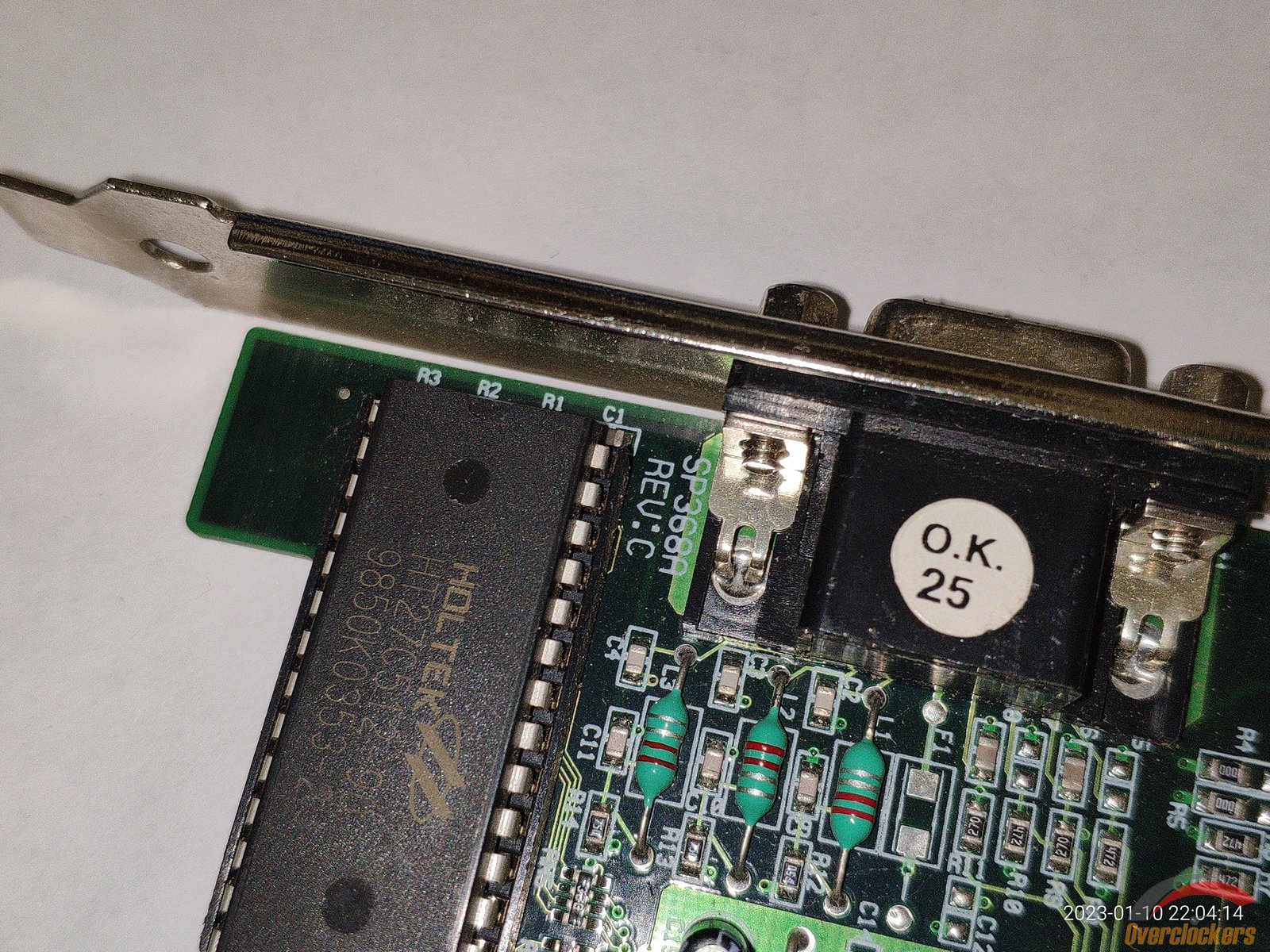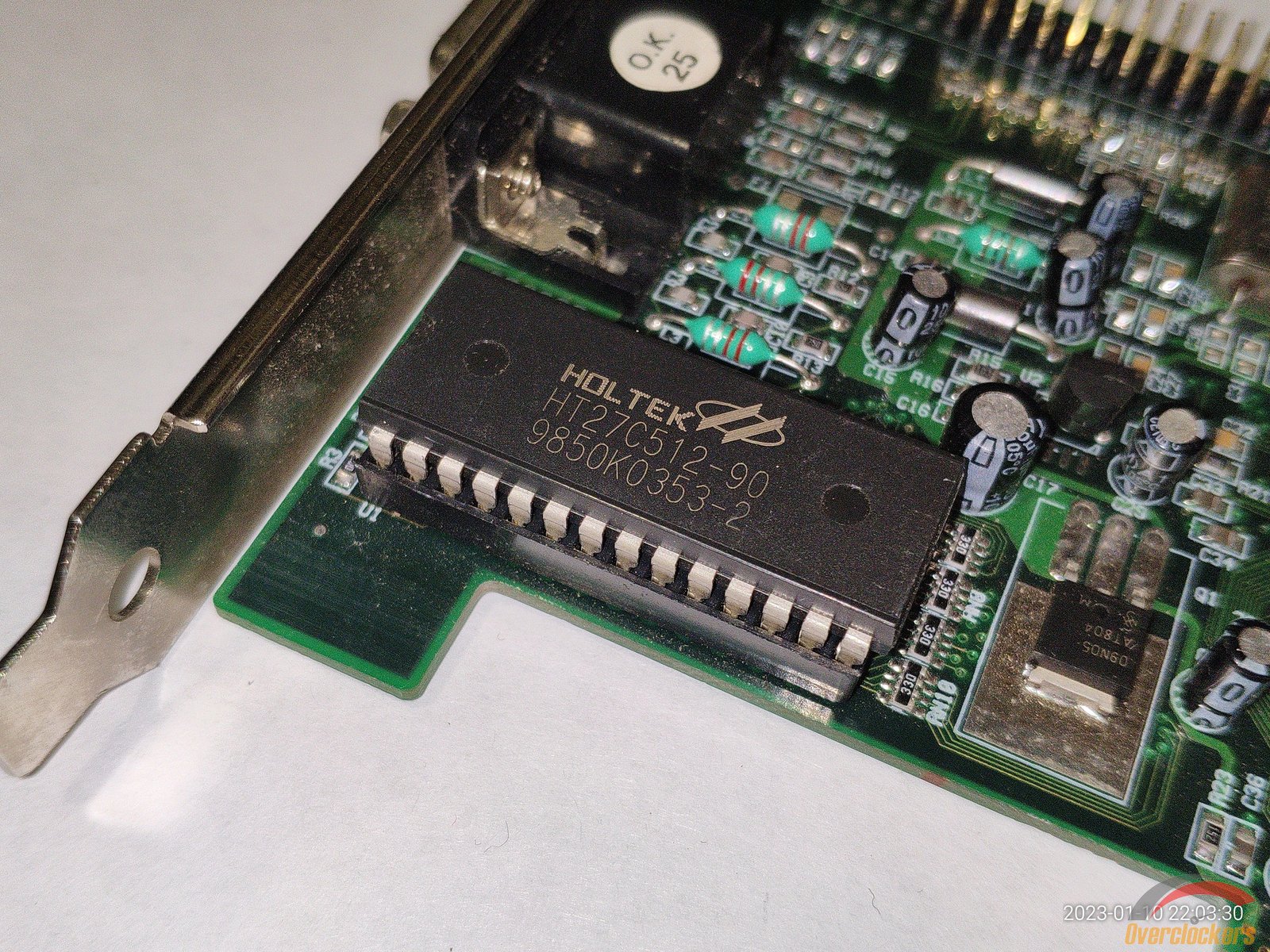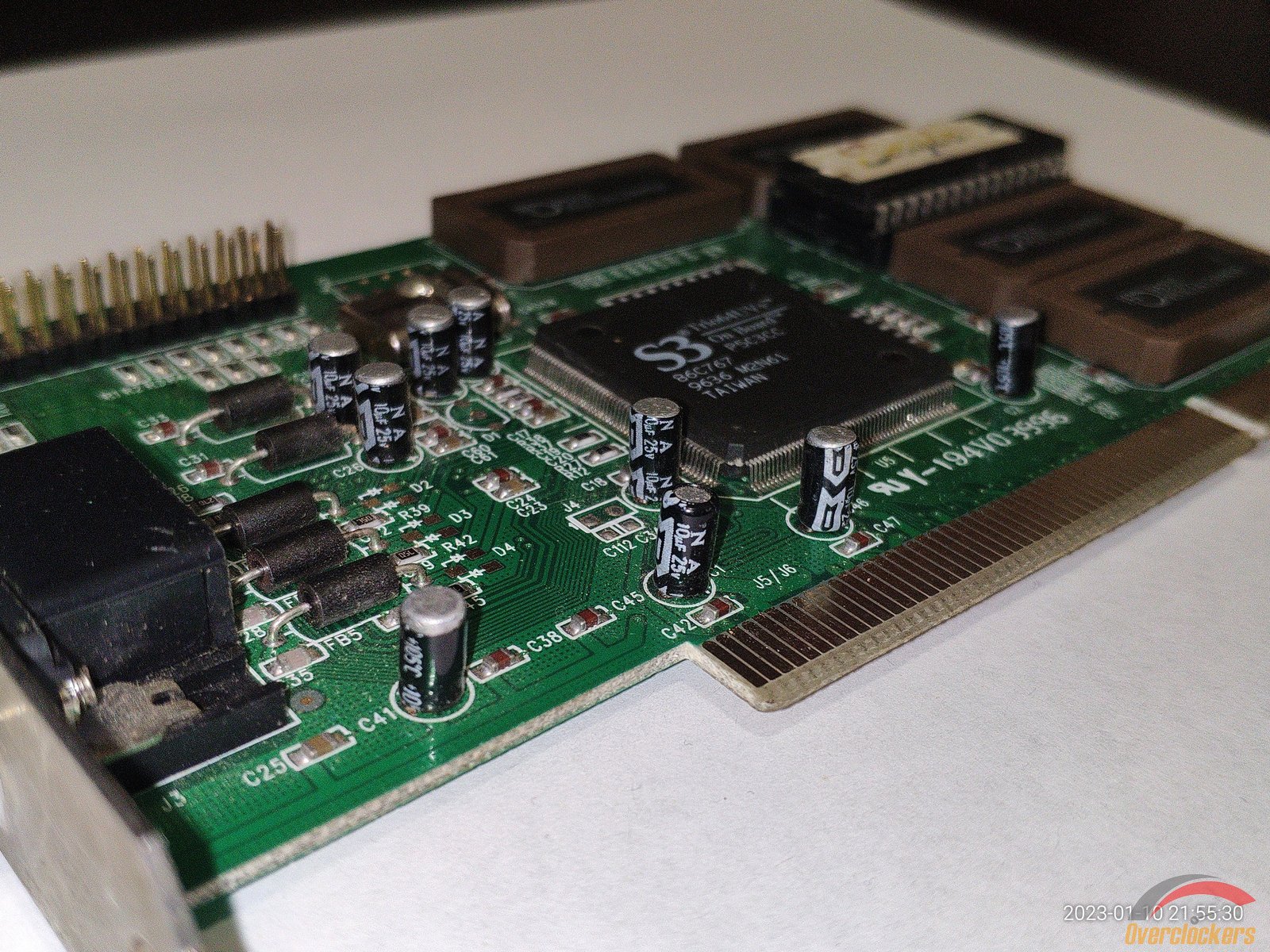 Конденсаторы уже гораздо качественнее на вид, все же более позднее производство чем у S3 Trio64UV+, можно заметить даже пломбу датированную 1999 годом, и эту пломбу нельзя срывать, забавно конечно, зачем срывать пломбу которая ничего по сути не пломбирует, а просто наклеена на текстолит...
