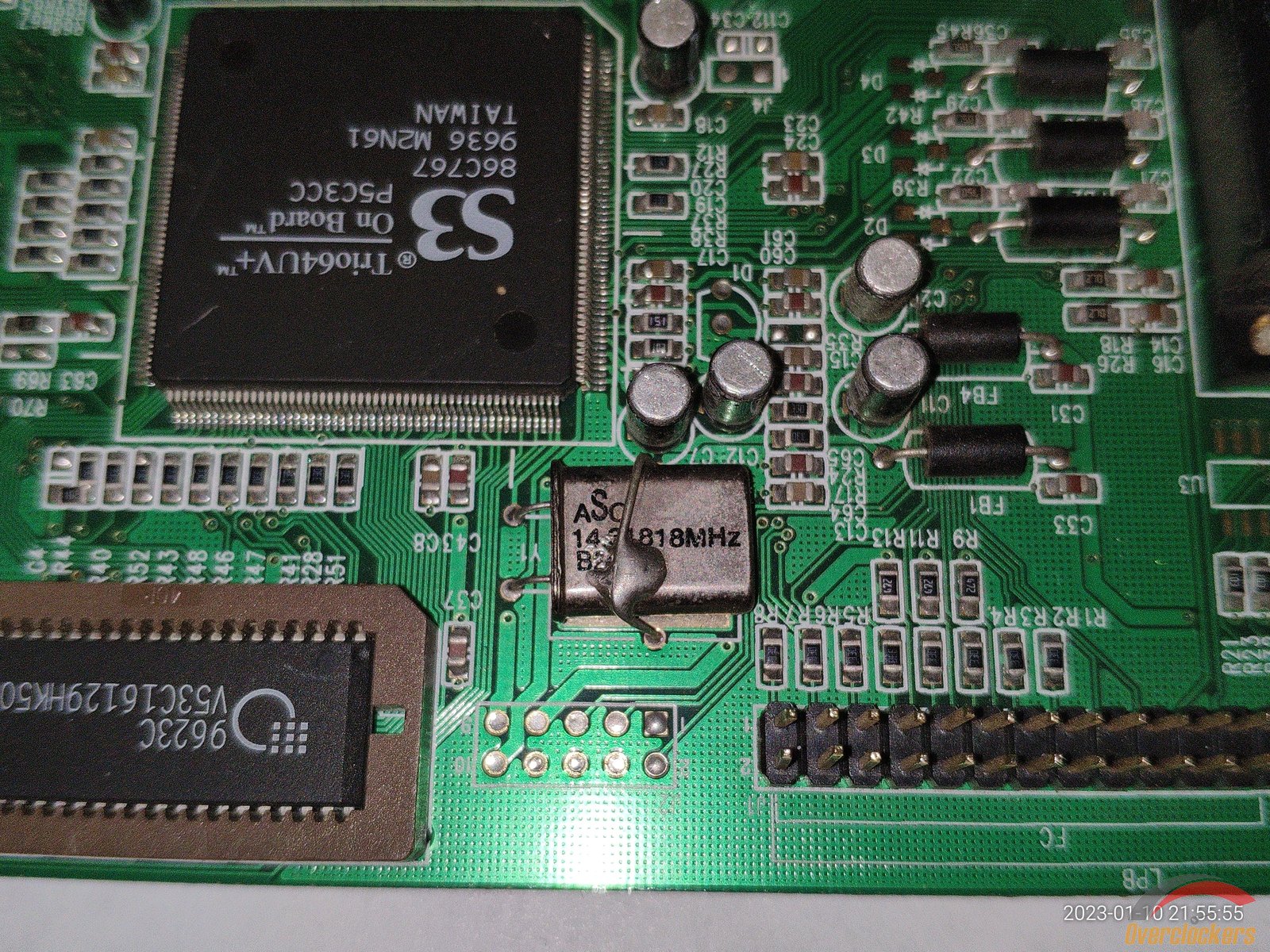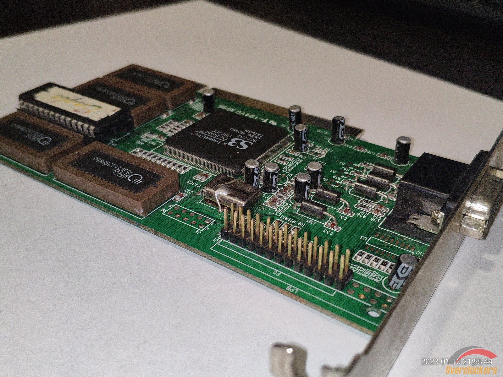 Дальше идет более продвинутая версия видеокарты S3 Trio, здесь уже чипы памяти распаяны на плате, но в этом ничего страшного нет, чип памяти с прошивкой все так же заменяемый, и это очень хорошо, из подключений для монитора есть один VGA.