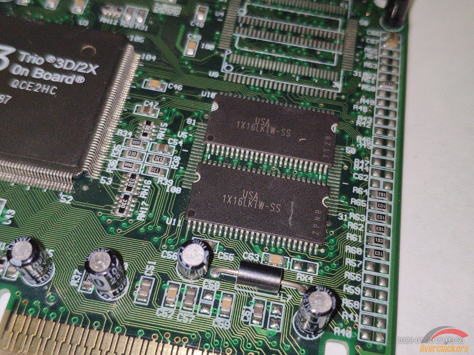Здесь всего две микросхемы оперативной памяти с маркировкой USA 1X16LKTW-SS, есть посадочные места максимум для четырёх чипов памяти.