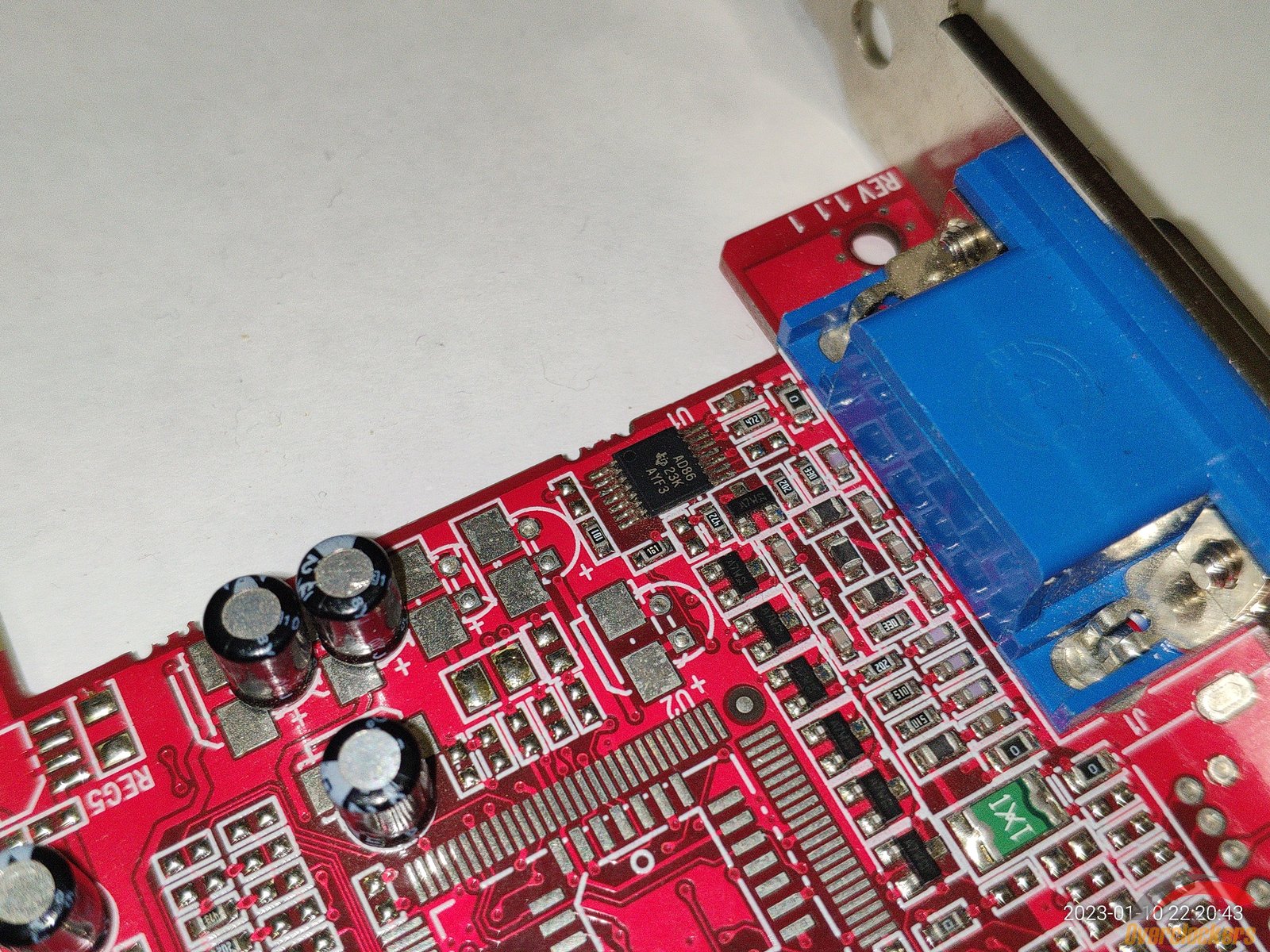 Текстолит красный, как и полагается ATI, множество дорожек видны на плате, обычно большинство из них спрятаны во внутренних слоях текстолита, но не здесь.