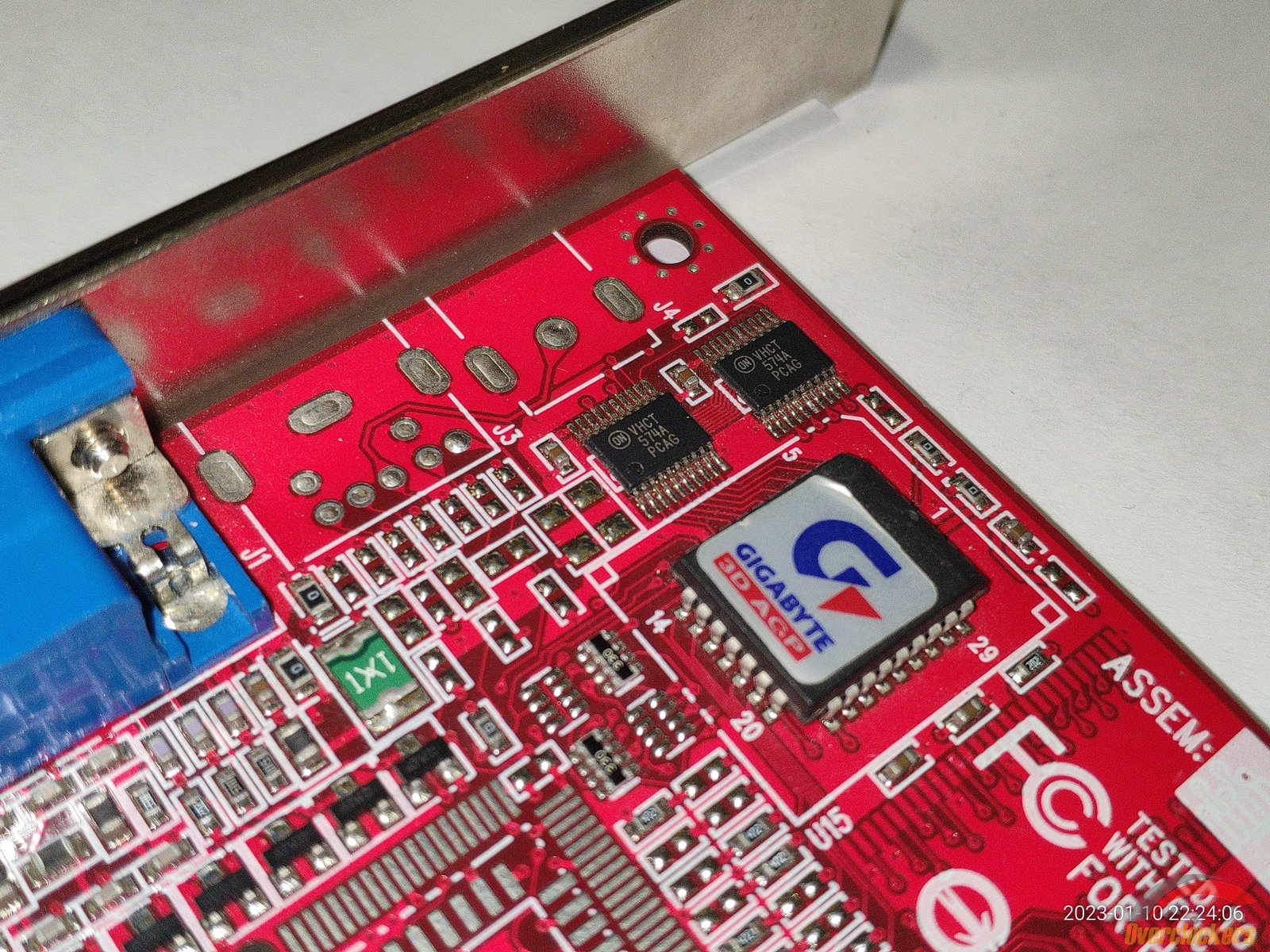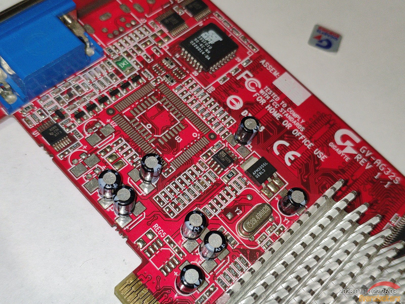 Gigabyte явно не могли определиться с наклейкой модели видеокарты, сначала наклеили модель видеокарты на микросхему с прошивкой, а потом поняли что модель написана на самом текстолите видеокарты и наклеили просто наклейку "GIGABYTE 3D AGP".