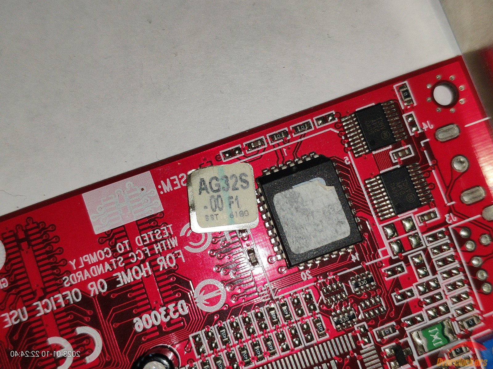 Так как видеокарта позднего выпуска (2004 год 8 месяц), то и микросхема с прошивкой уже имеет более современный корпус, и преобразователь напряжения тоже стал более компактным
