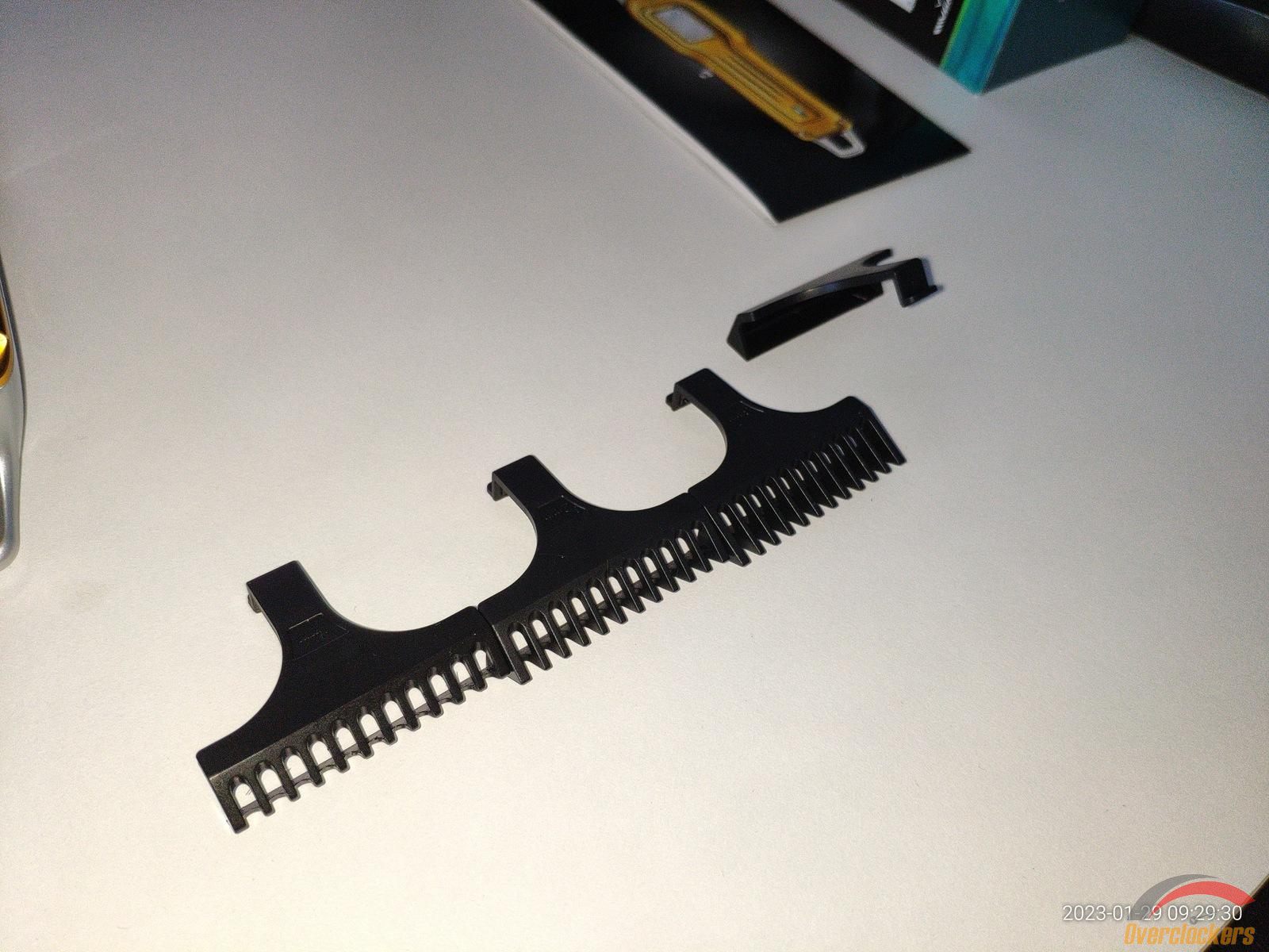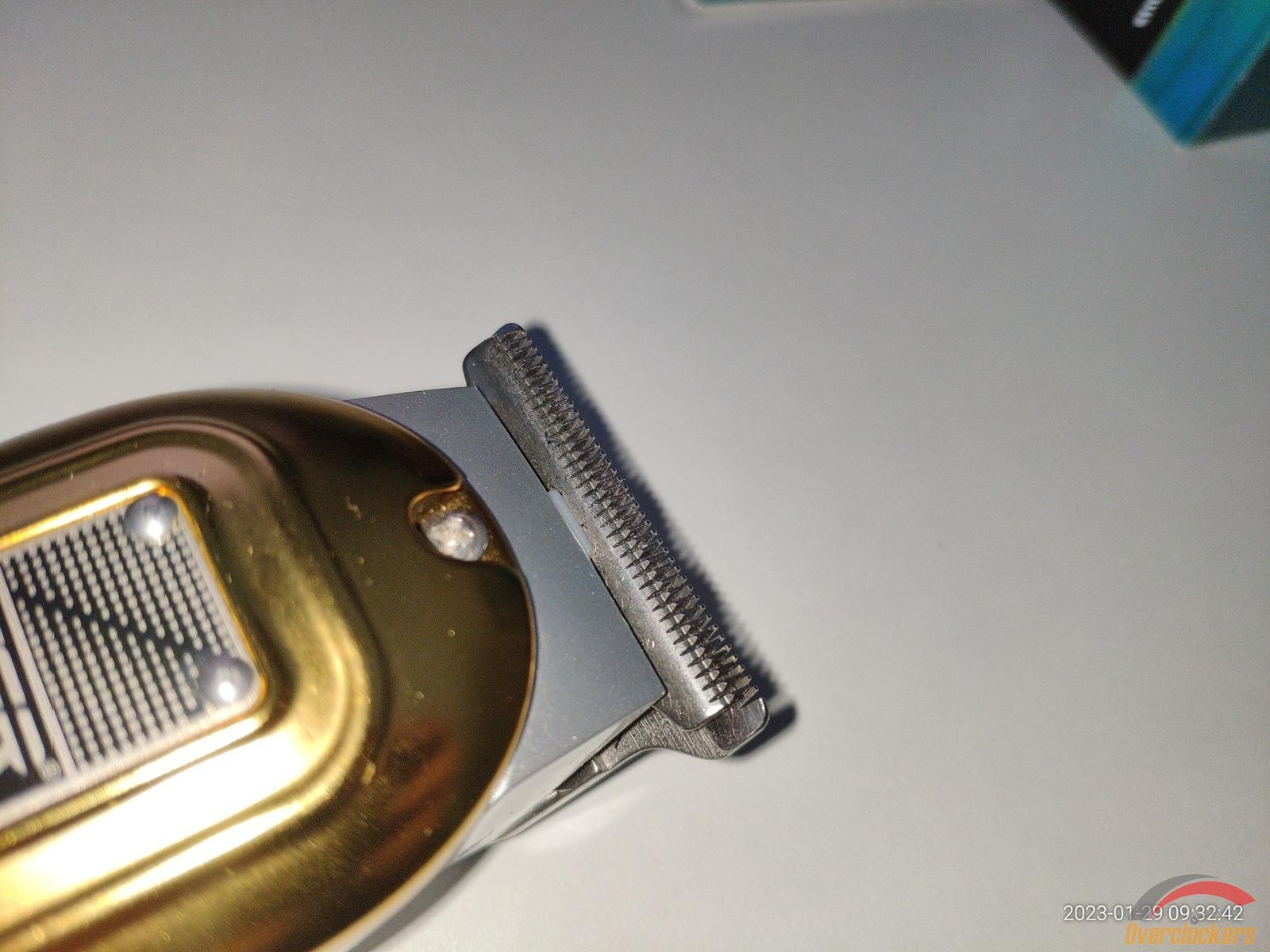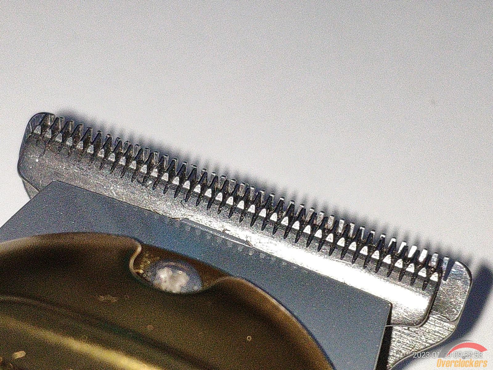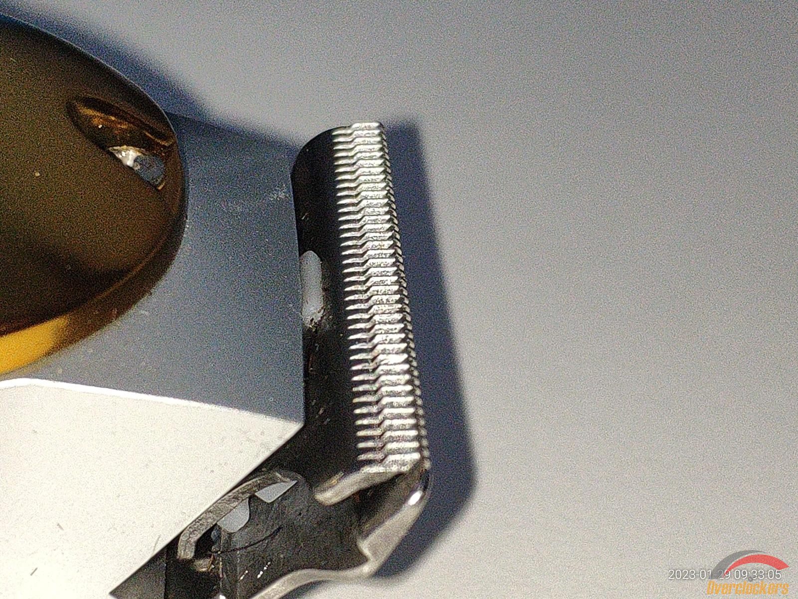 Теперь рассмотрим лезвие, "расческа" очень мелкая, можно было чуть больше зазоры делать, ибо не всегда с первого раза захватывает усы на лице, но ножи режут хорошо, не "грызут" и не "жуют" как некоторые проводные машинки за аналогичную стоимость.