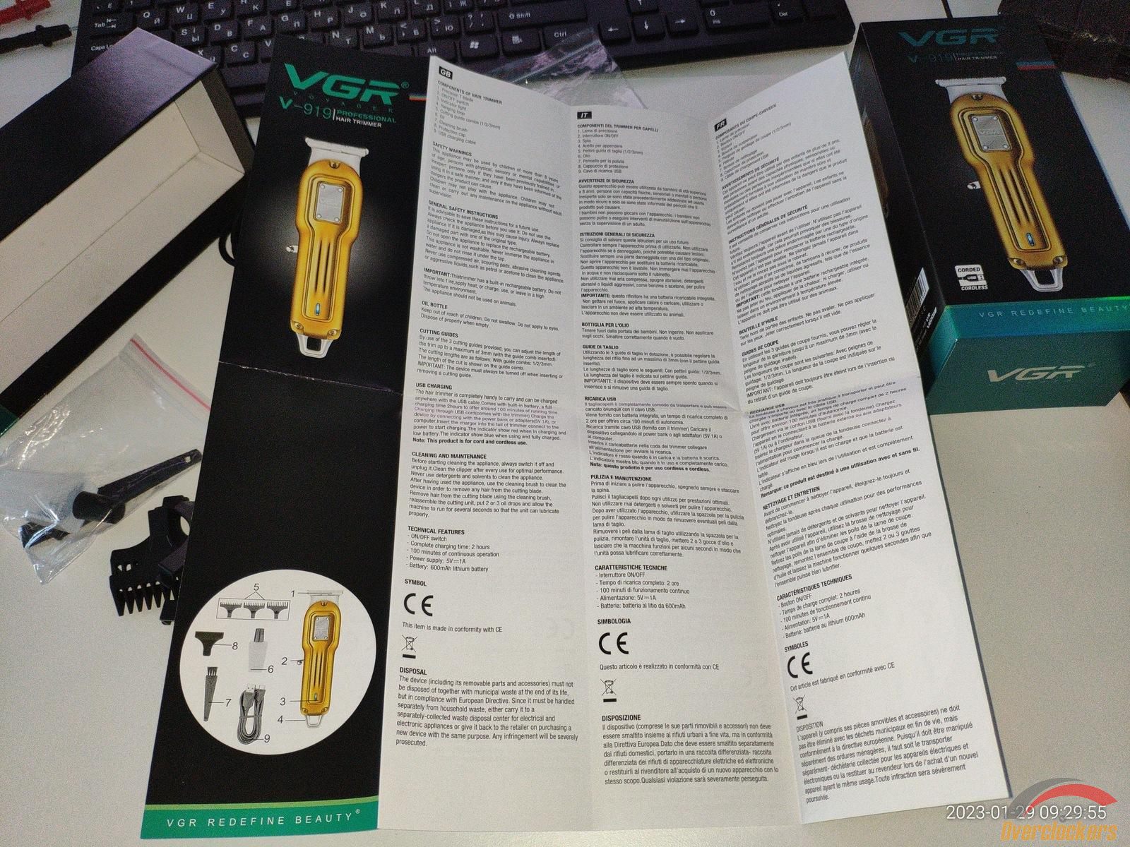 В обзоре участвует триммер VGR Voyager V-919 (Professional Hair Trimmer), покупался он примерно за 13.3$ (на момент 2023-01-28), я его уже успел использовать прежде чем начинать обзор, если бы этот триммер оказался "не очень", то и обзор я бы не начал писать, а начнем обзор с упаковки.