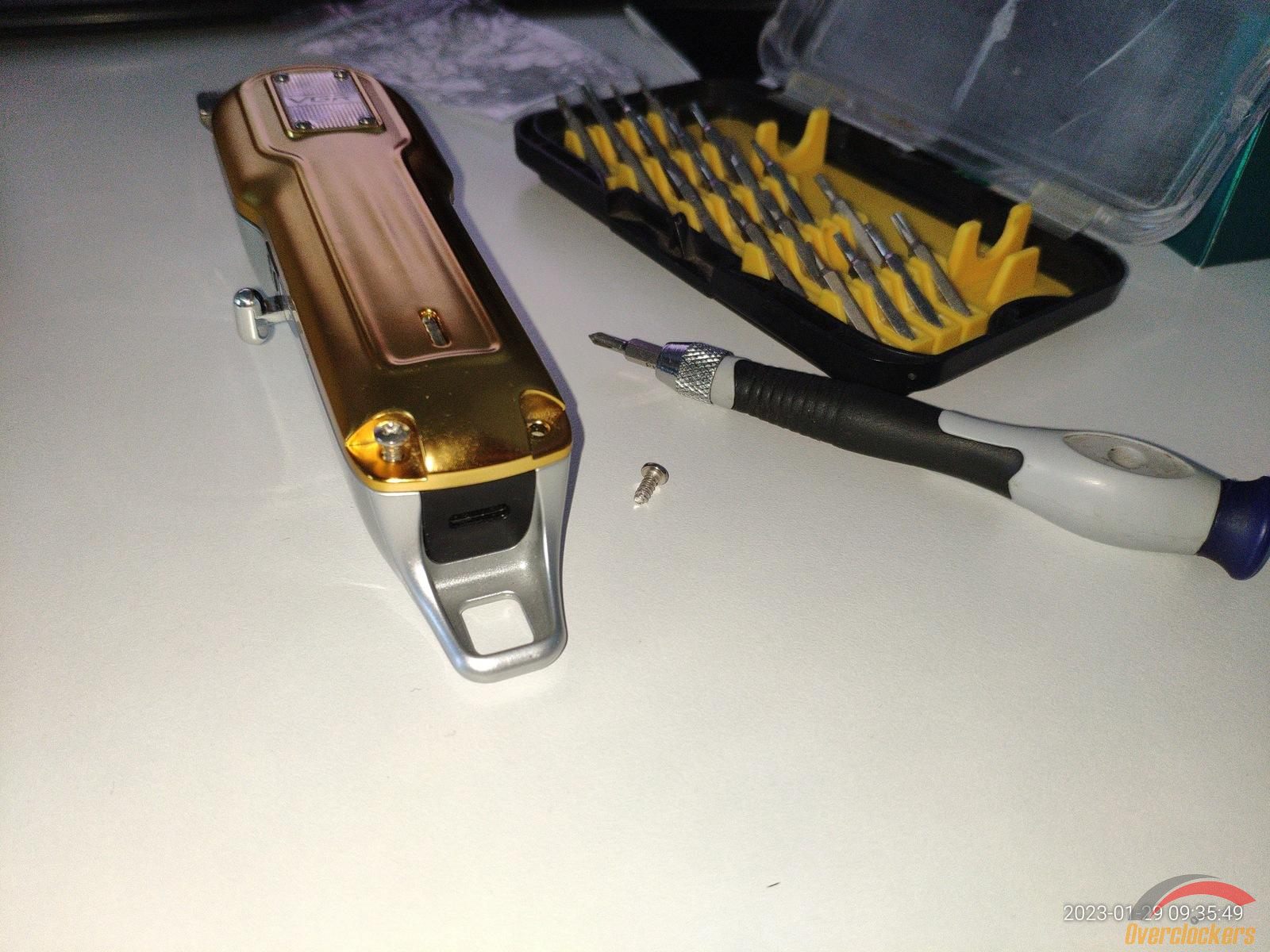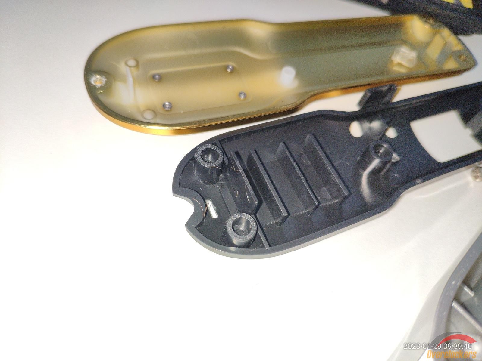 Один саморез был сорван с завода (возле лезвия), перекрутили его немного больше чем нужно, но не страшно, золотистая крышка снята, а внутри еще одна крышка есть, уже конструктивная.