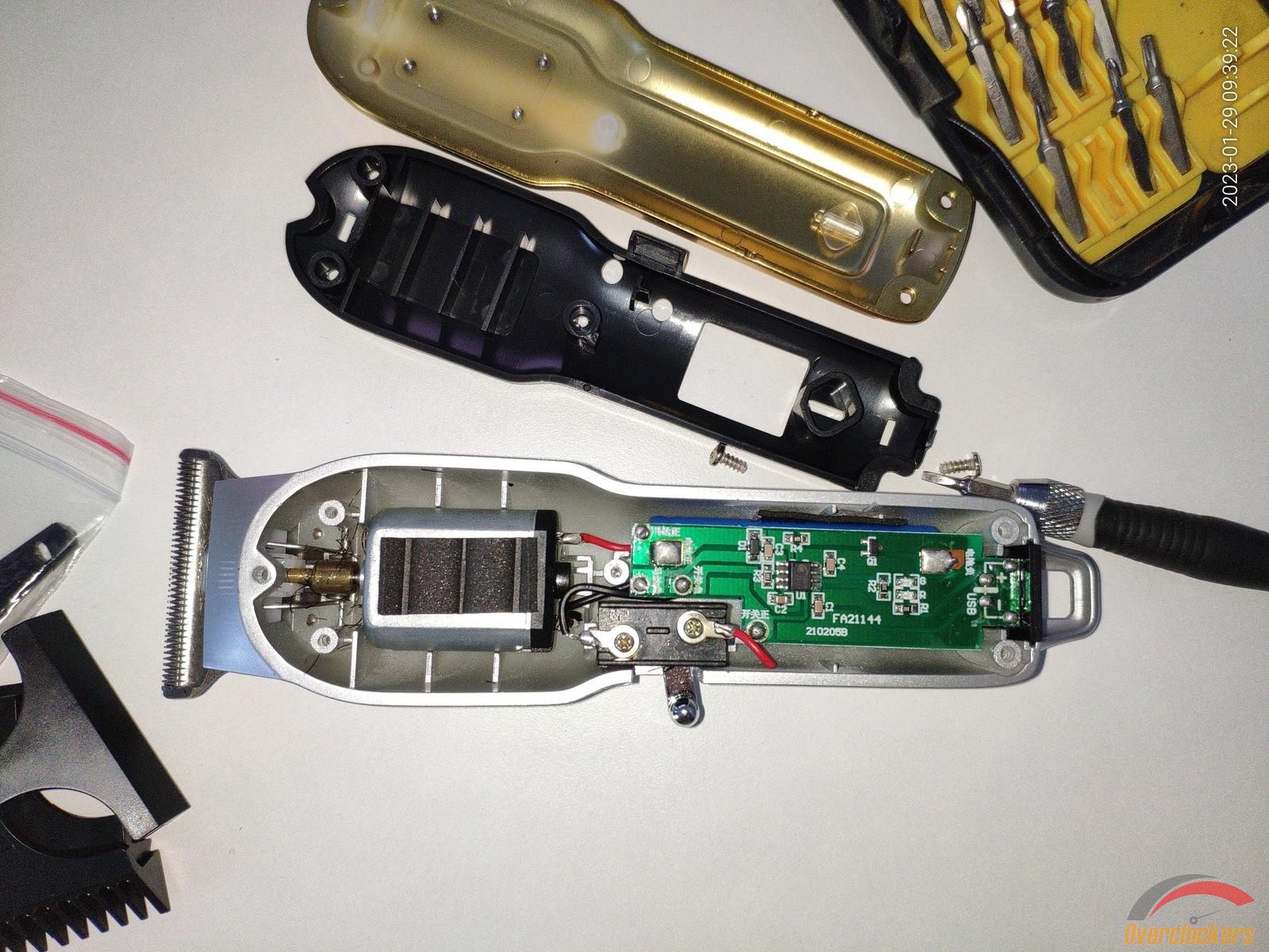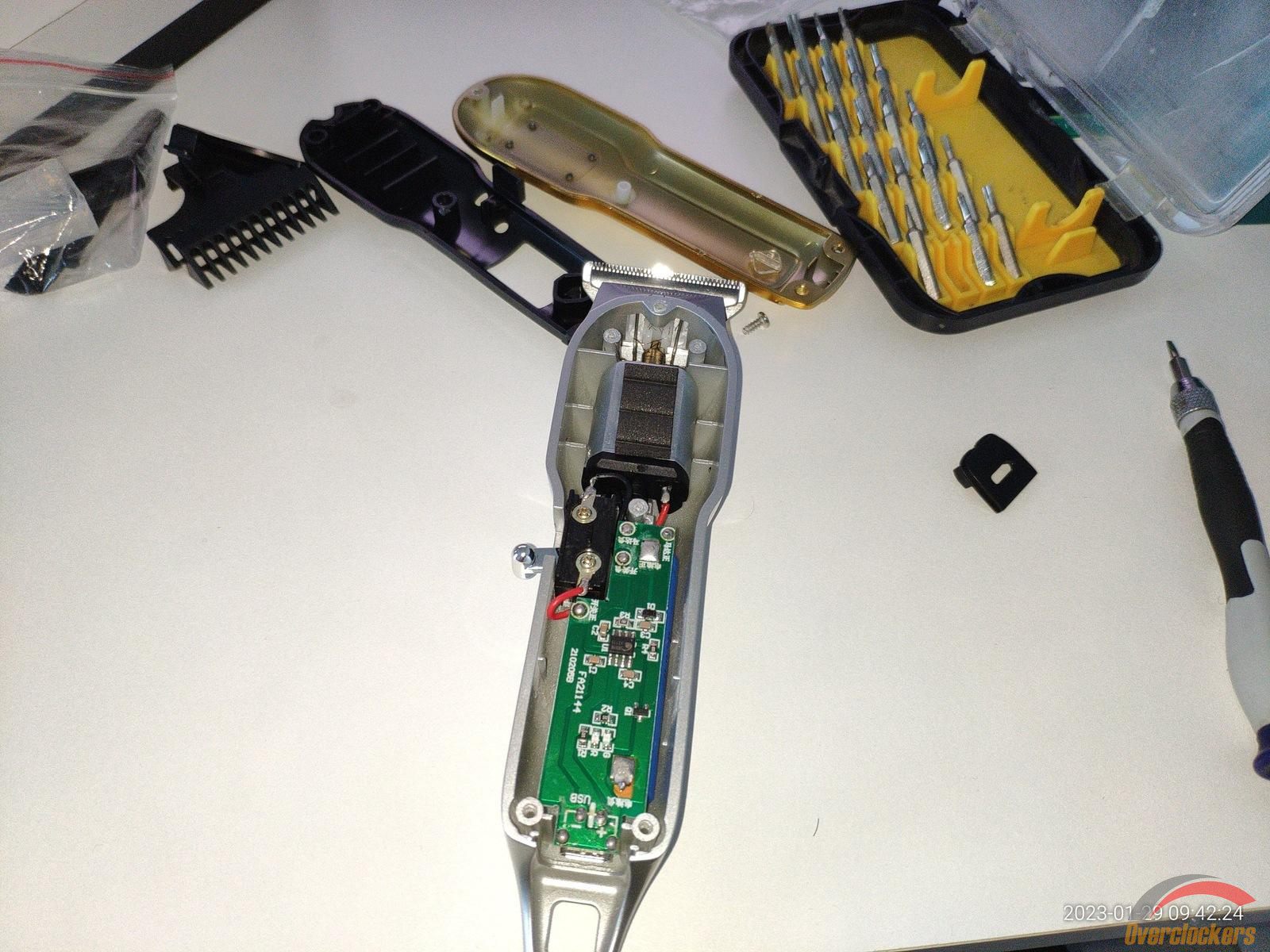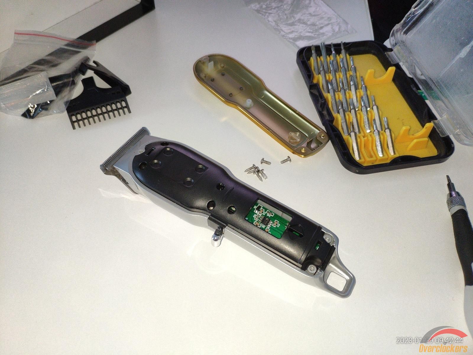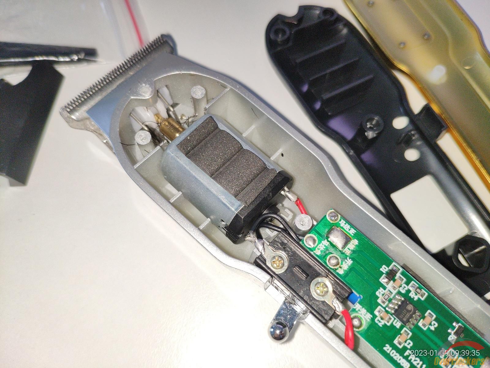 Видно, что производитель хотел защитить начинку от попадания волос, но один волосок все же проник в зону электроники, а значит стыки не герметичные, впрочем, за стоимость этой машинки простительно, тем более волосок мог упасть во время снятия крышки, главное, что можно самому доработать чтобы наверняка ничего не попало внутрь в собранном состоянии, полоску силиконового герметика намазать по швам и закрыть, ничего сложного.