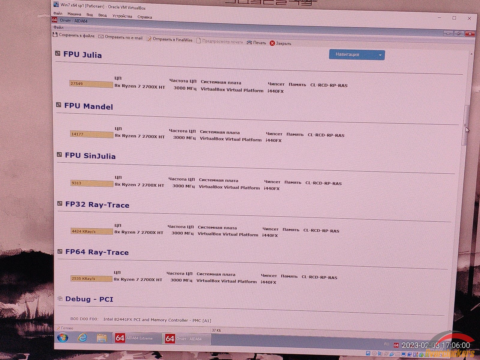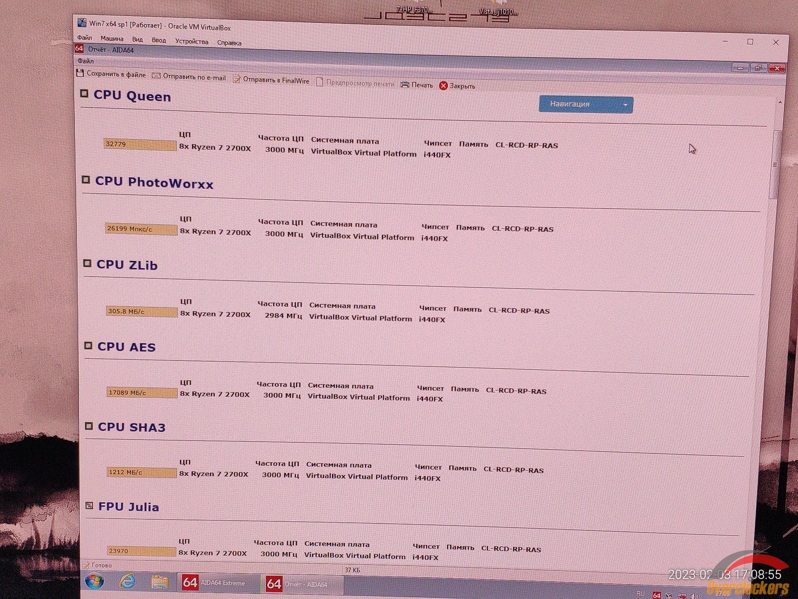 Особенно заметен разрыв в пользу Windows 7 при отключении HT в настройках AIDA64, и на этот счет у меня есть догадка, Windows 7 паркует потоки когда они не использованы, тем самым достигает максимальную производительность ядер, а Windows 10 размазывает работу по потокам даже когда это не нужно, от чего ресурсы ядер "размазались" и это негативно сказалось на производительности внутри виртуальной машины когда гостевая ОС не использует потоки.