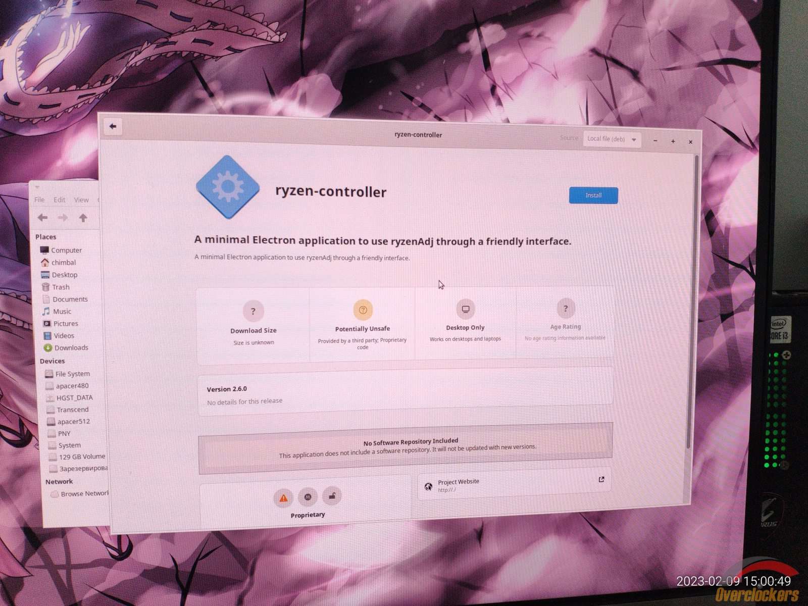 Я целую статью написал, пока наконец умудрился просто установить и запустить Ryzen Controller! Почему в Linux дистрибутивах такая элементарная задача требует стольких действий и плясок над бубном? Напомнить как происходит установка Ryzen Controller в Windows 7/10? Открываем "exe" файл, жмем две кнопки мышью, и все! Приложение установлено! Прожимаем ярлык на рабочем столе и оно запущено!