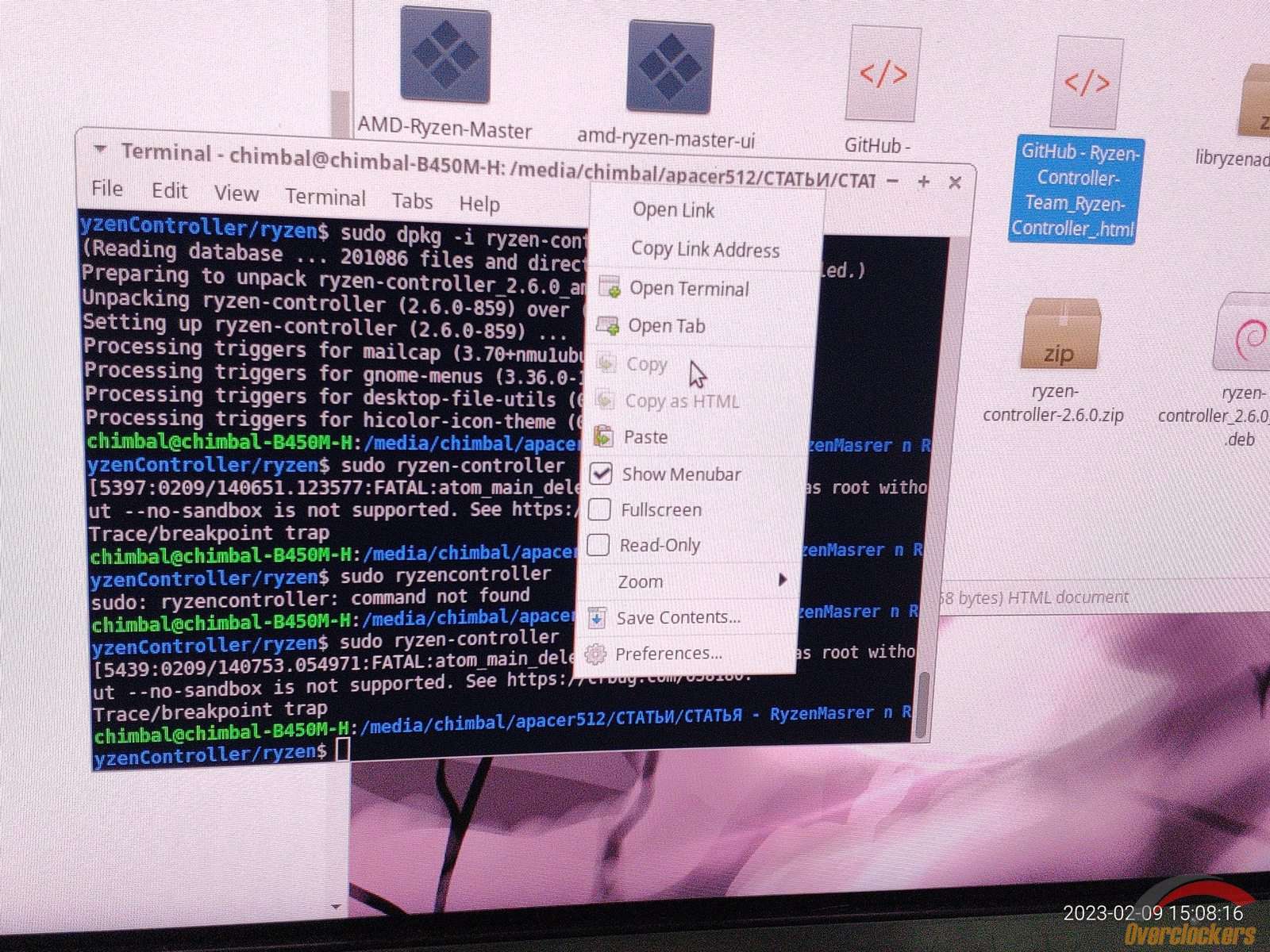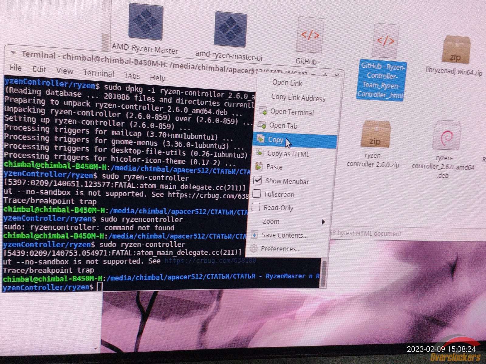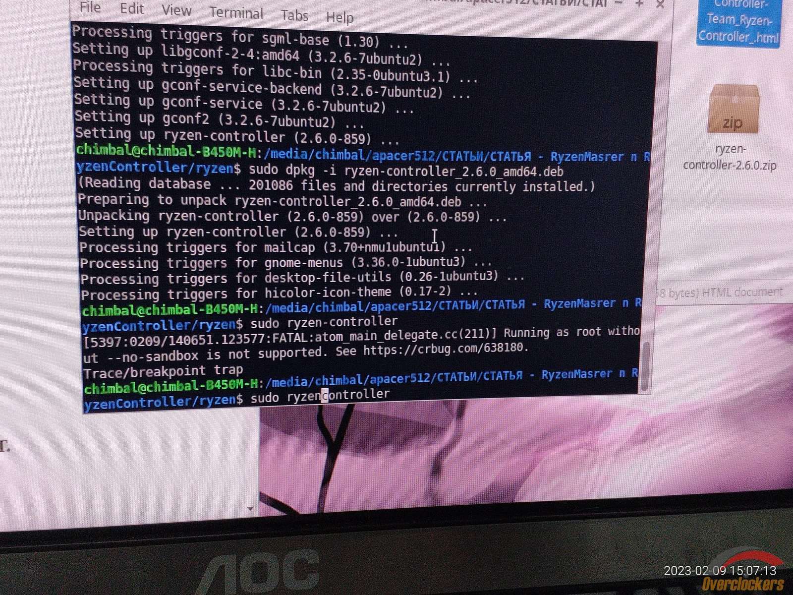 Святые угодники! Ryzen Controller установился наконец из DEB пакета! Не зря танцевал с бубном и над бубном...